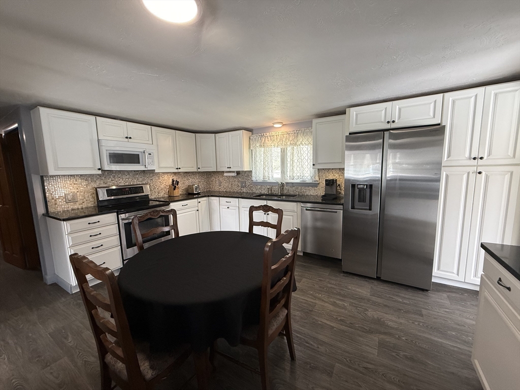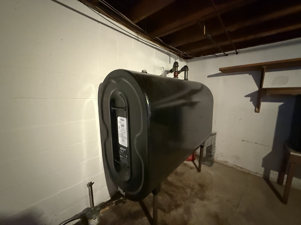 This built solid, 1960's Ranch is ready for new owners. Home features 3 bedrooms and 1 full bathroom all on one floor living. Home has a newer roof (2023), efficient solar panels offsetting an electric bill, vinyl siding, replacement windows (under 10 years old), efficient hot water baseboard boiler (under 600 gallons a year used), along with new oil tank (under 2 years old), and a 1 car garage + workshop under the home. The living room and all three bedrooms feature hardwood floors in great shape. The kitchen has been completely renovated in the last 5 years with new cabinets, granite counters, stainless steel appliances, under cabinet lighting, serving bar, along with lvl flooring. The bathroom has also been completely renovated and features tile floors, new sink, jetted tub and a linen closet. A mudroom off the side driveway serves as a great, convenient, everyday entrance. The basement is neat and clean and has a partially finished rec room along with laundry and garage access.
