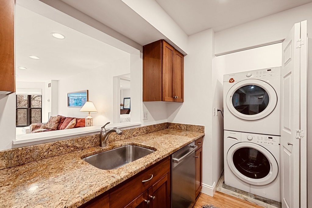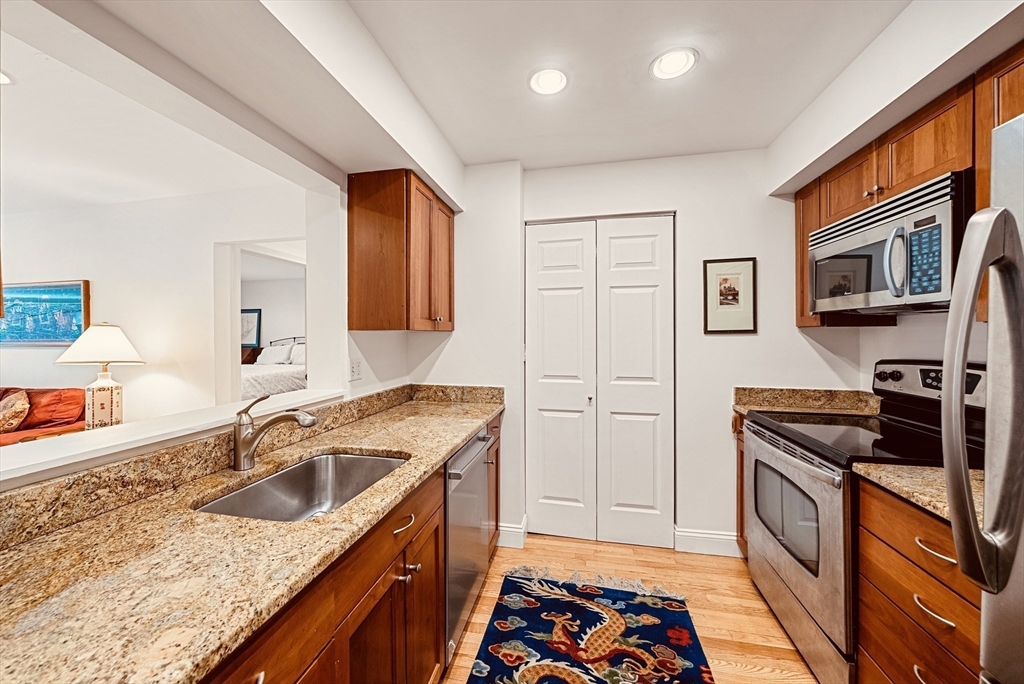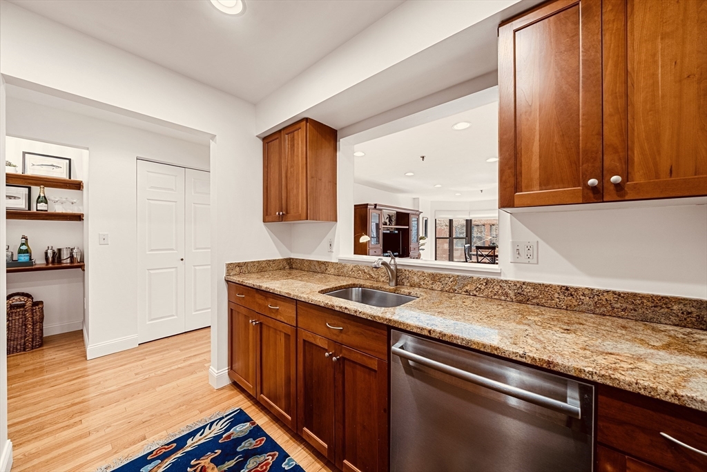 Ideal Back Bay city retreat - Don't miss this 2 bedroom, 2 bath with direct access garage parking at The Copley Place Residences! Chef's kitchen with granite counter tops, ample storage and stainless steel appliances; adjacent pantry perfect for storage, dry bar. Open living/dining with over-sized bay window with stunning cherry blossom views over the SW Corridor. Living space is flanked by two spacious bedrooms, each with adjacent tiled baths, each with additional linen storage. Recessed lighting, hardwoods throughout, in unit washer/dryer. Additional storage closet located on the same floor. All this and a full direct access GARAGE parking space, 24hr concierge; onsite management & maintenance, direct access to Copley Place, Prudential Center & walking to T, train, Southwest Corridor and the best of both Back Bay and the South End.
