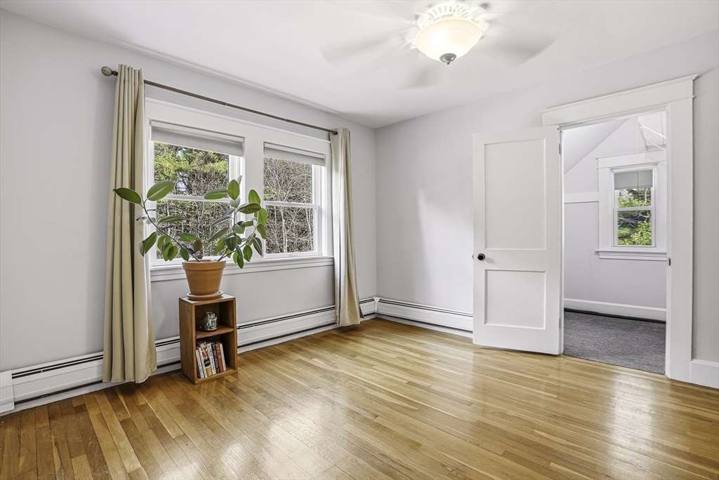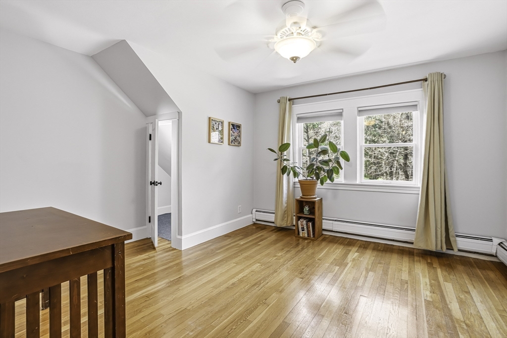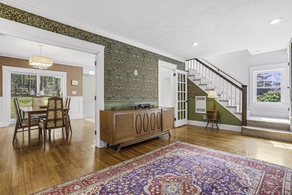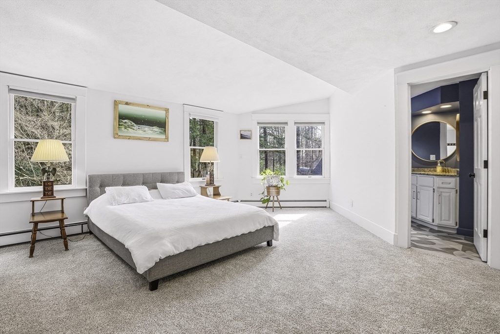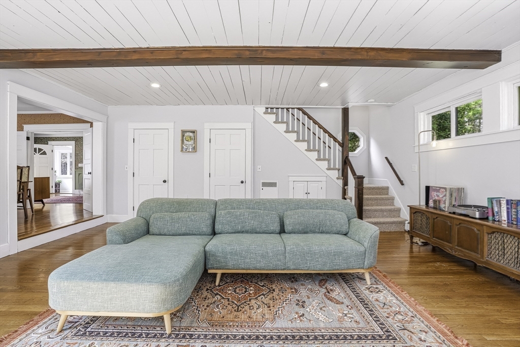 Charming expanded Cape-style home with Colonial character, set on a private, oversized lot. This 3-bedroom, 2.5-bath home offers over 2,400 sq ft of flexible living space. Beautifully updated kitchen, with abundant granite counters, stainless appliances & wine fridge, is the heart of the home. Sun-filled dining and living rooms with fireplace flow into a spacious sunken great room with wood stove. Sliding doors provide seamless access to outdoor living, including a composite deck, stone patio, and spacious fenced yard, perfect for relaxing or entertaining. Upstairs features convenient laundry and generously sized bedrooms, including a vaulted primary suite with updated bathroom. Distinctive architecture details with an artistic flair include dual staircases, built-ins, exposed brick, skylights and a charming office nook. Detached 2 car garage, enclosed heated porch, partially finished basement, classic mudroom, complete this exceptional home. Showings begin 4/11 @ OH 12-2.