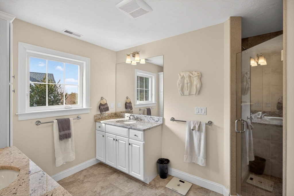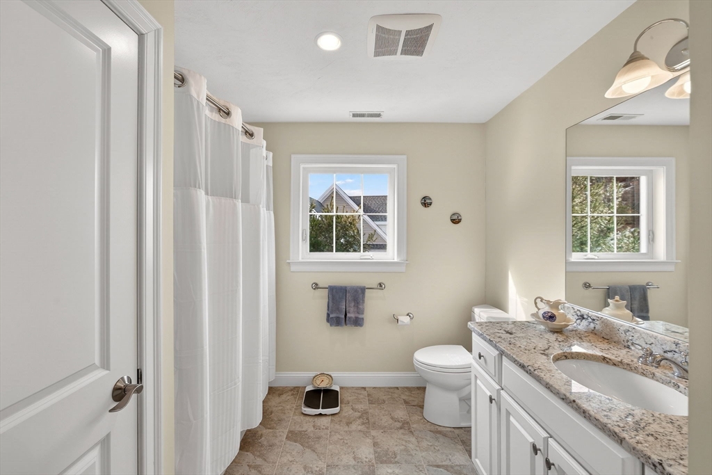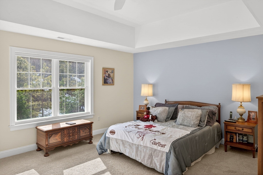 Fantastic "Dartmouth" style home in the 55+ Seton Highlands neighborhood in The Pinehills. The private outdoor setting sets this home apart from many others. Home features tasteful upgrades with beautiful decor throughout & has a room for all of your needs. The main level includes 2 ensuites, 2 1/2 baths, a kitchen w/ stainless appliances & granite counters; a cathedral living area with a gas fireplace and access to the large deck from the kitchen dining area. Don't miss the beautiful crown molding & the gleaming hardwood floors. Prepare to be wowed by the lower level with open staircase to invite you to: an exercise room; a "game room" area. HOA includes pool, club house, exercise room, all exterior maintenance and landscaping, snow and trash and the Stonebridge clubhouse, exercise, pools, and the abundance of clubs.