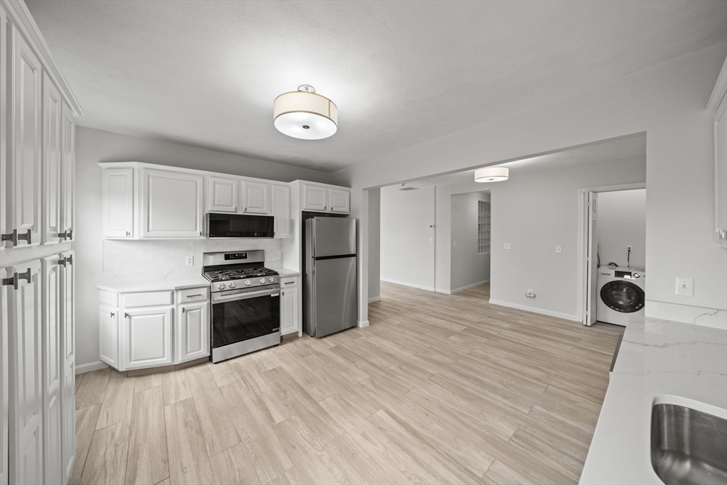 Welcome home to this beautiful and spacious 2+ bedroom, 2-bathroom, well-maintained, owner-occupied home just steps from Wakefield’s vibrant downtown. Be the first to live in our recently renovated unit with a bright, open floor plan, quartz countertops, stainless steel appliances, and plenty of natural light throughout. The spacious primary suite includes a 3/4 bathroom, while the second bedroom offers generous space, and the third room is perfect for a home office or study. A washer / dryer combo in included, along with two off-street parking spots (specified by owner). Snow removal and landscaping are also included for easy living. Just a short walk to the Wakefield Commuter Rail, local shops, dining, and beautiful Lake Quannapowitt for walking, jogging, or biking. Easy access to Routes 128, 93, and Route 1. A rare opportunity to enjoy generous living space in a prime commuter location.