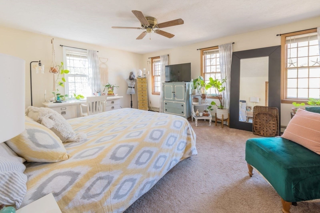 WELCOME HOME to this 3 bedroom charming colonial that checks every box! Perfectly situated in a sought-after neighborhood, just minutes from local shopping, the train station, and major highways. The heart of the home features an open-concept kitchen with hardwood floors, center island, and dining area. Just off the kitchen, retreat to the beautiful three-season porch complete with vaulted ceilings overlooking a wooded yard, it’s the ultimate spot for summer hosting. Completing the 1st floor is a cozy dining room featuring a wood-burning fireplace, complemented by a spacious living room, a home office, and a convenient half-bath with laundry. Upstairs, you’ll find three generous bedrooms and a full bath. The primary suite stands out with an impressive walk-in closet providing ample storage. Need more room? The finished basement offers a large, front-to-back bonus area featuring a built-in bar area, perfect for a media room, gym or the perfect hangout spot. First showings at Open House.