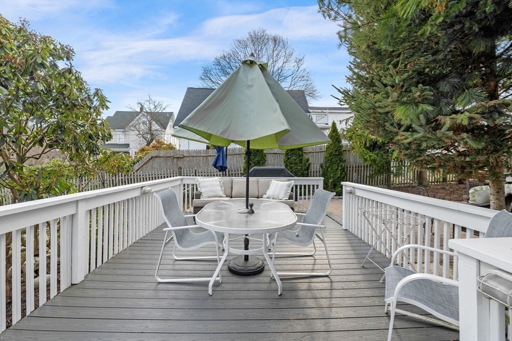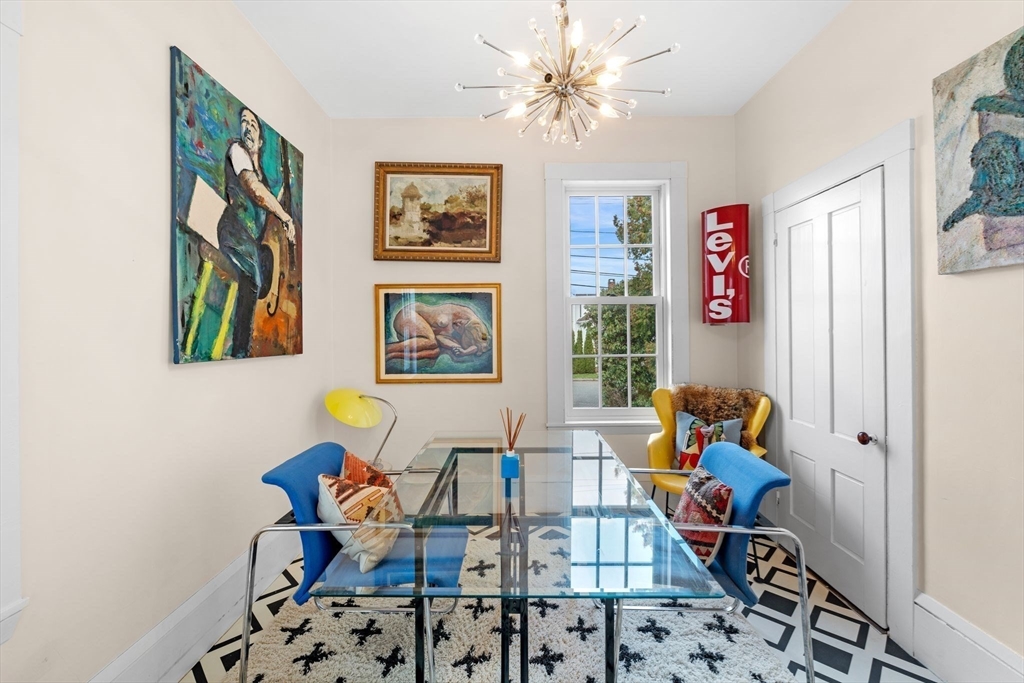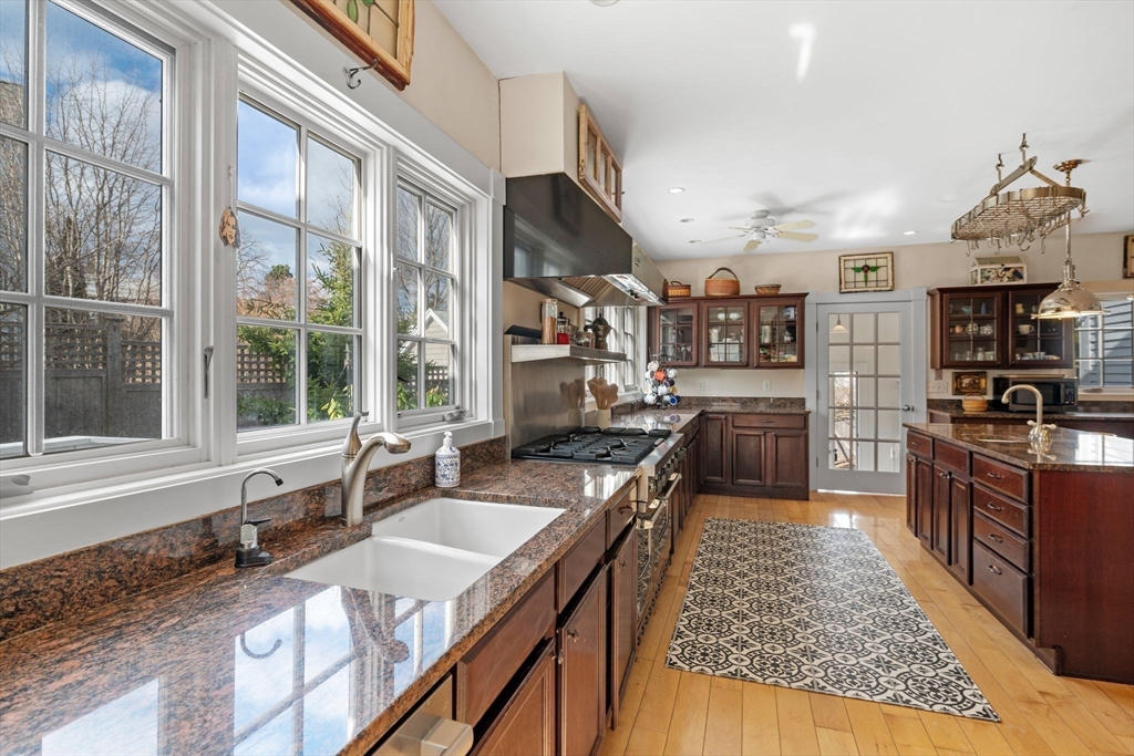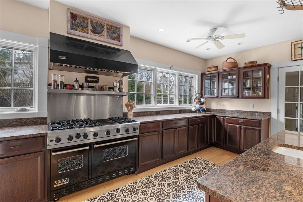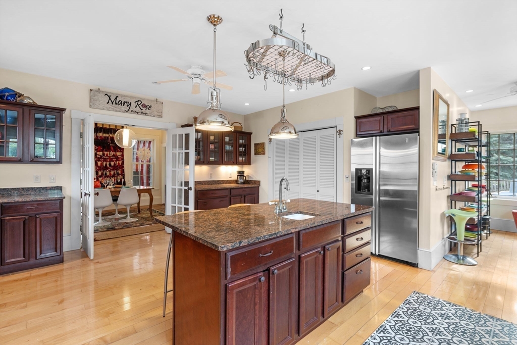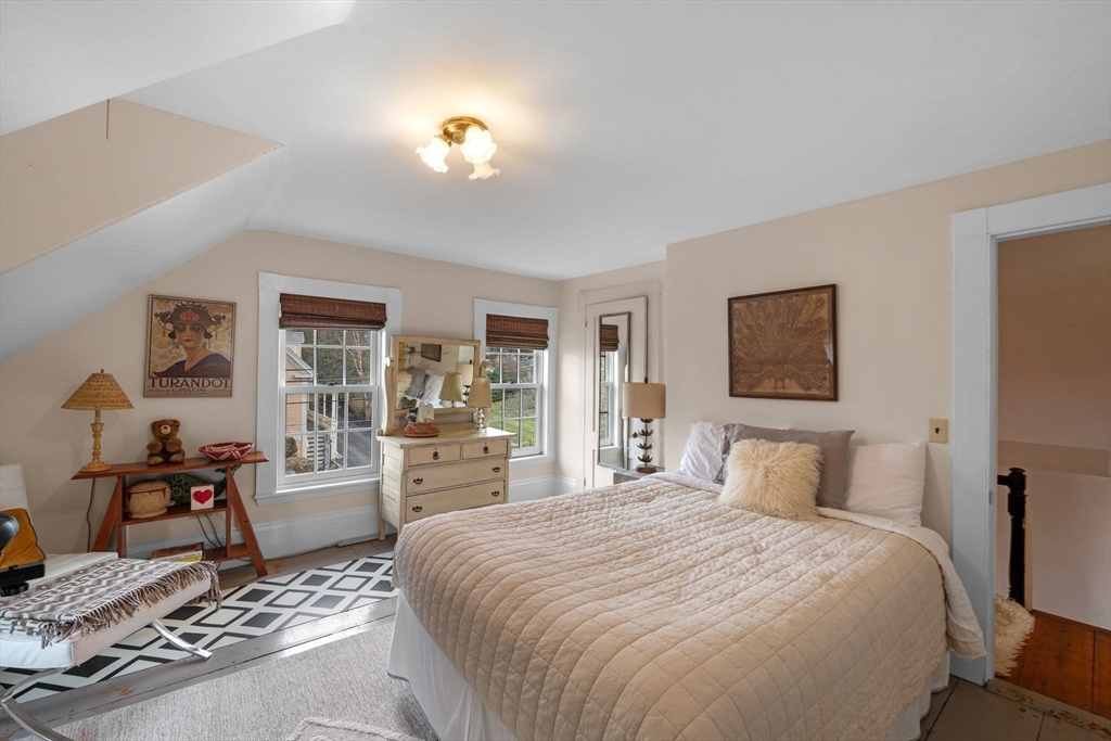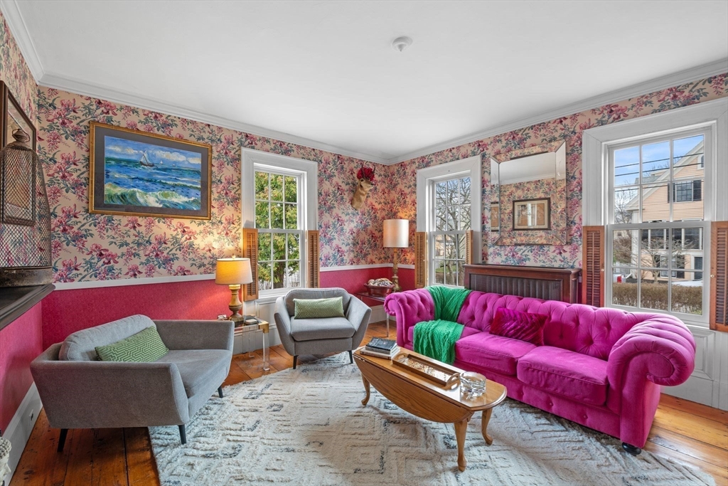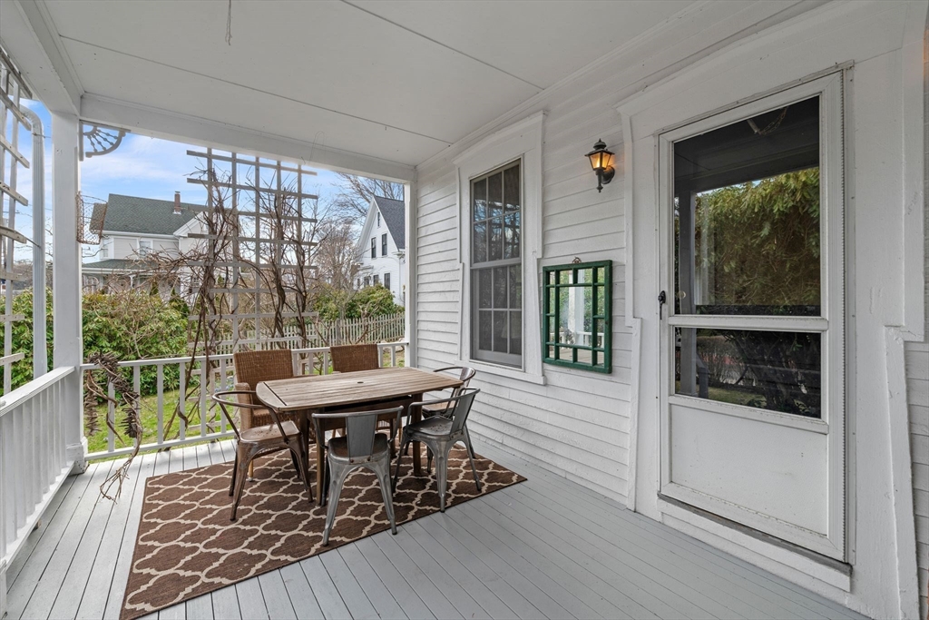 Prime location, this Colonial seamlessly blends timeless antique character with thoughtful modern design. The spacious chef’s kitchen is a true standout, featuring a professional Viking gas range with double ovens, granite counters, and maple flooring—perfect for both everyday living and entertaining. The dining and living rooms offer high ceilings and rich architectural details that add warmth, depth, and character. A flexible layout provides a variety of living options, including a first-floor bedroom or den complete with a newly renovated full designer bath. Upstairs, the primary bedroom showcases beautiful cherry flooring and is complemented by two additional bedrooms and a full bath. Outside, the deck overlooks a private, spacious yard—ideal for relaxing or entertaining. This versatile property is perfect as a full-time residence, rental, or a combination of both. Just steps from dining, galleries, shops, beaches, commuter rail, and the renowned Shalin Liu Performance Center.