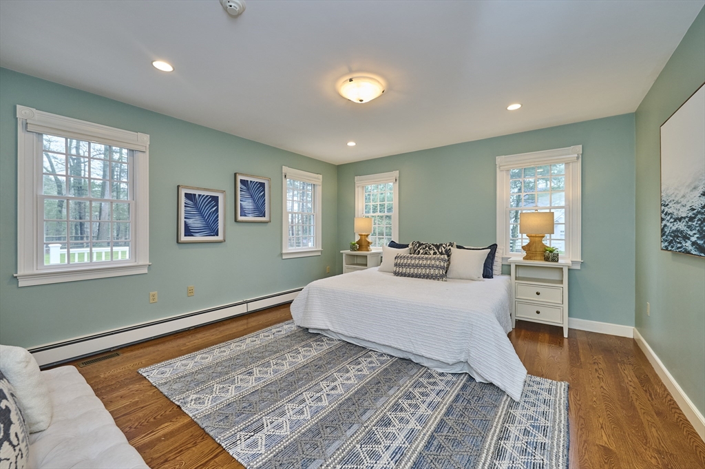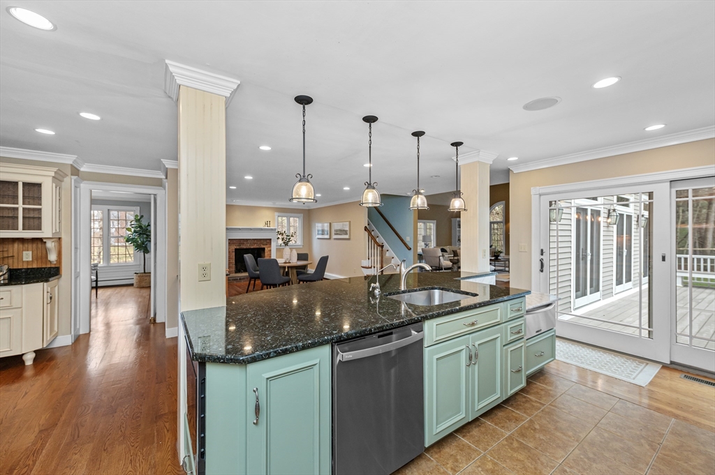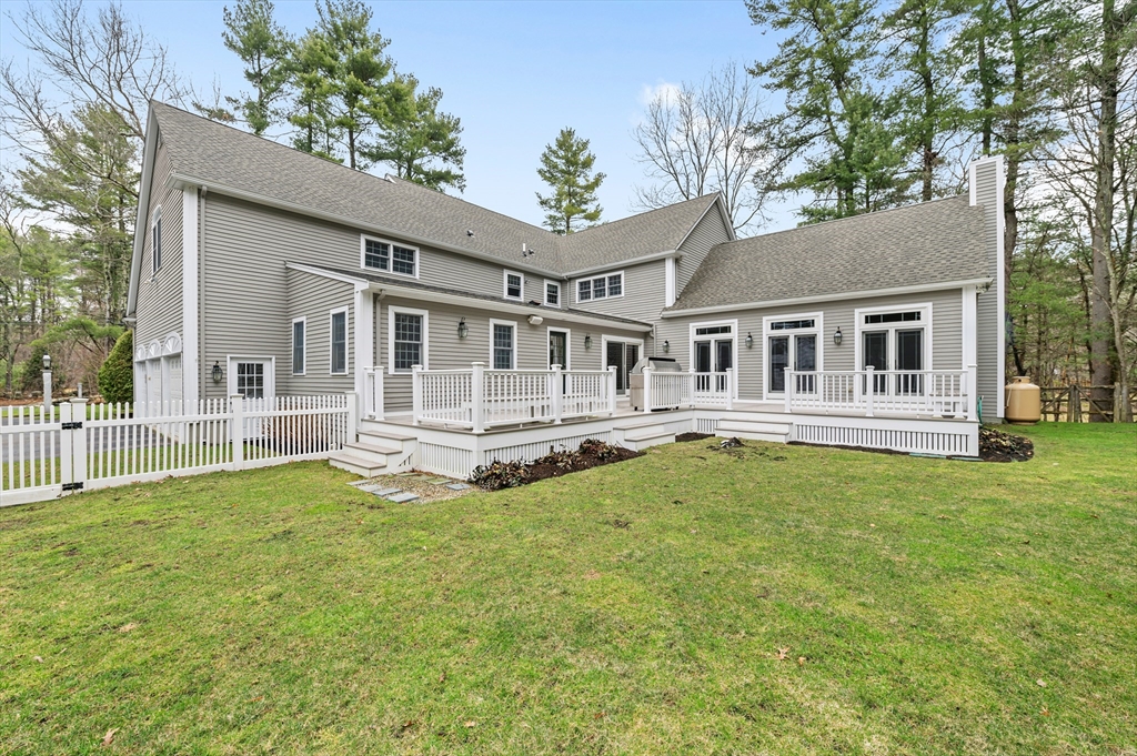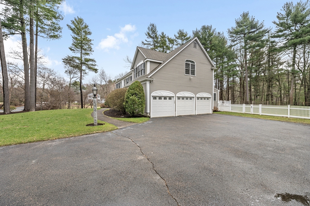Drive through picturesque stone walls to this sprawling Colonial on the Dover line. Its 1.39 acres back up to State conservation land. 1/4 mile walk to Rocky Woods Reservation with nature trails. Built in 1994 and lovingly maintained, improved and expanded with generous 2004 addition. Its 14 rooms offer flexible use of space. 4.5 baths. Home office; mud room; game room; storage galore. Over-sized windows look out onto green space/trees. New roof. 5-year old boiler. Fenced yard, entertainment sized Trex deck off a grand family room. Two fireplaces. Five bedrooms, including 1st floor guest suite. The primary bedroom features a sitting area, walk-in closet, Air Jet tub, heated bathroom floor. The kitchen offers chef appliances: BlueStar stove, Wolf oven, Sub Zero fridge, warming tray, filtered drinking water. Bonus full finished basement not included in sq. footage. Central air; central vac; 3-car garage; integrated wall and ceiling speakers. Title V and well water test in hand.