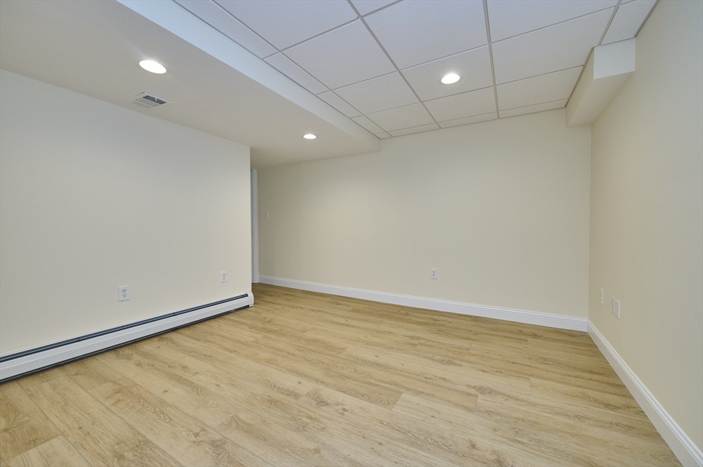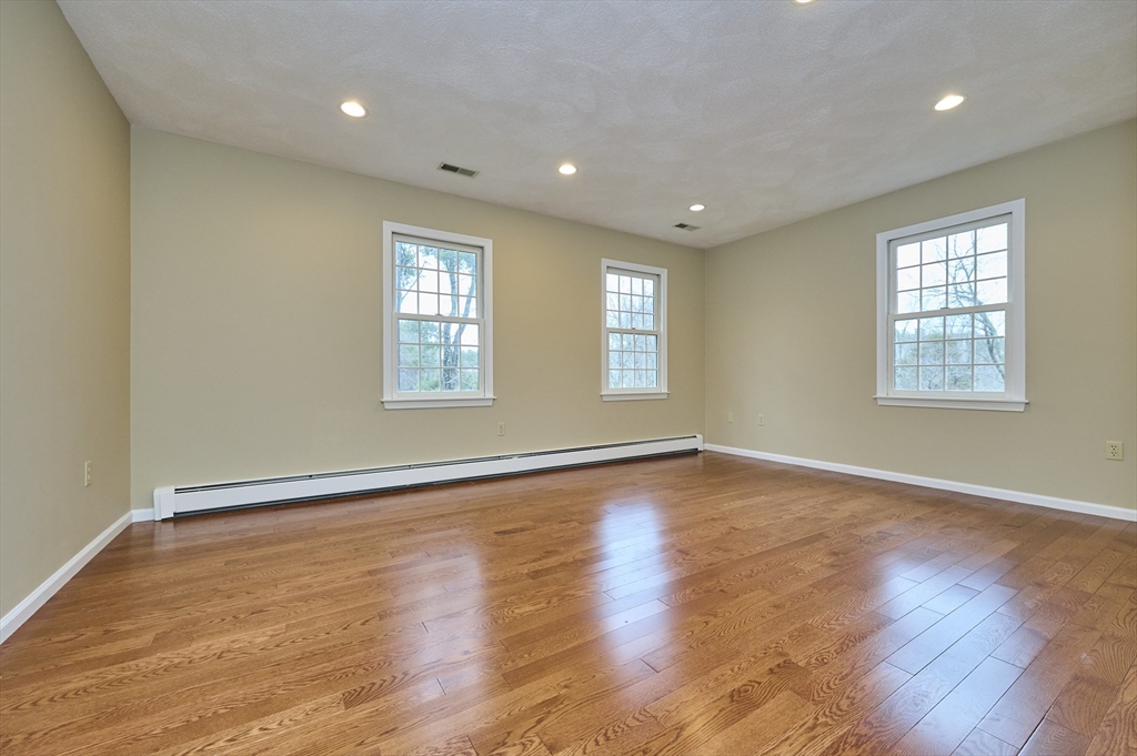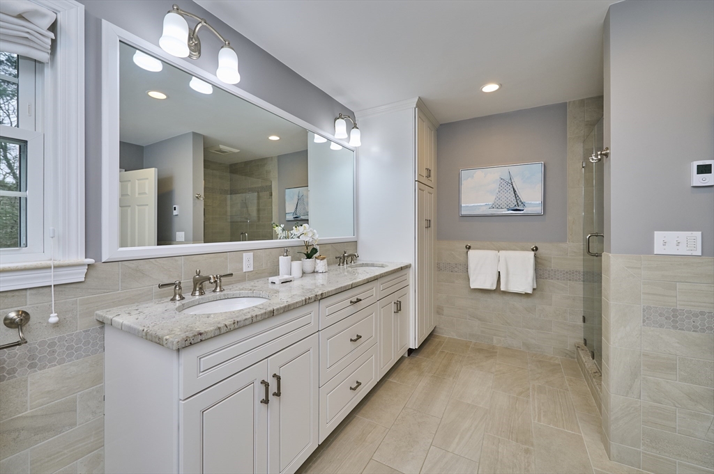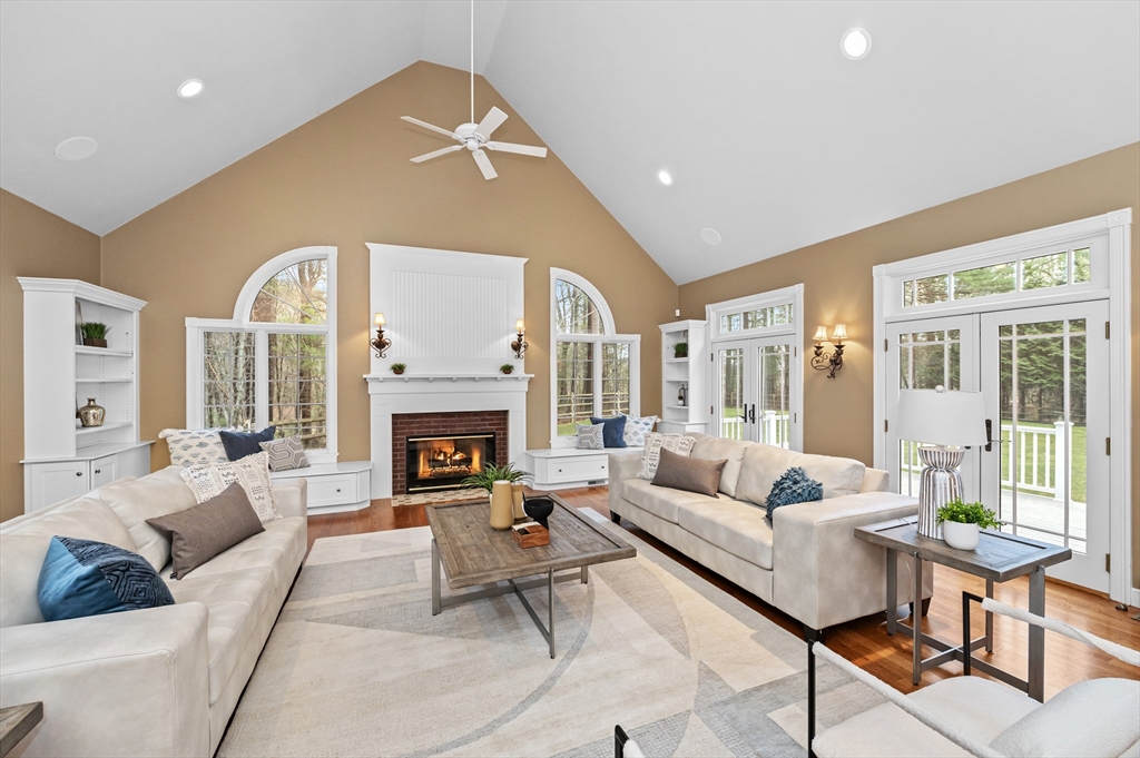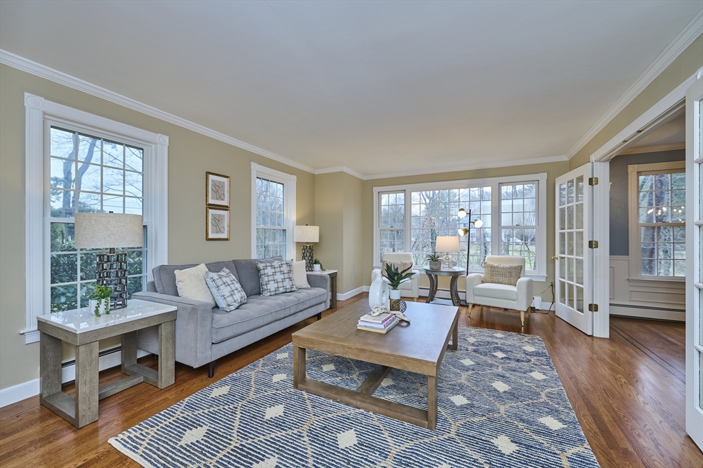 Drive through picturesque stone walls to this sprawling Colonial on the Dover line. Its 1.39 acres back up to State conservation land. 1/4 mile walk to Rocky Woods Reservation with nature trails. Built in 1994 and lovingly maintained, improved and expanded with generous 2004 addition. Its 14 rooms offer flexible use of space. 4.5 baths. Home office; mud room; game room; storage galore. Over-sized windows look out onto green space/trees. New roof. 5-year old boiler. Fenced yard, entertainment sized Trex deck off a grand family room. Two fireplaces. Five bedrooms, including 1st floor guest suite. The primary bedroom features a sitting area, walk-in closet, Air Jet tub, heated bathroom floor. The kitchen offers chef appliances: BlueStar stove, Wolf oven, Sub Zero fridge, warming tray, filtered drinking water. Bonus full finished basement not included in sq. footage. Central air; central vac; 3-car garage; integrated wall and ceiling speakers. Title V and well water test in hand.