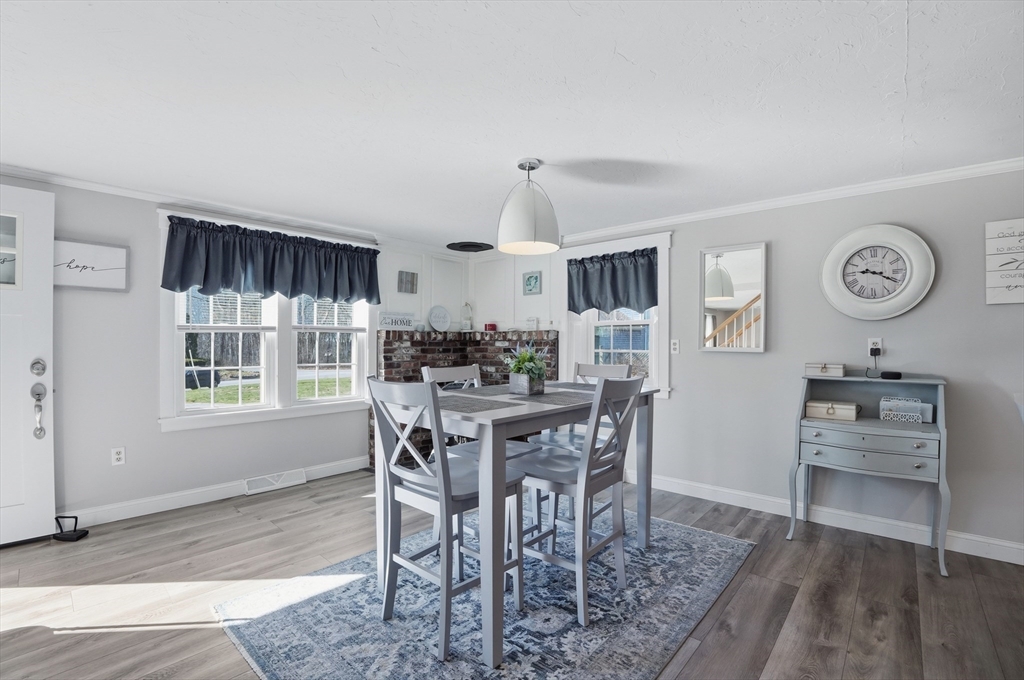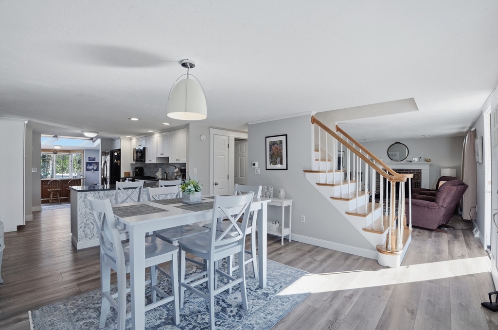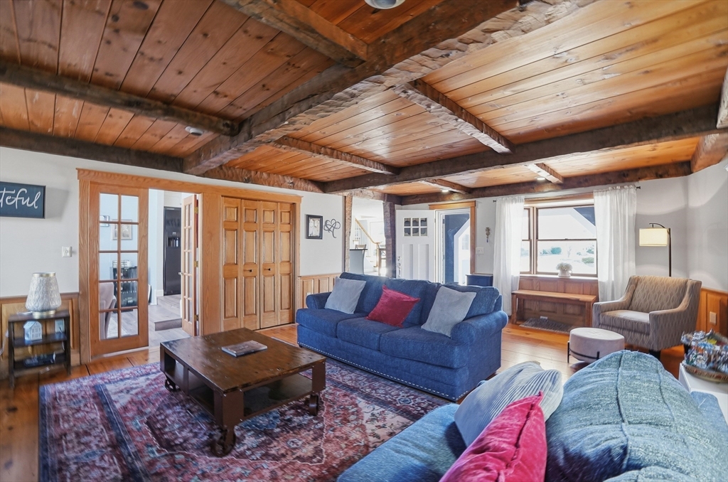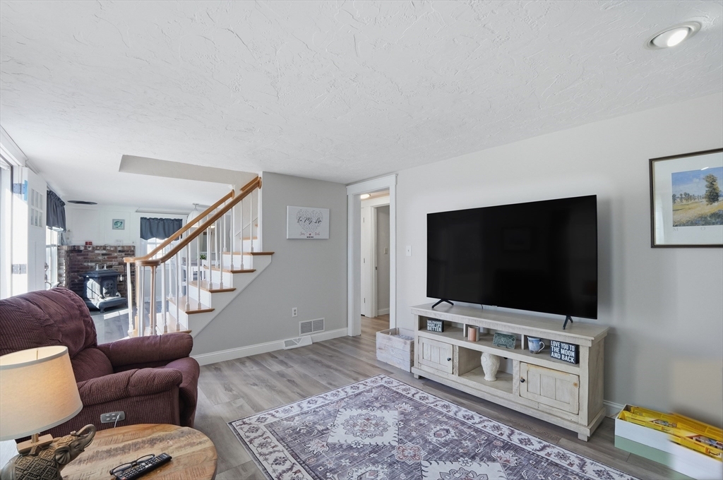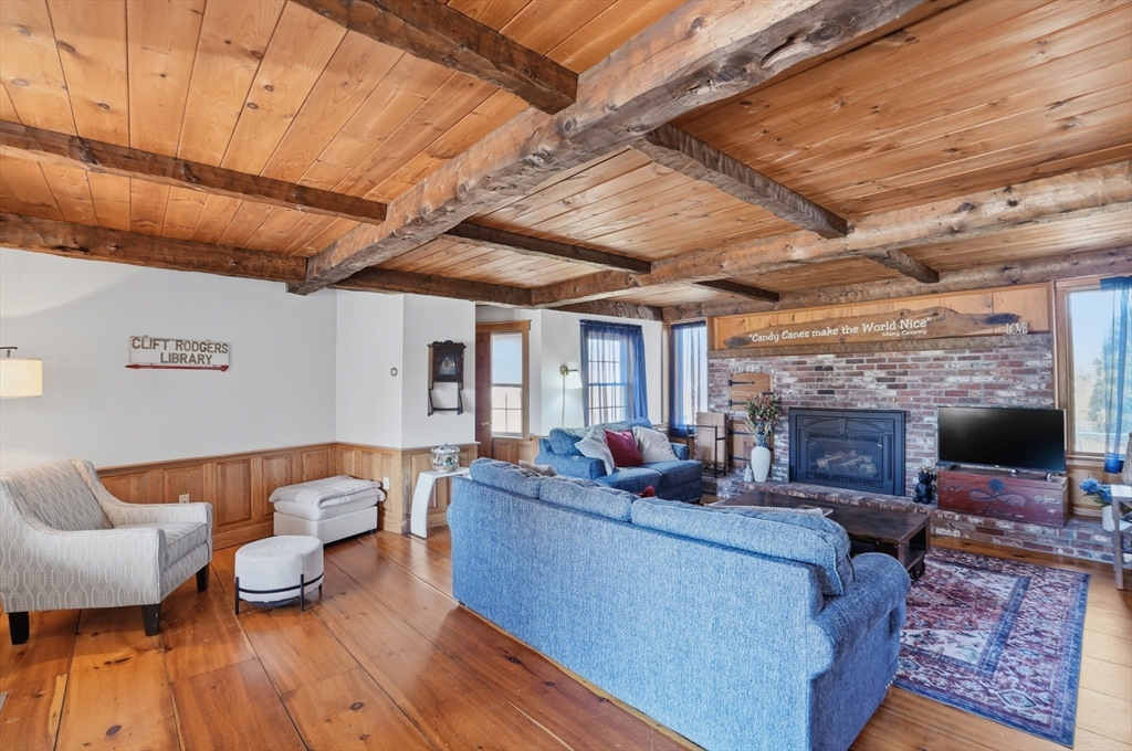 Tucked away in a desirable neighborhood just minutes from Green Harbor Beach, this spacious 4-bedroom, 2.5-bath home offers the perfect blend of comfort, charm, and convenience. Enter in through your cozy living room with a large brick hearth, gas fireplace and wood coffered ceiling. The first-floor primary suite provides a private retreat, complete with a washer and dryer for added ease. The kitchen features gas cooking, a breakfast bar, and tons of natural light. Also on the first floor we have a sitting room with a wood burning fireplace, a dining area, and a bar space. Three generous sized bedrooms are located on the second floor along with a half bathroom, and a pocket door at the top of the stairs for privacy. Above the garage, a heated bonus room offers endless flexibility-home office, gym, or guest space. Outside there is recently updated hardie plank siding and a 2 year old roof (with warranty), trek decking and a fire pit area, perfect for entertaining in the warm months!