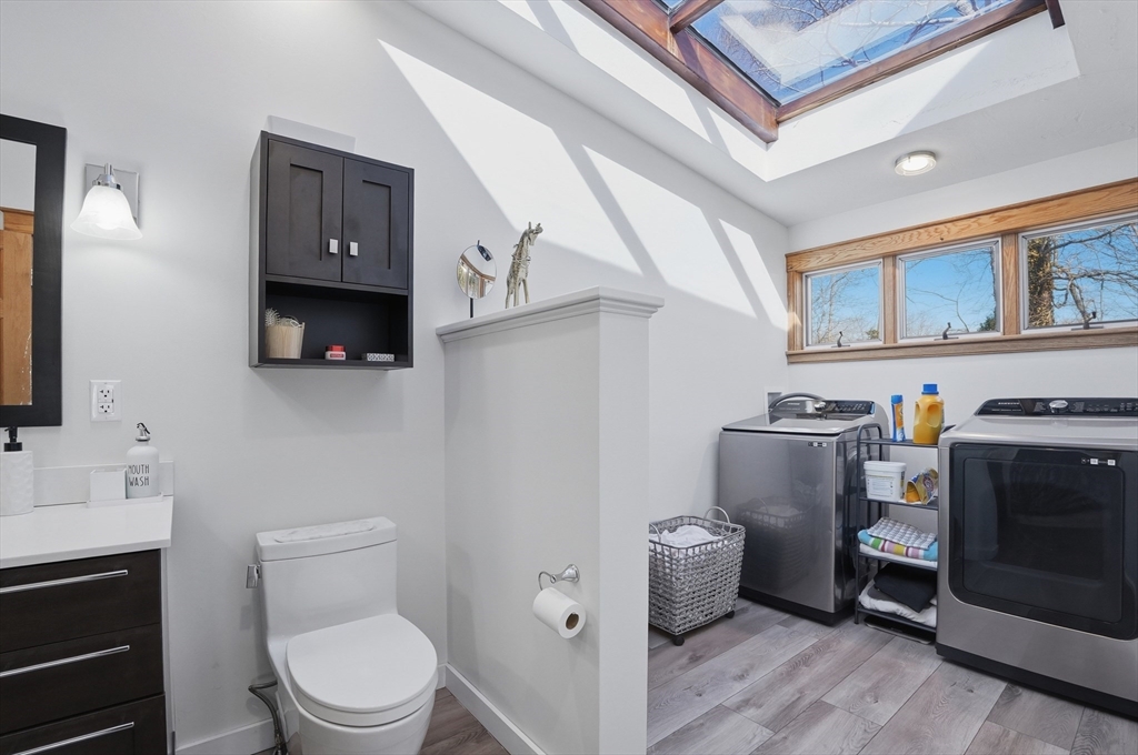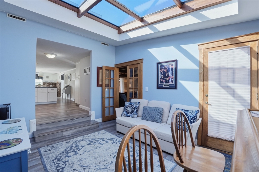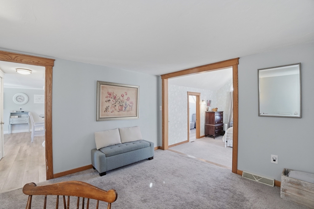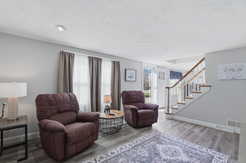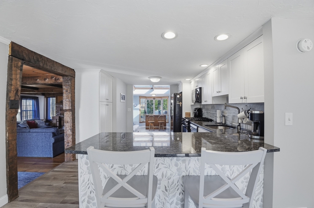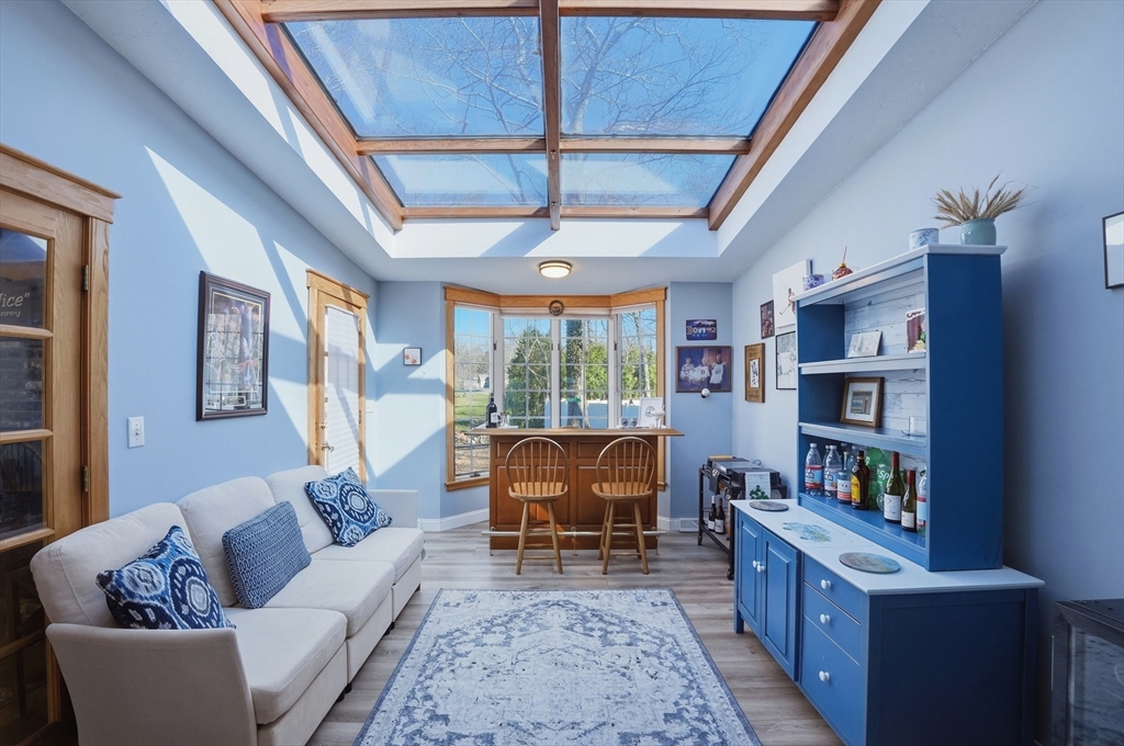 Tucked away in a desirable neighborhood just minutes from Green Harbor Beach, this spacious 4-bedroom, 2.5-bath home offers the perfect blend of comfort, charm, and convenience. Enter in through your cozy living room with a large brick hearth, gas fireplace and wood coffered ceiling. The first-floor primary suite provides a private retreat, complete with a washer and dryer for added ease. The kitchen features gas cooking, a breakfast bar, and tons of natural light. Also on the first floor we have a sitting room with a wood burning fireplace, a dining area, and a bar space. Three generous sized bedrooms are located on the second floor along with a half bathroom, and a pocket door at the top of the stairs for privacy. Above the garage, a heated bonus room offers endless flexibility-home office, gym, or guest space. Outside there is recently updated hardie plank siding and a 2 year old roof (with warranty), trek decking and a fire pit area, perfect for entertaining in the warm months!