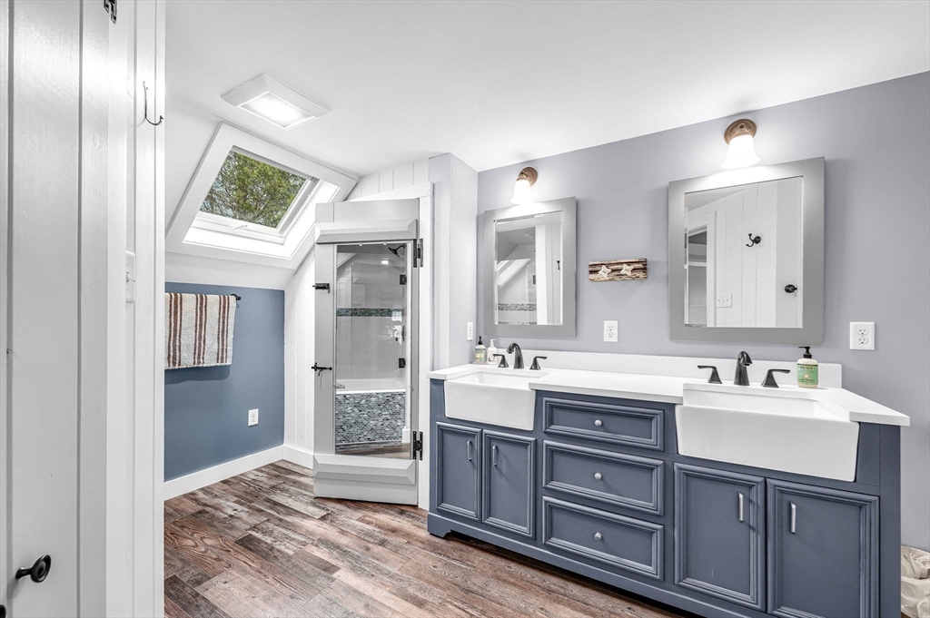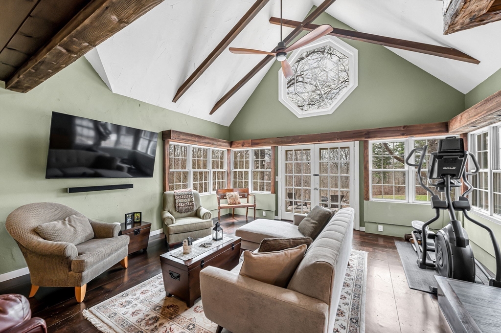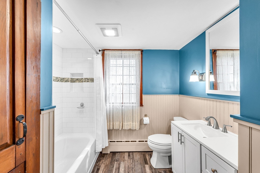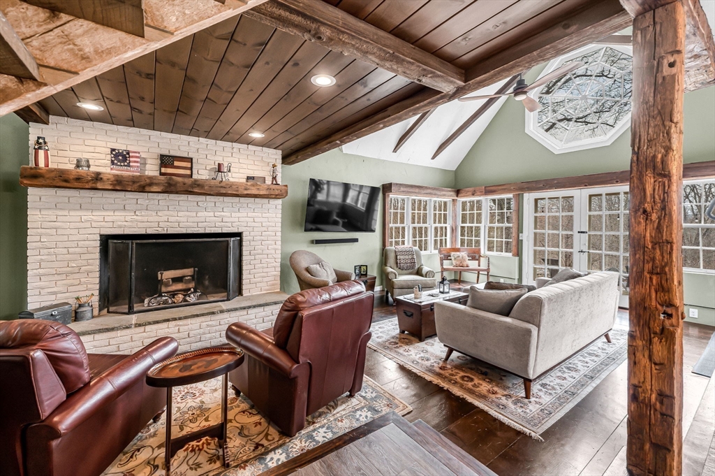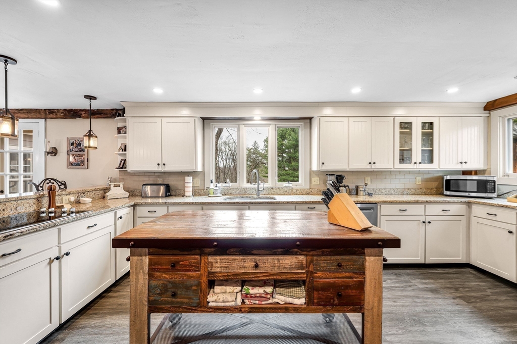 TOP LOCATION, set on the town green in the Heart of Suffield Village's Historic District, center-of-town lifestyle. Beautifully renovated & expanded to blend modern amenities & antique charm, accessing town center, Suffield Academy, library, shops & restaurants; yet the backyard offers PRIVATE, peaceful seclusion from the bustle of Main Street. Beautiful granite kitchen opens to family dining area & great room w/ oversized raised hearth fireplace, French doors lead to tiered blue stone patios overlooking a secluded back yard. Take the stairway to the primary bedroom suite which includes a walk-in closet, sumptuous bath w/ deep tub, and adjoining balcony loft/sitting room/office w/ fireplace. 3 more bedrooms share a hall bathroom. 2nd floor laundry has folding counter. Hand-hewn wide board "King's wood" flooring adds historic charm. Separate cozy 1 BR cottage w/loft & full bath - perfect for guests, office, or an income stream. Close to Bradley International Airport & I-91! View it now!