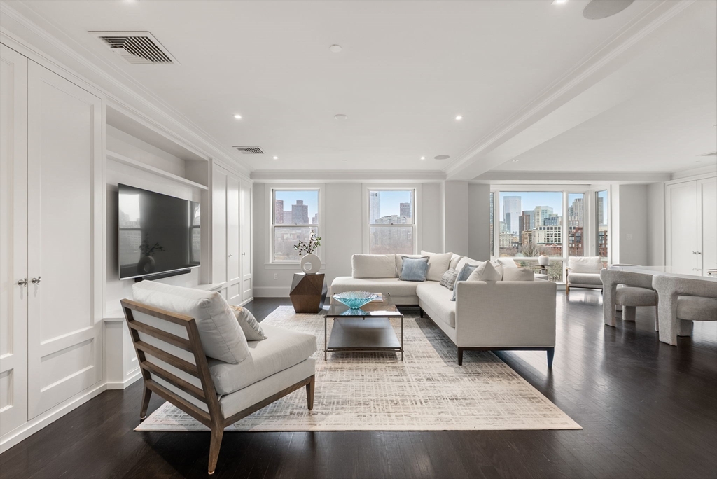 Exquisite three-bedroom, 2.5-bath residence offering a luxurious lifestyle with sweeping views of the iconic Public Garden, complemented by the convenience of a 24-hour concierge, valet parking, and access to the Newbury Hotel’s room service and fitness center.This beautifully renovated home exudes elegance and sophistication throughout. The entry opens into a stunning living room with picturesque garden views, flowing seamlessly into an expansive one-of-a-kind chef’s kitchen equipped with state-of-the-art appliances and a striking waterfall island—an ideal setting for both everyday living and entertaining. The primary bedroom suite features a spa-like marble en-suite bath and a generous walk-in closet, while two additional bedrooms provide flexibility for guests or home office use. A spacious laundry room completes this exceptional residence, where every detail has been thoughtfully curated for elevated city living.