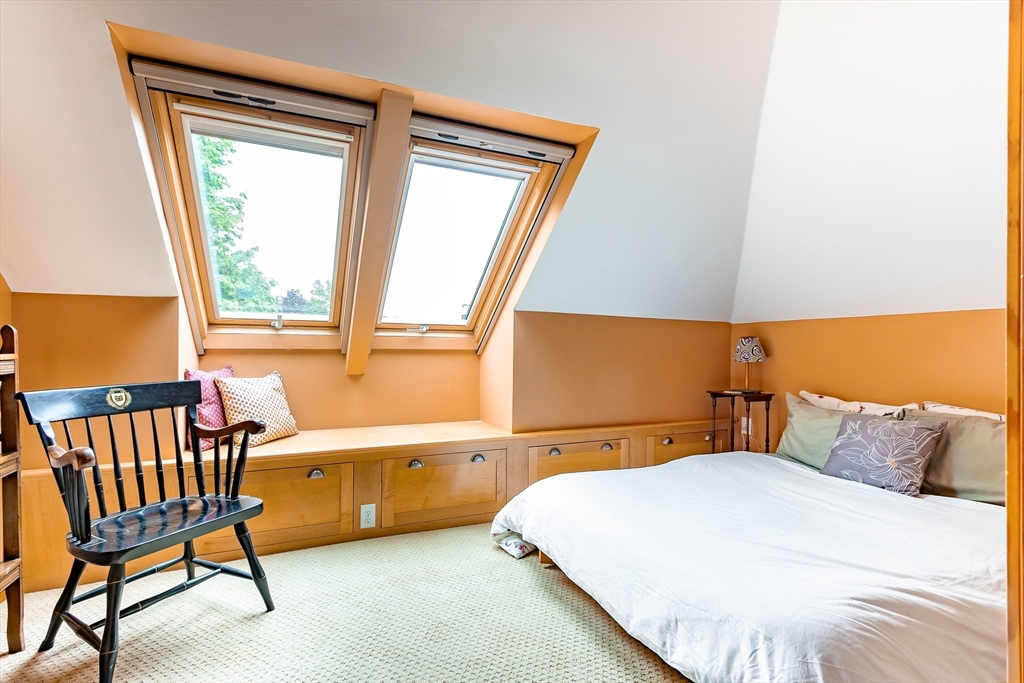 Spacious 5-bed, 2.5-bath Pondside condo on a stately corner lot. Spanning the top two floors, this home is flooded with natural light and blends classic charm with modern comfort. The expansive living room features gumwood trim & wood-burning fireplace. The paneled dining room leads to the sunroom perfect for an office or reading nook. The kitchen offers island seating and direct access to a private deck - perfect for morning coffee. A separate wing includes 3 bedrooms and 1.5 baths offering privacy from the living spaces. Upstairs features a skylit primary suite with built-ins, an open-beamed sitting room, spa-like bath, and 5th bedroom. Checking all the boxes with in-unit laundry, garage parking, ample basement storage, and a shared fenced garden & patio. One block to Jamaica Pond, Whole Foods, close to all the vibrant shops, restaurants, and Longwood Medical in one of the most beloved neighborhoods!