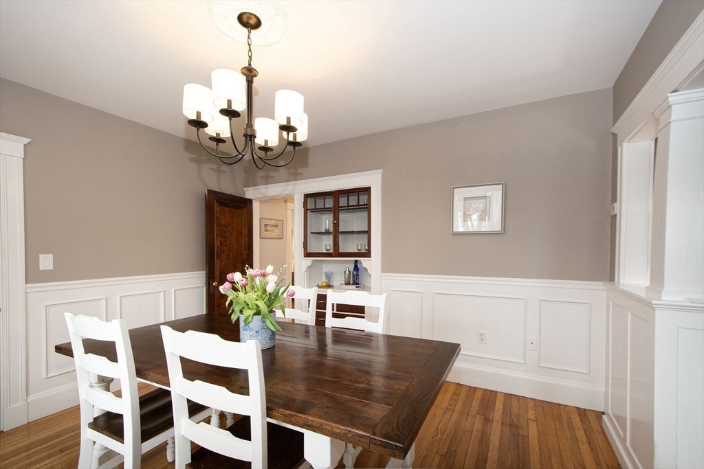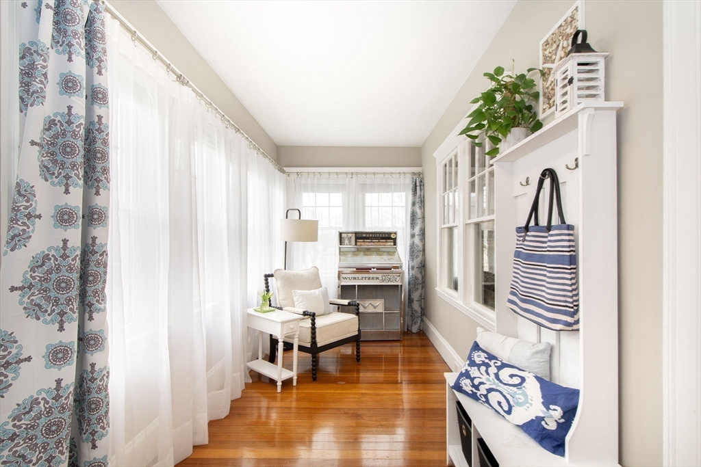 Prepare to be smitten with this sweet, sunny Montclair bungalow! Charming details include a white picket fence, Farmer's Porch, hardwood floors, beamed ceiling, wood-burning fireplace, original built-in bookcases and china cabinet, and even a clawfoot tub! You'll appreciate the heated Sun Room/Office, welcoming entry way w/ shiplap accent wall, and the light and bright eat-in Kitchen with white shaker cabinets, granite counters, stainless steel appliances, and large adjoining Dining Room. The Primary Bedroom has a walk-in closet, and the walk-up attic and full basement with high ceiling offer room for expansion and storage. The detached one car garage, patio, 2019 furnace, 2022 Hot Water Heater, and fabulous location close to E. Milton Square, the N. Quincy T Station and President's Golf Course, with tennis, pickle ball courts, swing set area, dog walking, sledding, cross country skiing, and more make this home a winner!