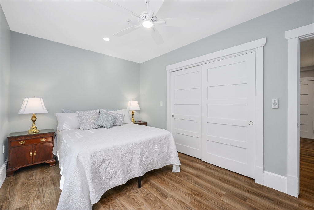 A unique opportunity awaits at 76 Court Street, presenting a residence that beautifully integrates established architecture with modern comfort. Just one block from the scenic Plymouth waterfront, this prime location puts you steps away from boutique shopping, acclaimed dining and iconic landmarks, offering an unmatched coastal lifestyle.The interior showcases stylish appeal with luxury vinyl plank flooring, sleek granite countertops, stainless steel appliances, and recessed lighting throughout. Within this thoughtfully designed home, two tastefully appointed bedrooms provide tranquil environments for repose; the main bedroom offering sanctuary including an en-suite full bathroom and double sink vanity. Meticulously maintained and move-in ready, this home also features amenities including a fully equipped fitness center, a function room for gatherings, an outdoor grilling area, private locked storage room and two deeded parking spaces. Welcome home to The Residences At The Armory!