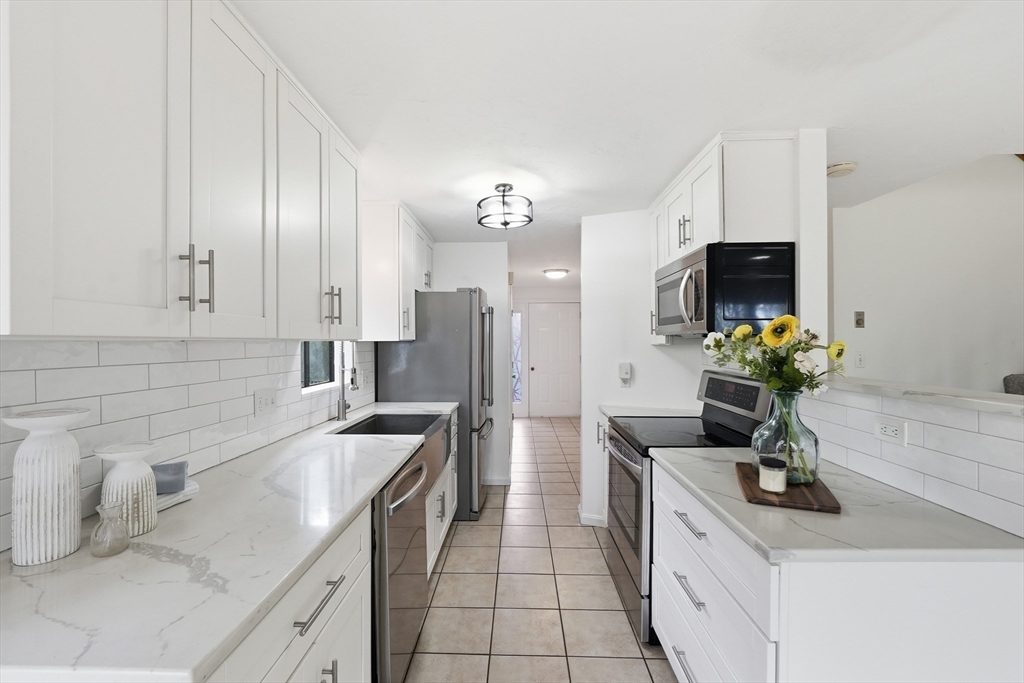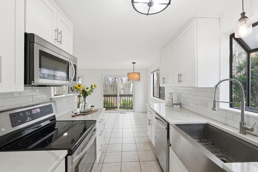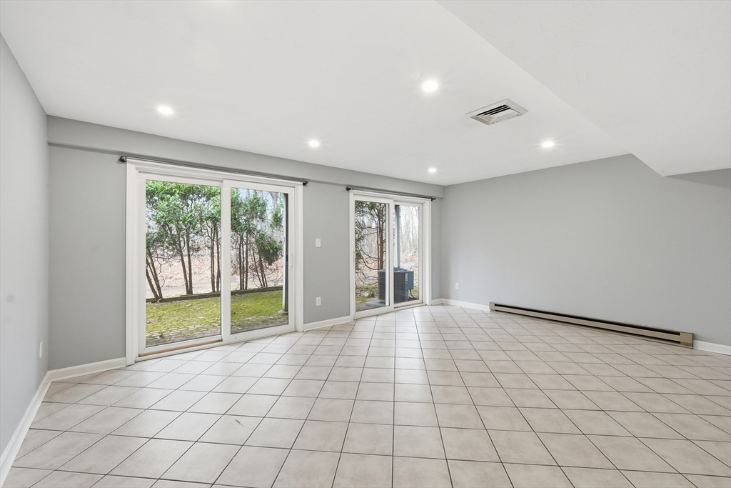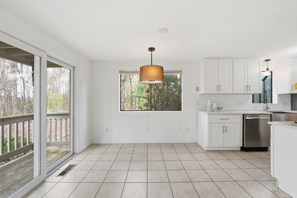 Welcome to this beautifully maintained end-unit townhouse in a peaceful North Grafton community. Spanning three levels, this home offers a great balance of comfort, space, and convenience. The main level features an open layout connecting the kitchen, dining, and living areas—ideal for everyday living and entertaining. The updated kitchen includes modern cabinetry, stone countertops, and sleek appliances, with sliders leading to a private deck surrounded by greenery. Upstairs offers two spacious ensuite bedrooms, including a primary suite with a private balcony, walk-in closet, and a full bath with double vanities. The newly finished walk-out lower level provides flexible space for a family room, office, or guests, along with laundry and a half bath. Enjoy both deck and patio outdoor spaces, central air, gas heating, updated systems, and an attached garage. Conveniently located near the Mass Pike, Route 20, and Route 122 for easy commuting.