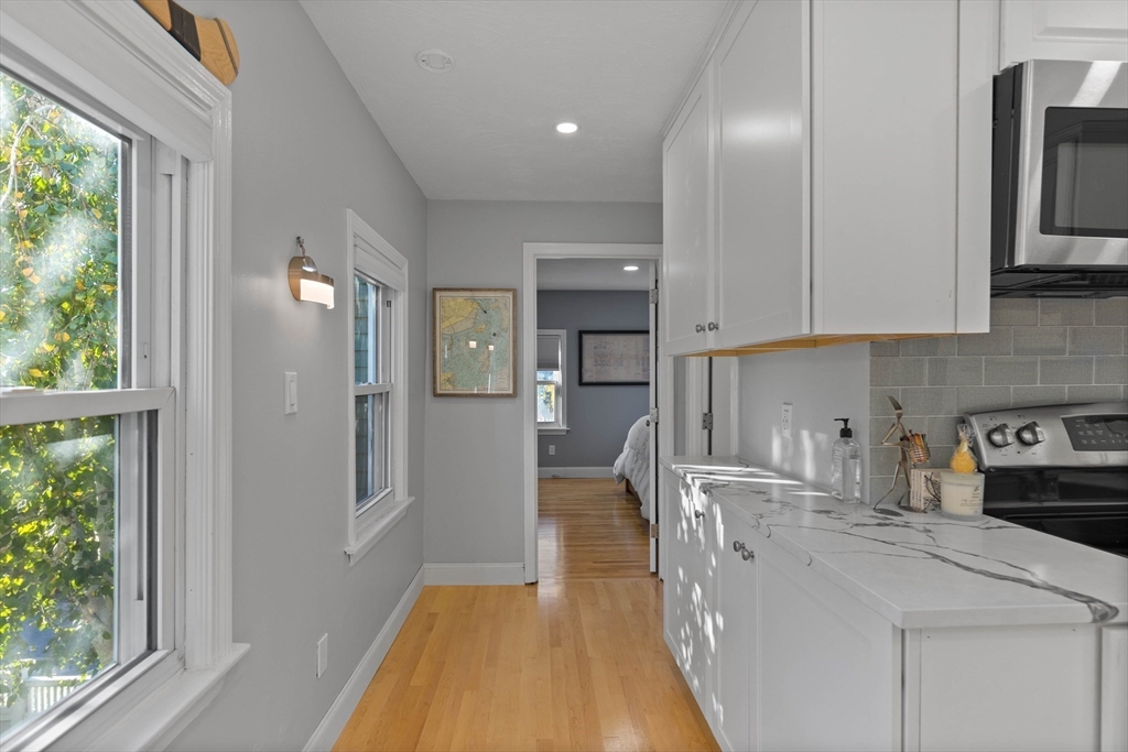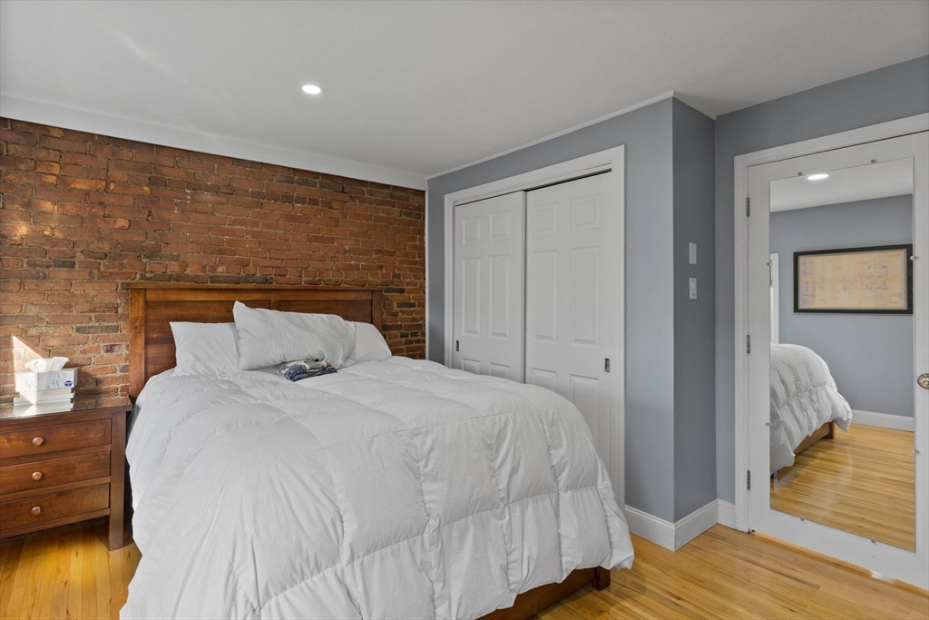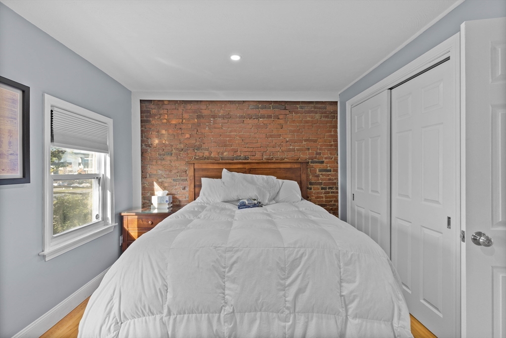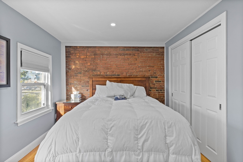 Welcome to this stylish and sun-filled 1 bed, 1 bath condo offering 590 sqft of efficient living on a scenic, tree-lined street full of Charlestown charm. The spacious bedroom features an exposed brick wall and excellent closet space, blending character with functionality. Enjoy abundant natural light through oversized windows and relax in the bright living area with sliders leading to a brand new private balcony overlooking a peaceful courtyard with views of the Zakim Bridge. The modern kitchen is equipped with quartz countertops, stainless steel appliances, and a peninsula with a built-in beverage fridge—perfect for entertaining. The bathroom boasts a sleek glass shower stall for a clean, contemporary feel. Generously sized throughout, this home offers comfort, style, and an unbeatable location close to shops, restaurants, Boston, and major commuting routes.