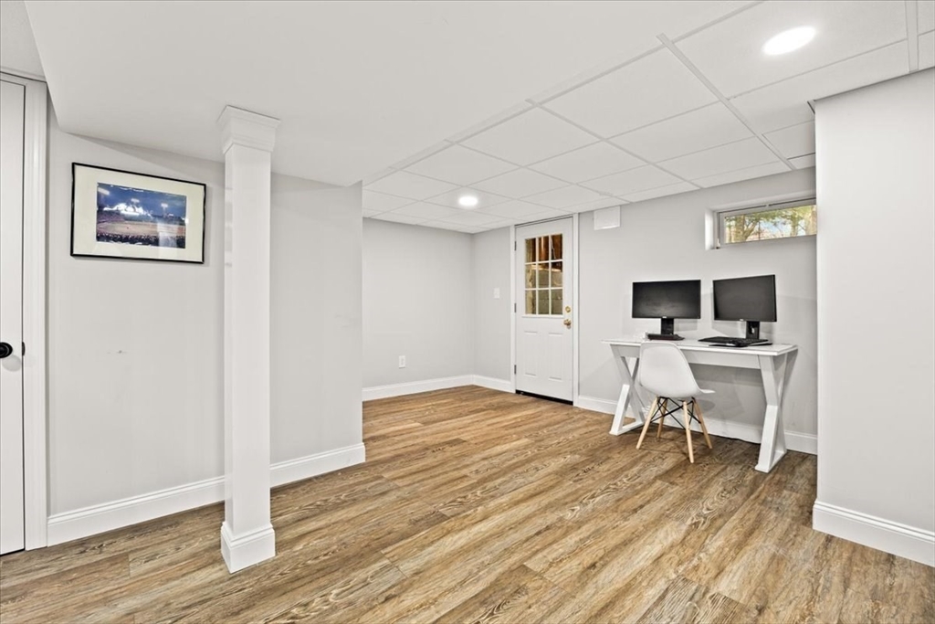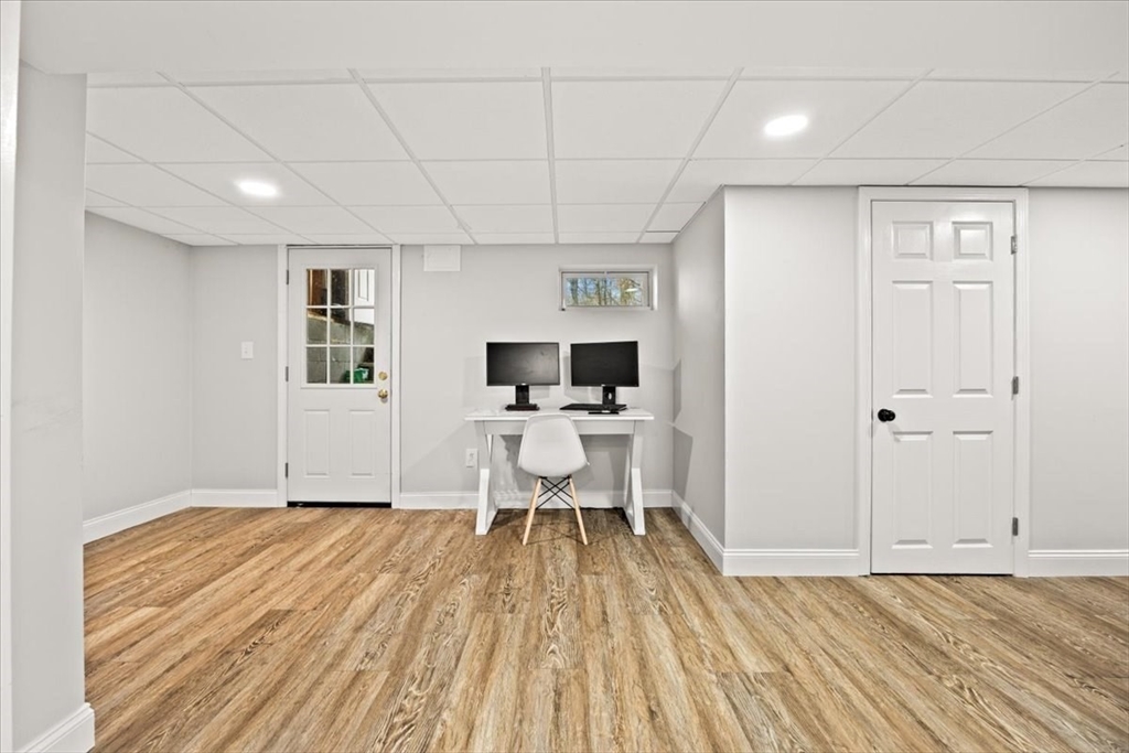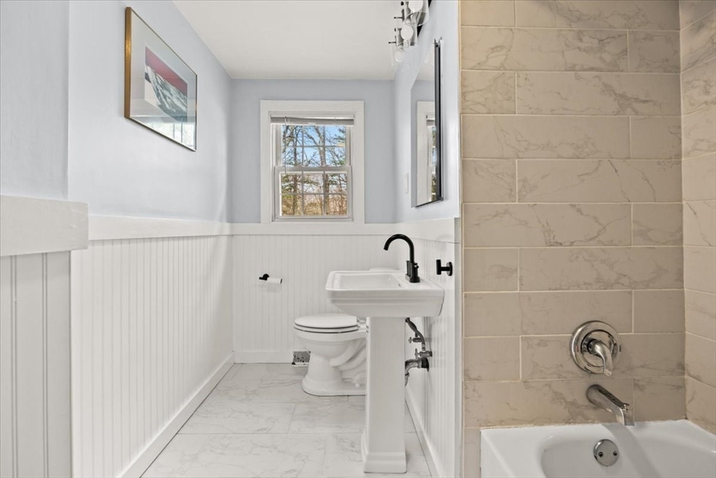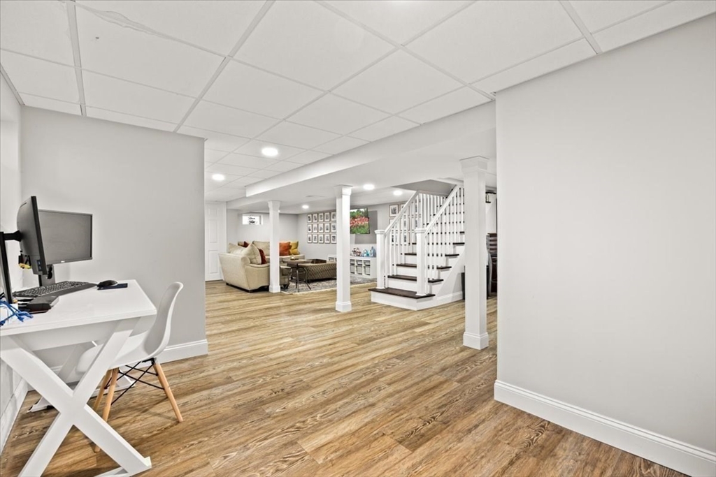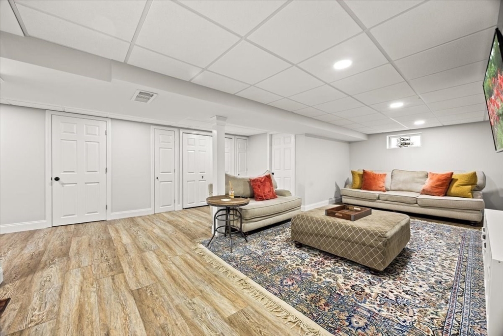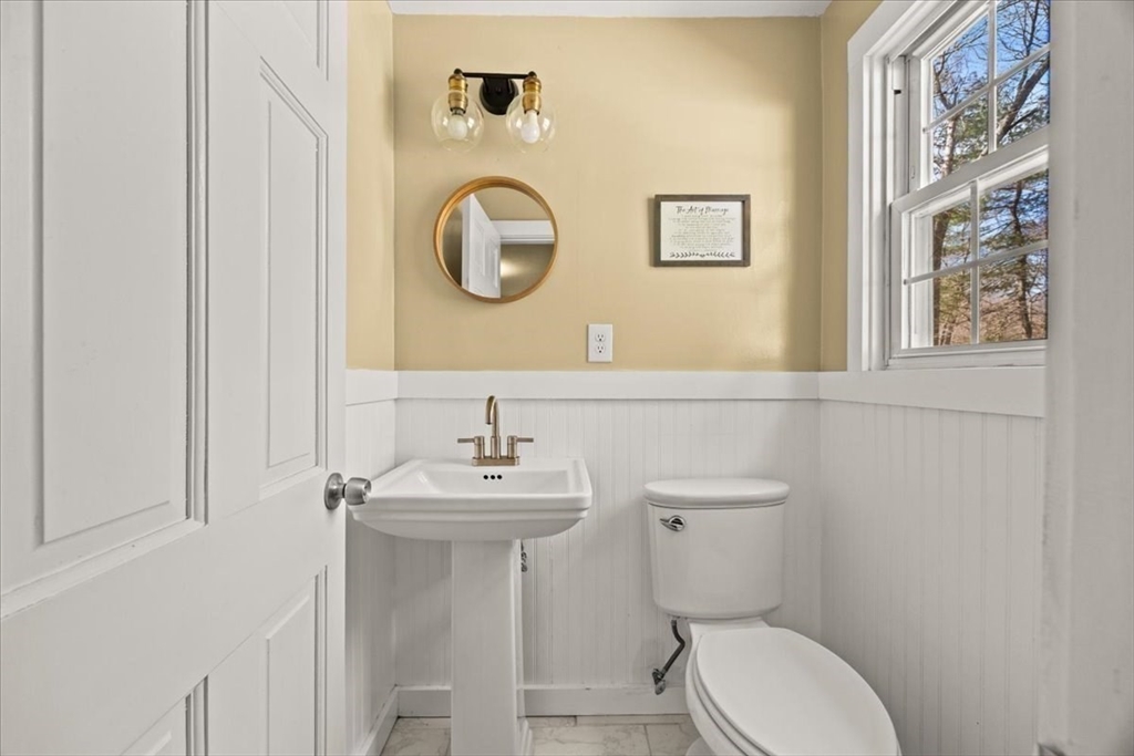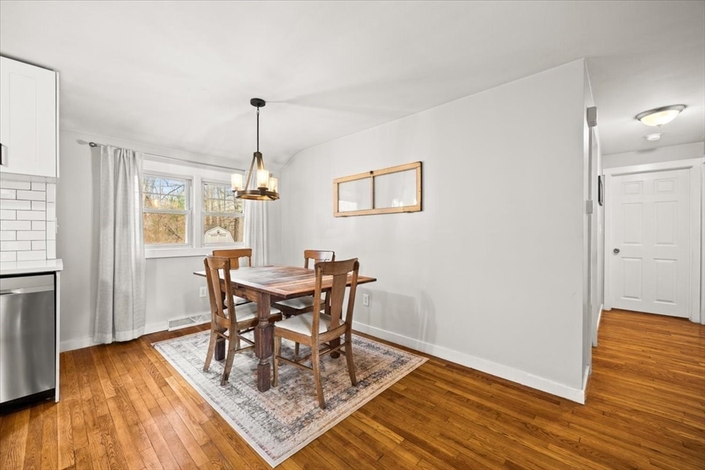 Welcome to 34 Hitchcock Lane in Attleboro! Tucked away at the end of a quiet street, this loved home offers 3 bedrooms, 1 full and 2 half baths, and a flexible layout perfect for everyday living and entertaining. Inviting family room/sunroom featuring a cathedral ceiling, skylights, and slider leading to a spacious deck. The updated kitchen boasts quartz countertops, stainless steel appliances, a peninsula island, and a dedicated dining area. A second living area offers hardwood floors and a cozy wood-burning fireplace. The main bedroom features hardwood floors and a convenient half bath, while two additional bedrooms also offer hardwood flooring and updated full bath completes the main living area! The finished lower level includes a family room, half bath, laundry area, and ample storage, lots of recess lighting and walk-out access to a private, fenced-in backyard. Gas heat, Central Air and Pass Title V in hand!