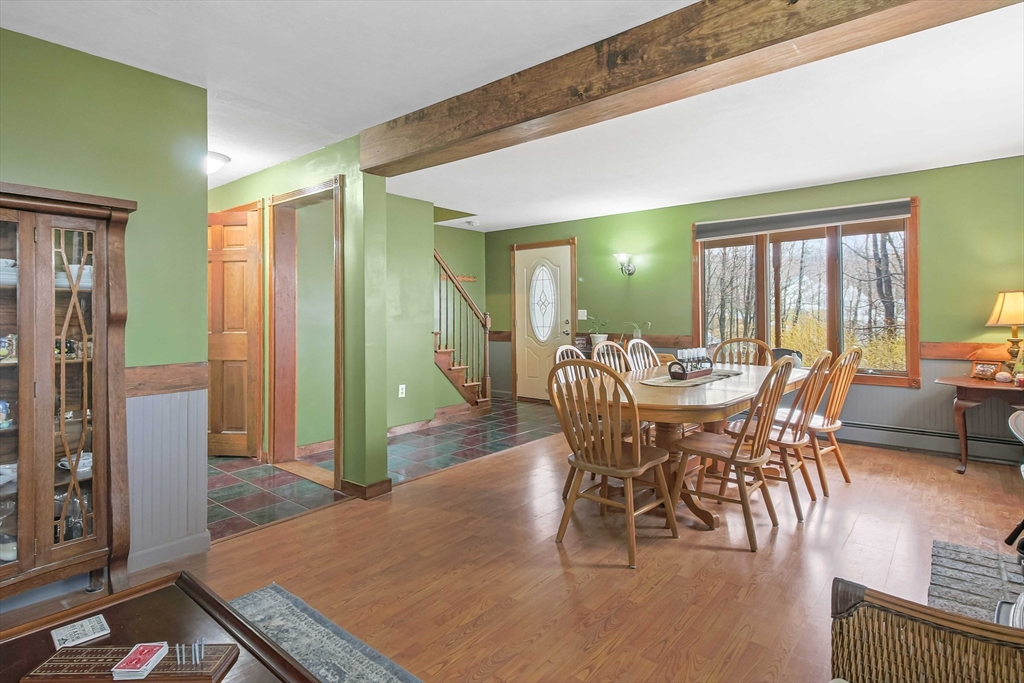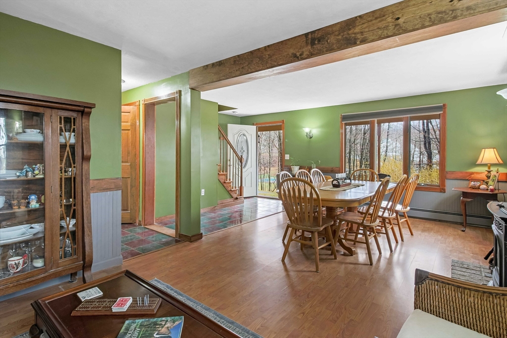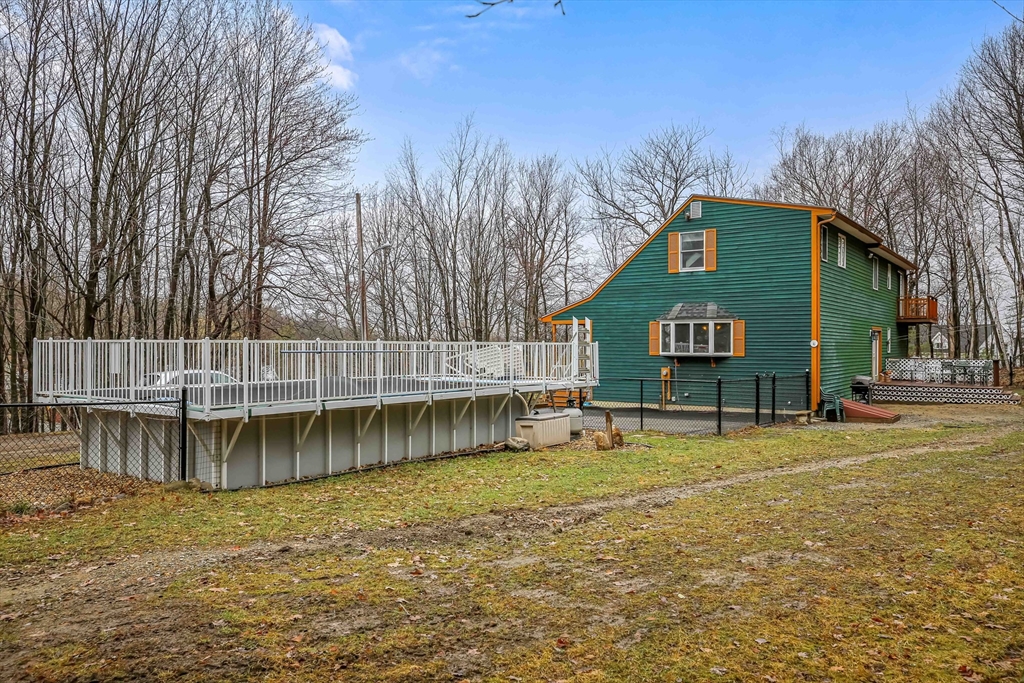 Oversized Cape with spacious and flexible floorpan! Located on a wooded lot for privacy, Updated kitchen, open floor plan to adjacent oversized family room with fireplace and a newly renovated dining room round out the first floor. Expansive farmer's porch to enjoy summer nights! Three generously sized bedrooms on the second floor with additional staircase from Primary suite to the kitchen. Second bedroom with walk in closet and sliders to a private balcony. The flexible floor plan works for families and extended stay guests! Partially finished game room in basement rough plumbed for additional half bath. Privacy abounds off the deck in the wooded back yard. Lot backs up to protected land, wooded privacy abounds! Backyard features fire pit and shed with electricity and water. The pool is in excellent condition, ready for summer enjoyment!