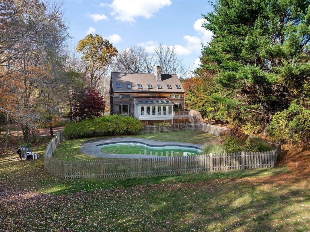 Welcome to an exceptional and truly one-of-a-kind Norwell retreat—rare opportunity to own a home that seamlessly blends rustic charm, striking architecture, and modern living. Thoughtfully improved throughout, this home offers an inviting yet dramatic interior featuring soaring ceilings, exposed beams, natural light, and an open layout designed for both comfortable everyday living and effortless entertaining. One of the home’s most captivating features is the spectacular south-facing sunroom, creating a bright, tranquil space. Step outside to your own private backyard oasis complete with a deck, fenced-in, in-ground gunite pool, and a serene wooded backdrop. This 3-acre lot is perfectly located mins from Hanover Crossing with its upscale shopping, restaurants, and entertainment. Quick access to Route 3 for an easy ride to Boston or the Cape. This is the ideal combination of privacy, convenience, and lifestyle. A rare Norwell gem that must be seen. Ask agent for list of improvements!