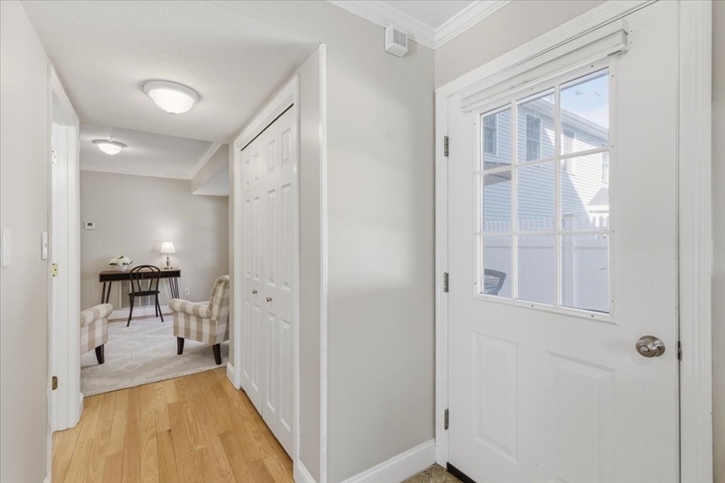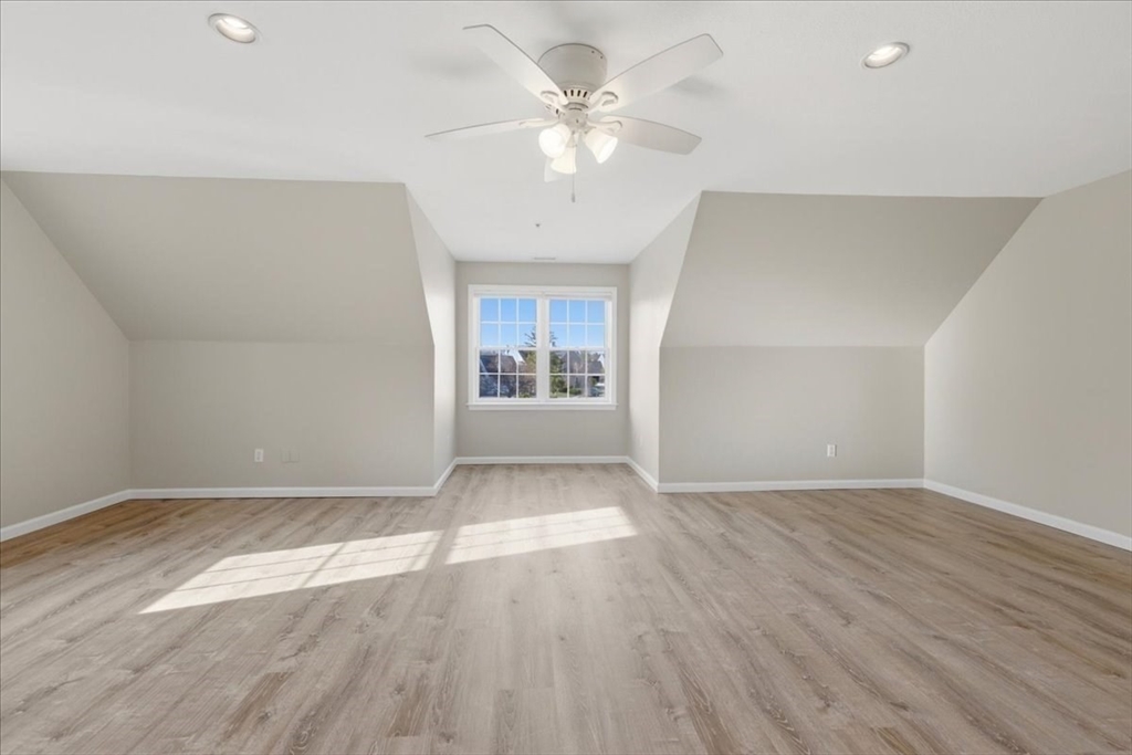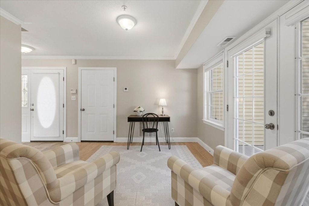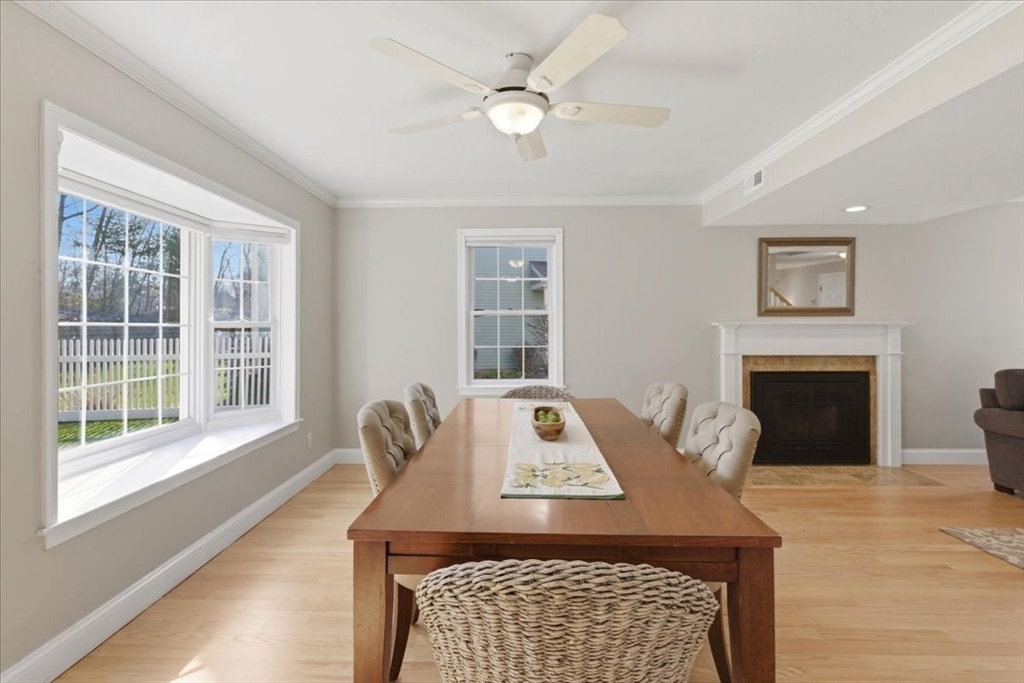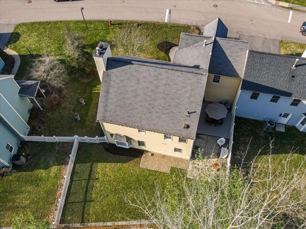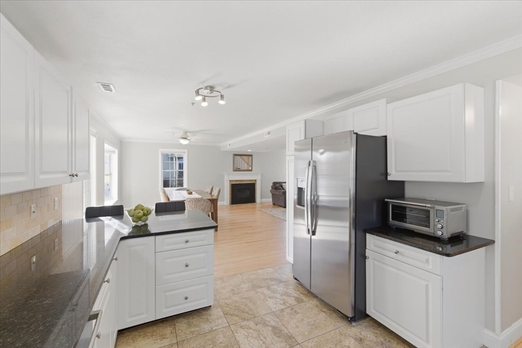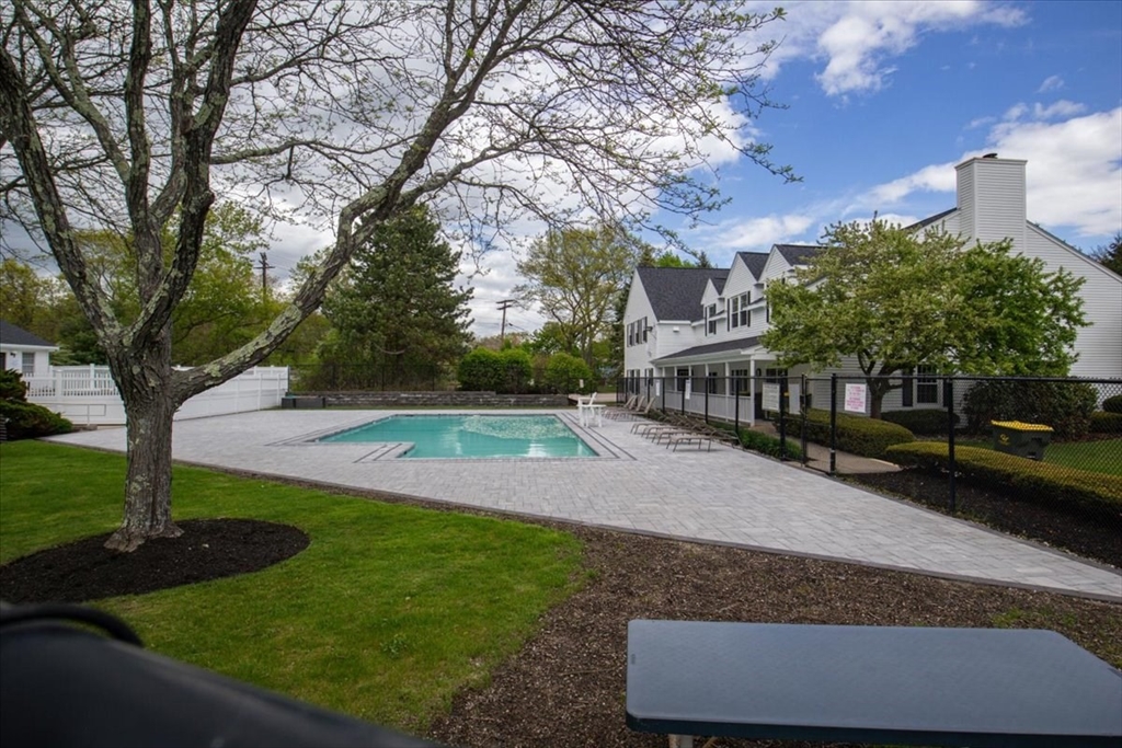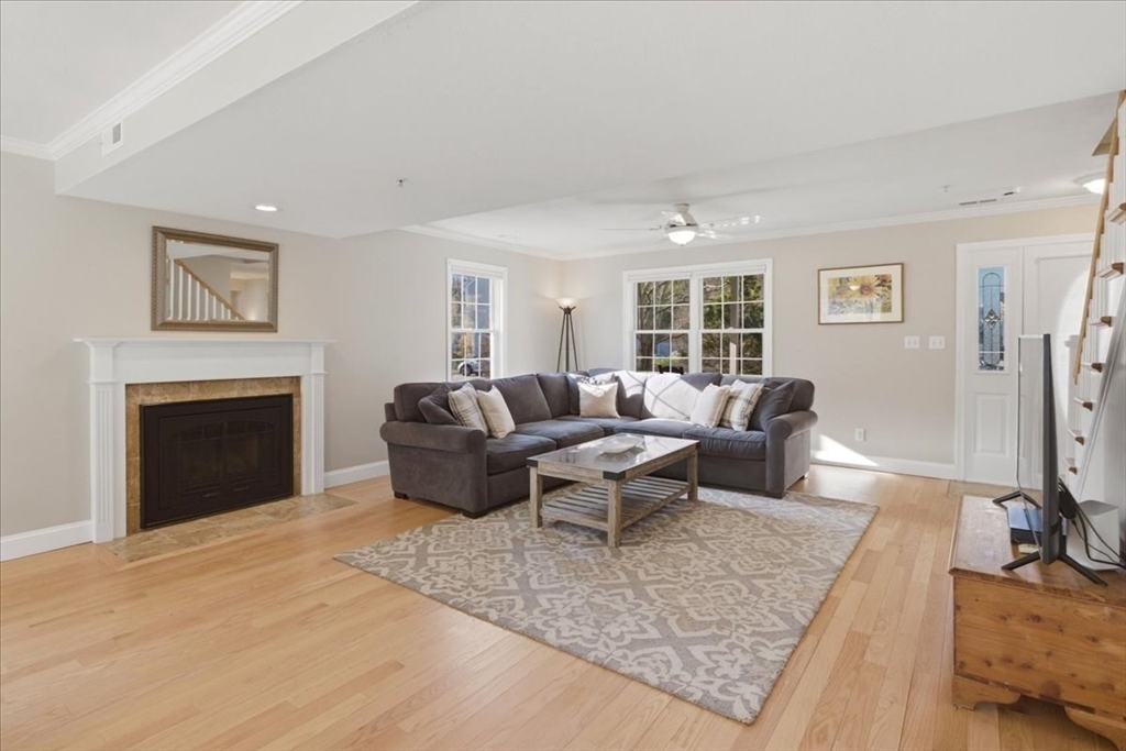 Welcome to the ease of townhouse living in this 3-bed, 2.5-bath home with garage. Enter from the farmer’s porch to the main level showcasing hardwood flooring, a living room featuring a central fireplace, and open dining area with bay window overlooking the private landscaped backyard. Well-equipped kitchen, boasts granite countertops, breakfast bar, chef’s range and has direct access to a Trex deck and stone patio. Plus a versatile bonus space, ideal for a home office or den. Warm up by a fireplace in the expansive primary suite with private ensuite including soaking tub, separate shower, and WIC. Second bedroom, full bathroom, laundry facilities and flexible third bedroom offering a separate egress complete this level. Potential for future expansion exists in the walk-up attic. Residents enjoy resort-style amenities, including two swimming pools, tennis courts, and a clubhouse. The property is ideally situated within walking distance of the commuter rail and minutes from town center.