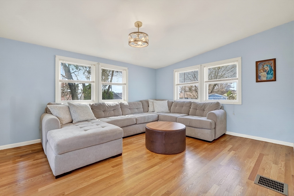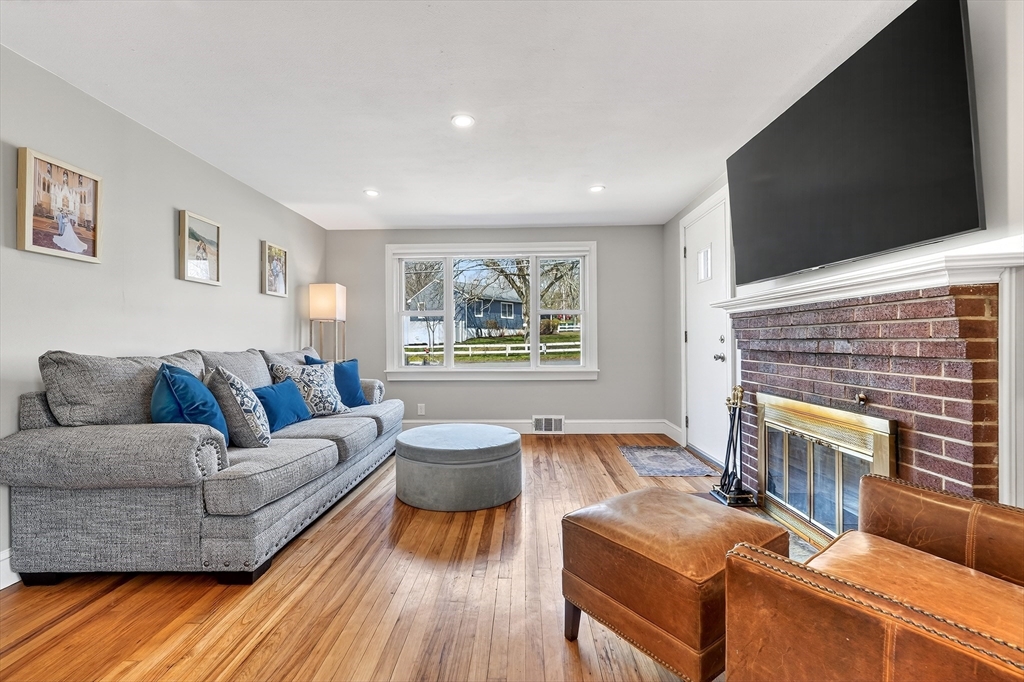 Welcome home to 9 Valley Road in Norwood! This three-bedroom, one-bathroom ranch style home has been tastefully updated throughout offering a great opportunity for first time buyers or empty nesters. The first floor features a wood burning fireplaced living room with recessed lights, renovated kitchen with new appliances, separate dining area and a large family room off the rear of the house for entertaining family and guests. Three bedrooms with hardwood floors and a renovated full bathroom along with a bonus family room in the basement. Additional features include a modern heating system, central air conditioning, bonus storage shed, all situated on quiet side street location seconds to the MBTA commuter rail and all that Norwood Center has to offer.