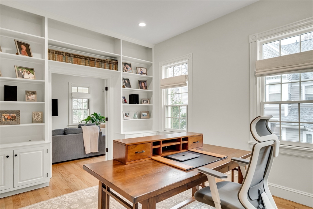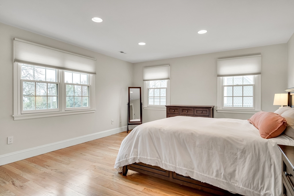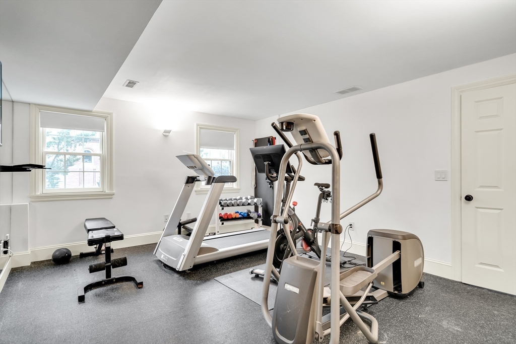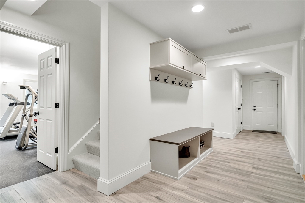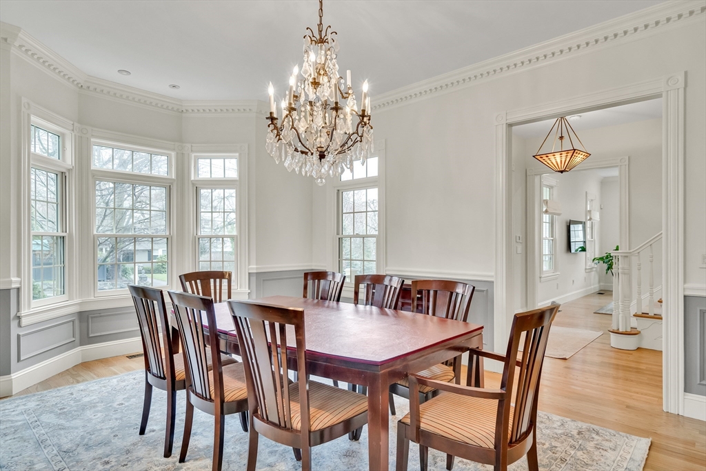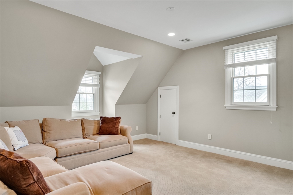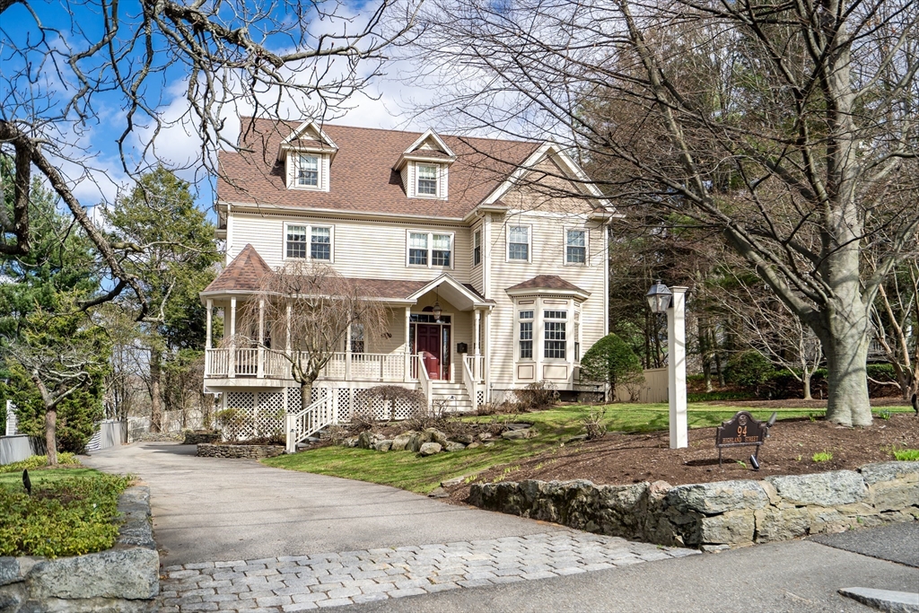 Spacious young West Newton Hill Colonial offering over 5,250 sq ft of living space on a 15,000+ sq ft lot. This home blends classic design with thoughtful updates and has been meticulously maintained, including a renovated kitchen, newer roof, heating and HVAC, Pella windows, and freshly refinished hardwood floors. The main level features a sun-filled family room with fireplace and access to a deck overlooking a large, level, fenced yard, along with a formal dining room, living room, home office, and half bath.The second floor includes a generous primary suite with vaulted ceiling, fireplace, and two walk-in closets, plus three additional bedrooms, one en suite, a full hall bath, and laundry. The third floor boasts a bedroom, full bath, and a spacious bonus room or additional bedroom. The finished lower level offers a mirrored gym and a room with exterior access and full bath and a custom built-in bench and a two-car garage. Close to West Newton Square, commuter rail, and major routes.