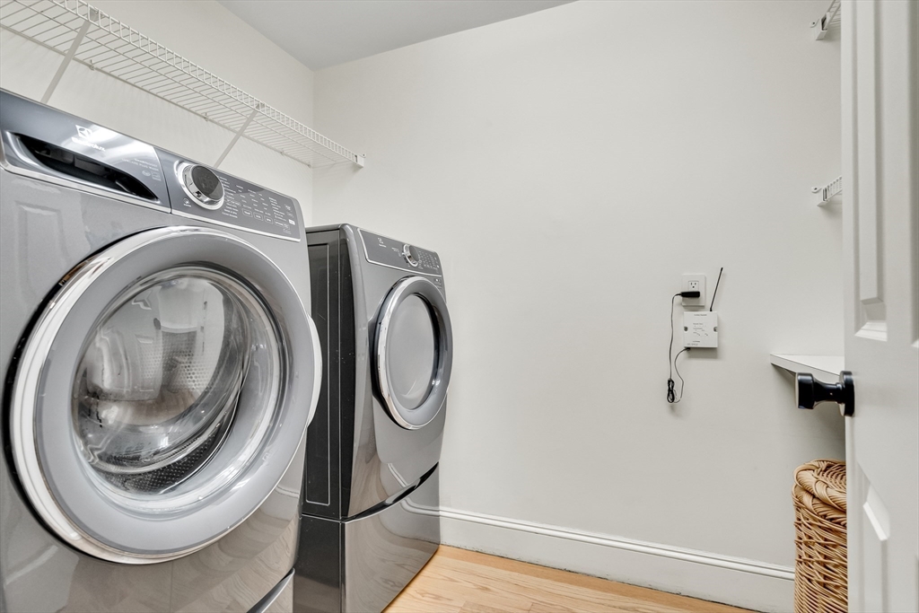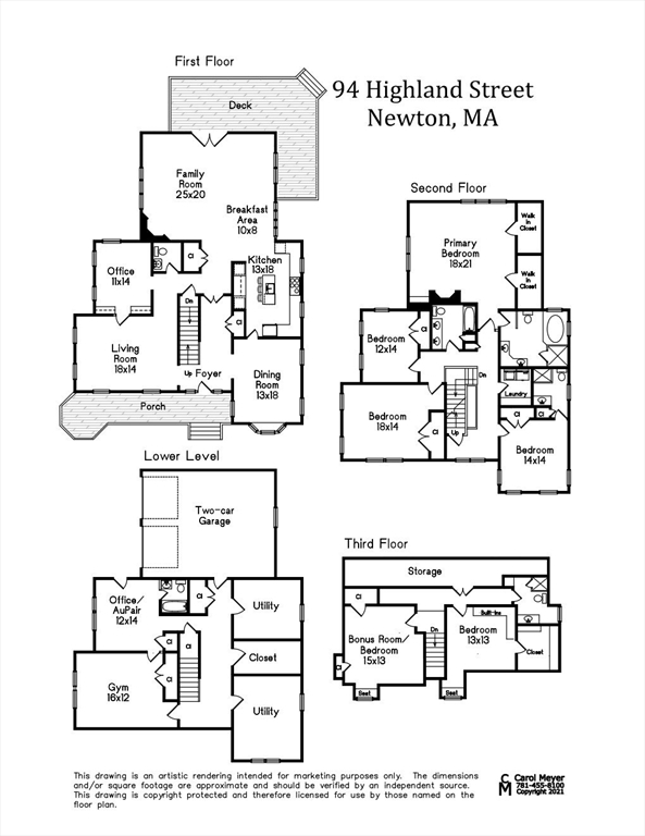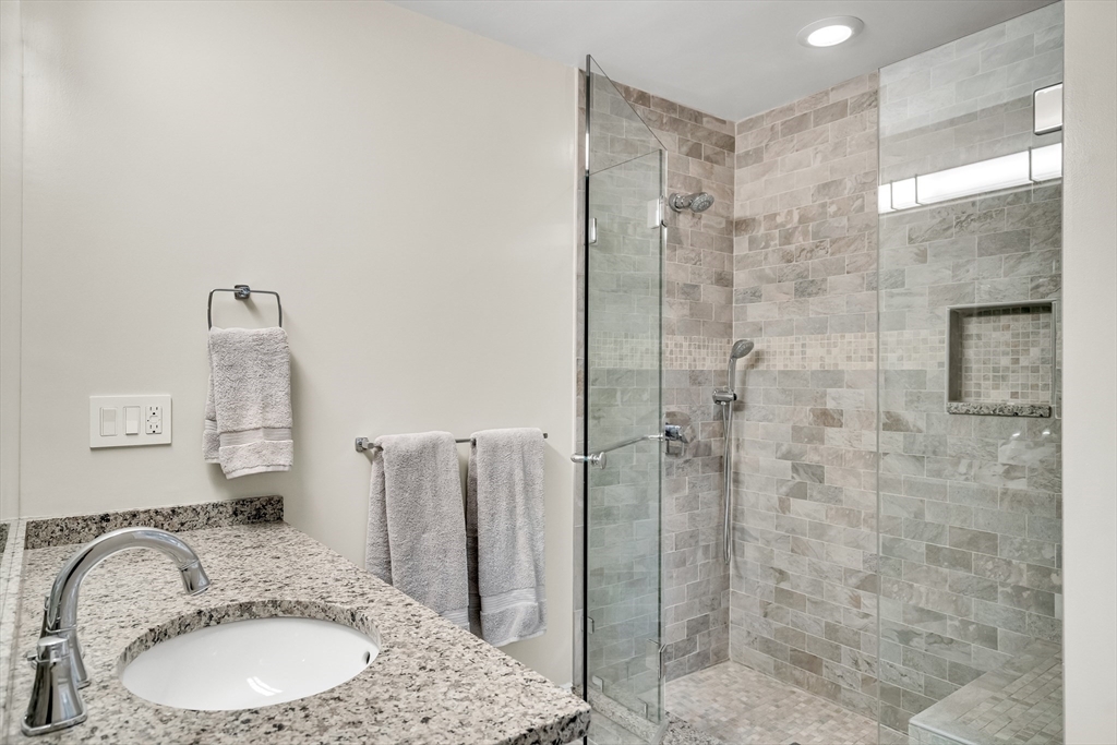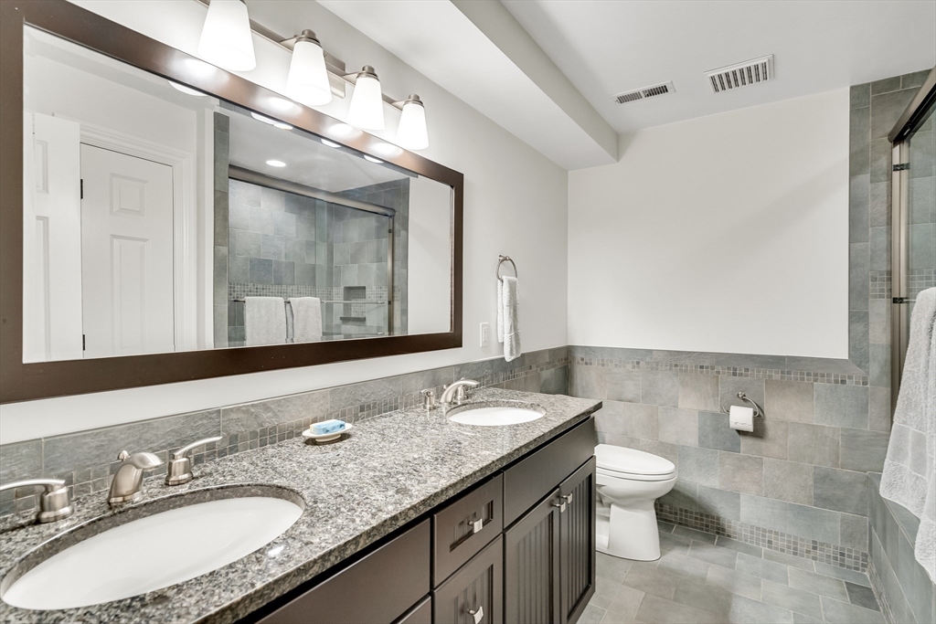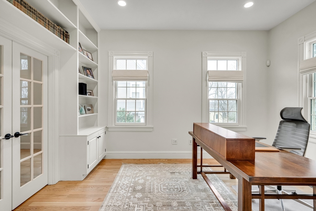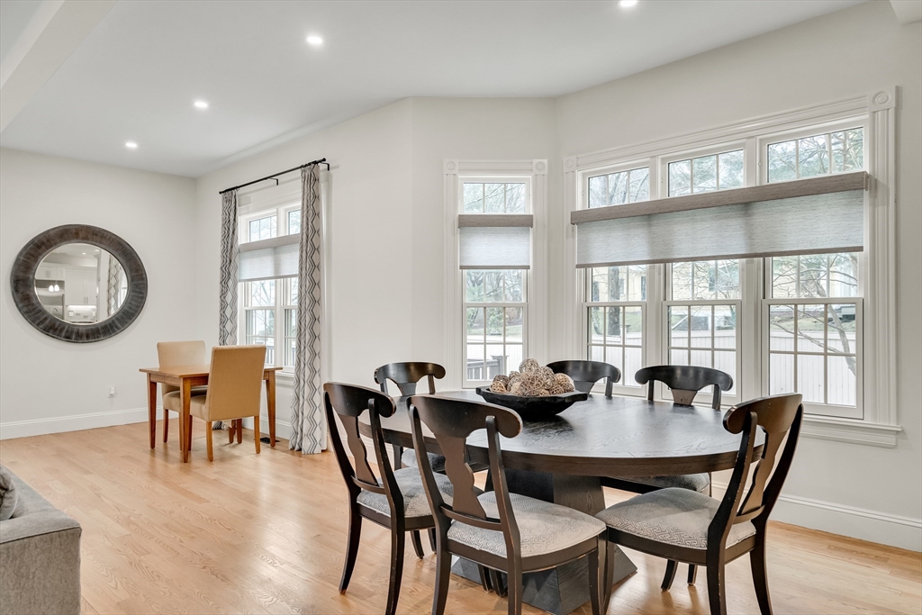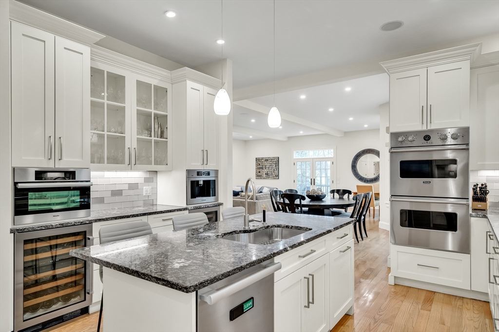 Spacious young West Newton Hill Colonial offering over 5,250 sq ft of living space on a 15,000+ sq ft lot. This home blends classic design with thoughtful updates and has been meticulously maintained, including a renovated kitchen, newer roof, heating and HVAC, Pella windows, and freshly refinished hardwood floors. The main level features a sun-filled family room with fireplace and access to a deck overlooking a large, level, fenced yard, along with a formal dining room, living room, home office, and half bath.The second floor includes a generous primary suite with vaulted ceiling, fireplace, and two walk-in closets, plus three additional bedrooms, one en suite, a full hall bath, and laundry. The third floor boasts a bedroom, full bath, and a spacious bonus room or additional bedroom. The finished lower level offers a mirrored gym and a room with exterior access and full bath and a custom built-in bench and a two-car garage. Close to West Newton Square, commuter rail, and major routes.
