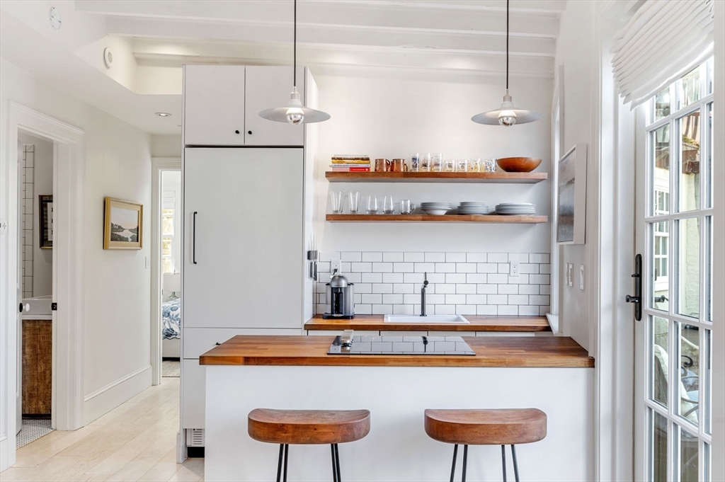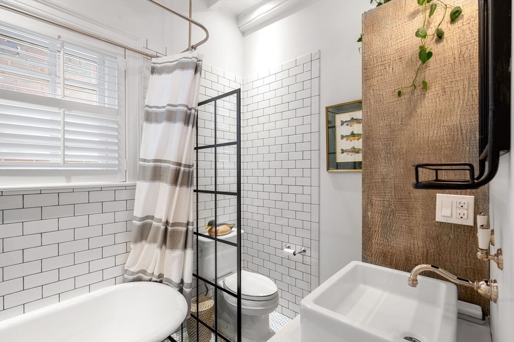 Stunning and tastefully renovated, this sunny, oversized one bedroom w/ central air and a balcony is the perfect Beacon Hill condo! Ideal Flat of the Hill location close to shopping, some of the city's newest restaurants, the Esplanade, public transit and all that the Hill has to offer. Located on the 4th floor and beaming with bright, all-day sun, this unit features an open concept layout, beautiful finishes, hardwood flooring, 8 windows & perks including in-unit laundry & AC. The kitchen features custom tile, wooden countertops and notable appliances. The inviting living/dining room has a fireplace, beautiful white-washed wood flooring, built-ins and glimpses of the Charles River. The terrace spans the length of the living/dining/kitchen and overlooks West Hill Place with West facing sunset views. The stylish bathroom has an attractive glass divider, claw foot tub and subway tile detail. A bedroom with skylight is private and oversized, offering enough space for an office set-up.