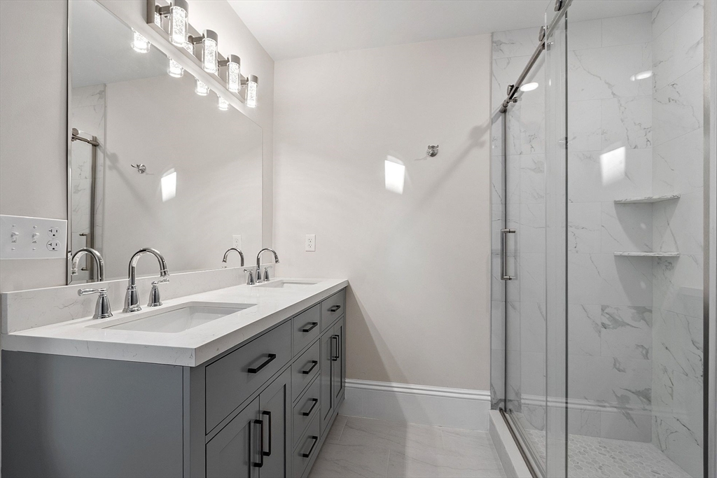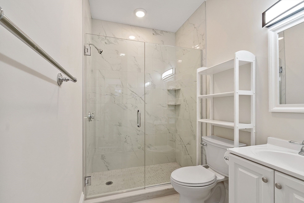 Centrally located and fully renovated, 17 Everett Ave presents a turnkey multi-family opportunity ideal for both investors and owner-occupants. Both units feature all-new electrical and plumbing, brand-new GE appliances, and beautifully refinished hardwood floors throughout. A newly constructed front porch adds valuable flex space to the second unit, perfect for a home office, sunroom, or additional living area. Each unit offers private entrances and in-unit laundry with brand-new machines. The property also includes the rare advantage of a three-car garage along with a private driveway, providing ample off-street parking. Delivered vacant, the home is ready for immediate occupancy or income potential. Unit 1 offers two bedrooms, one full bath, and a spacious single-level living layout, while Unit 2 spans the second and third floors and features three bedrooms, one full bath, and a walk-in closet.