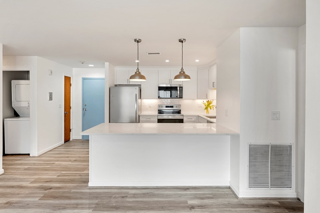 This newly renovated condo at Point of Pines is filled with beautiful natural light and features a brand-new kitchen with custom cabinetry, a spacious island, granite countertops, and stainless steel appliances. The open floor plan flows seamlessly to a private balcony, perfect for relaxing or entertaining. The condo offers two bedrooms and two full bathrooms, both tastefully renovated with new vanities and modern fixtures. Additional highlights include new wood flooring throughout, in-unit laundry, and a private storage unit. The building is equipped with security cameras around the building and the unit includes one assigned covered garage parking space along with an additional parking spot. Enjoy the convenience of living directly across the street from Revere Beach, with easy access to the sand and ocean. With one of the lowest HOA fees on revere beach, this is a rare opportunity to embrace coastal living and wake up to the sound of the ocean.