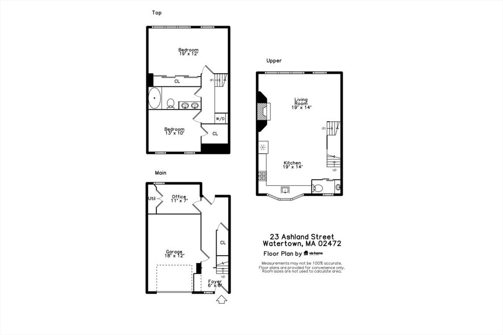 Lovely 2 bedroom townhouse with 2 parking spaces in fantastic location in Watertown. The entry level features a large foyer, a bonus room (perfect for a study) and direct access to a spacious 1 car garage. The second floor is an open concept. There is a large living room with a fire place, a dining area, a modern kitchen and a modern half bath with a trendy barn door. The two bedrooms are located on the upper level. Each has ample closet space. There is also a fully renovated tile bathroom, and a washer/dryer. Additional features include gleaming hardwood floors throughout, central air, modern light fixtures, and a large bay window. The back has a private fenced patio and garden. Condo comes with 2 parking spaces!! Professionally managed association. Conveniently located on the Cambridge line. Condo is only 1 block away from the bus to Harvard Square. Close to Charles River trails, supermarkets, restaurants, and Arsenal Yards.
