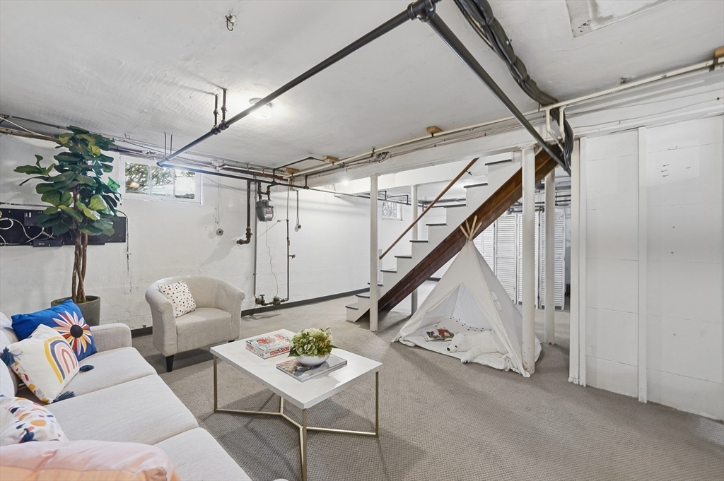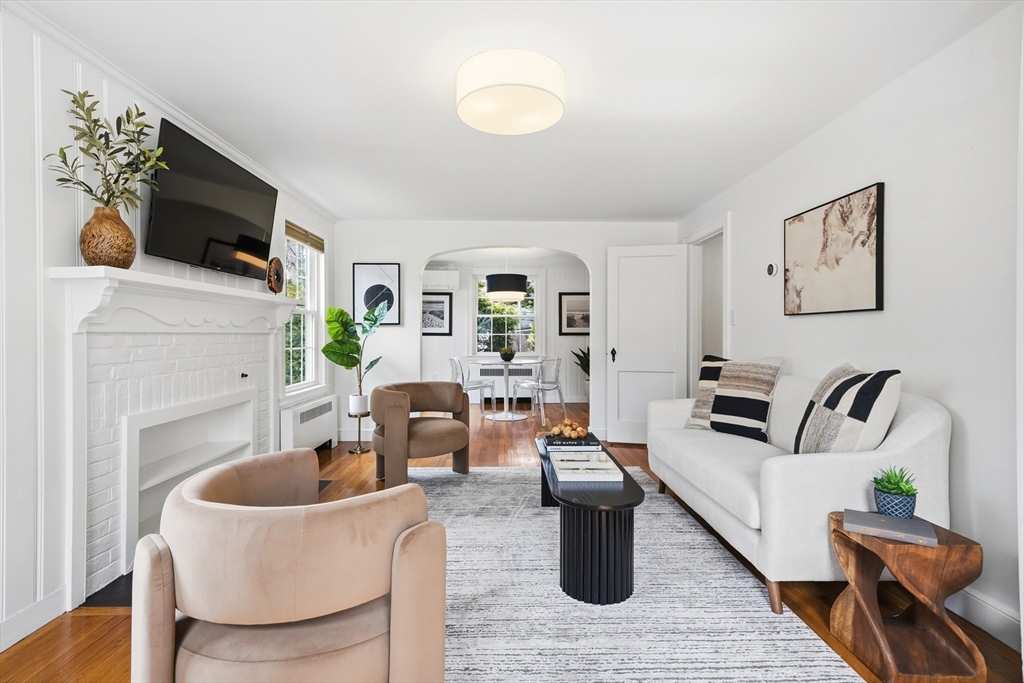 Nestled on a quiet, tree-lined street near the Fells, this charming Cape with classic dormers blends timeless character with thoughtful updates. The sun-filled kitchen features granite countertops and overlooks a peaceful backyard, while the breezeway between the one-car garage and kitchen offers an ideal mudroom or expansion potential. A beautifully updated first-floor bath includes radiant heated floors and a spacious glass-enclosed shower. A flexible first-floor bedroom or office adds versatility, and the fireplaced living and dining rooms provide inviting spaces for everyday living and entertaining. Custom built-ins enhance both charm and function. Upstairs are two generously sized front-to-back bedrooms and a full bath with radiant heat. The lower level offers a finished fourth bedroom with separate entrance, laundry, and a bonus room ideal for a gym, playroom, or office. Convenient to the Fells, the Muraco School, shops, restaurants, and major commuter routes.