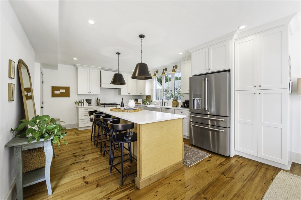 Tucked away on a quaint street in the highly sought-after North End of Newburyport, this completely renovated attached single fam offers the perfect blend of charm, character, & organic modern updates. Completely remodeled throughout, the 1st flr was taken down to the studs & thoughtfully redesigned w/ wide pine HW flrs, updated lighting, a brand new high-end kitchen w/ premium finishes, & added 1/2 BA. Step outside to enjoy updated hardscaping incl a brick patio & peastone driveway, ideal for entertaining or everyday ease.Upstairs, refinished wide pine HW flrs continue through the 2nd flr, featuring a fully renovated full BA, oversized primary BR, & 2 add’l BRs. The finished 3rd flr offers great versatility w/ vaulted ceilings, exposed beams, & added laundry—perfect for bonus space, office, or retreat. All set within one of Newburyport’s most vibrant communities, w/ easy access to local trails, marinas, restaurants, shopping, & everything that makes coastal living here so desirable.