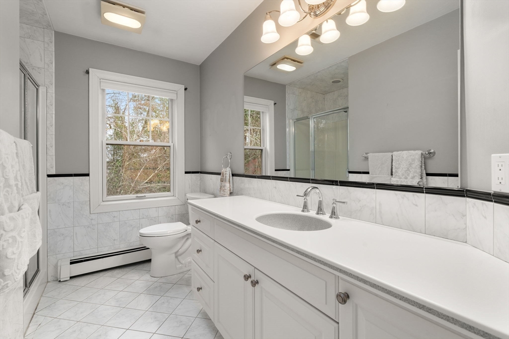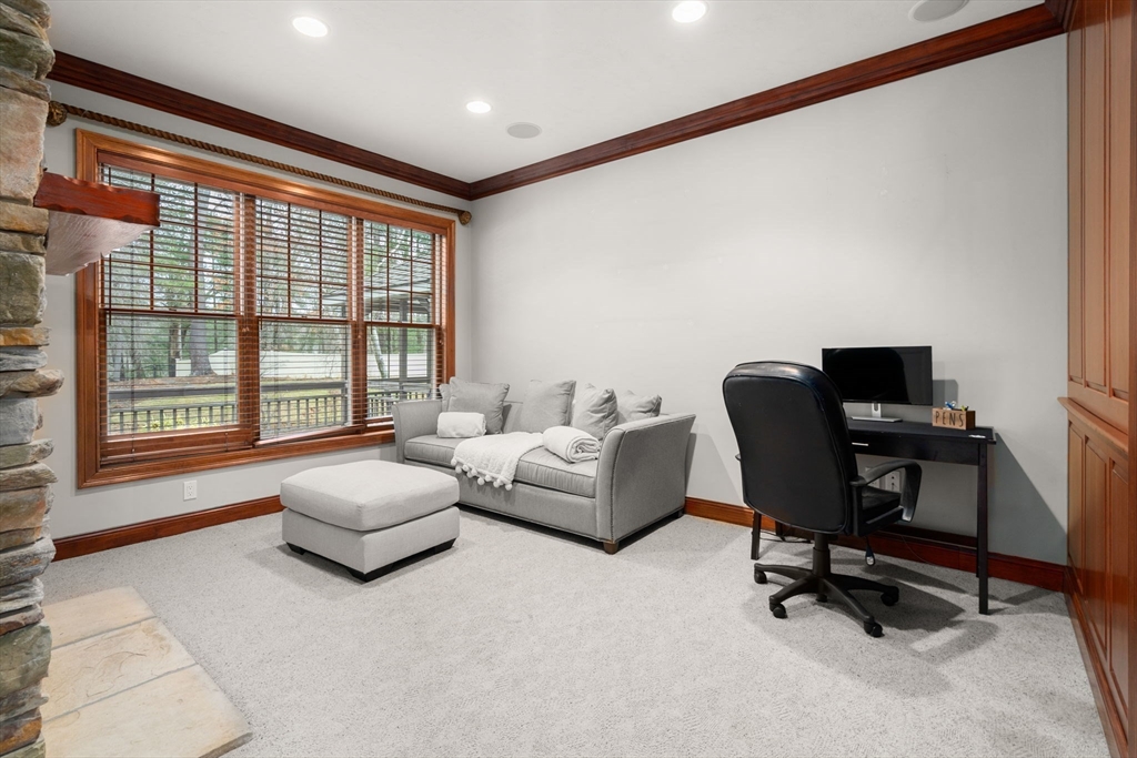 Set off the road this beautiful move in ready home offers many opportunities. Direct access to Pettes Pond is a rare asset to enjoy all year long. Views from all floors of living space create a tranquil private setting. The updated home boasts two story ceilings, hardwoods, floor to ceiling windows and two offices. The newer kitchen has a large island, plenty of counter space and separate breakfast area. The family room with stone fireplace is open from the kitchen and leads to the back deck. Separate dining room allows for entertaining with a comfortable flow. There is a front office and den. The second floor is host to a second office and three bedrooms including the primary suite with a small deck to watch those sunrises, walkin closet and large bath. Full walk out lower level with water access also boasts more entertaining space with a seated bar, rec room, addtl bedroom and full bath. Convenient Cul de sac on the Westwood line has space both inside and out to enjoy all year long.