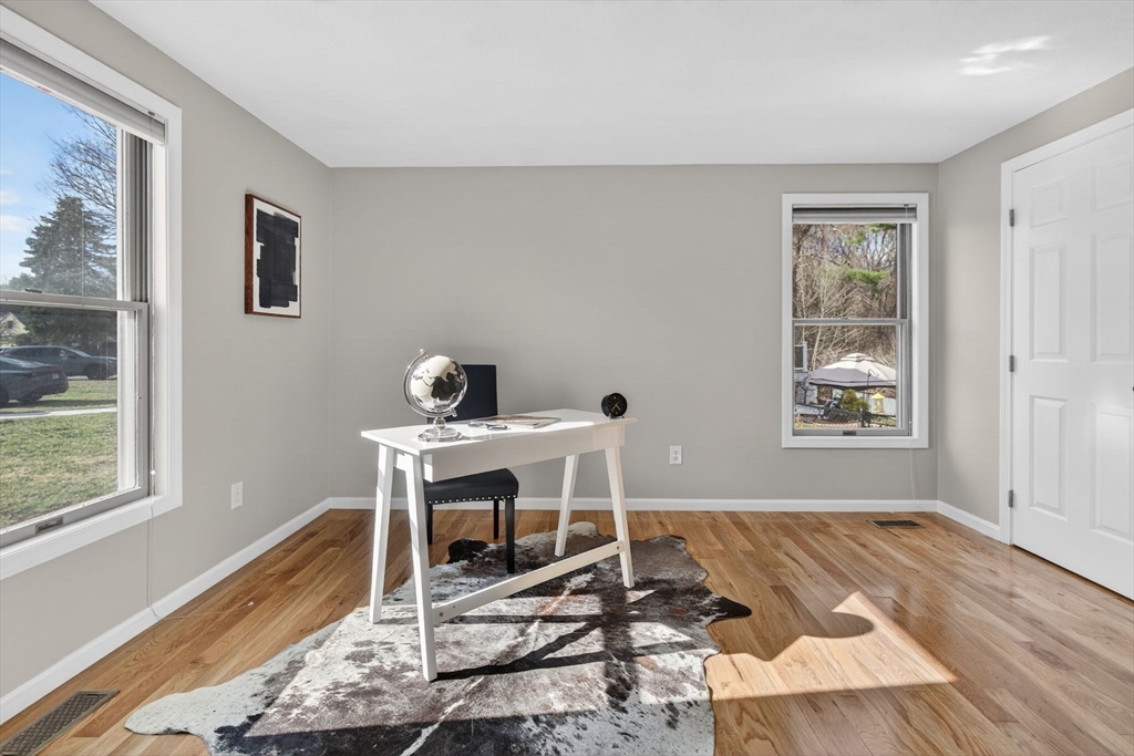 Here's your chance to own in one of Boxford's most coveted Tri-Town neighborhoods! Discover 16 Andrews Farm Road - This isn't just a home; it's the foundation for your dream life in an amazing community. The first thing you'll notice when you step inside is the gleaming BRAND NEW hardwood floors. The 1st floor open-concept foyer/living/dining room area provide the perfect flow for hosting, while other spaces offer traditional, peaceful retreats. Enjoy the versatility of a first floor bedroom with a walk-in closet, an expansive bonus room in the lower level, the outdoor back deck & more. Recent upgrades include new vinyl siding (24), Interior Paint, Bathroom Vanities, Hardwood Flooring, Painted Deck & Whole Home Water Softener System (26). Featuring 3 Beds/2 Full baths with a ton of storage, this home is not only in a prime location known for its strong community and top-tier schools, its move-in ready! Seize this incredible opportunity to plant roots & thrive in Boxford!