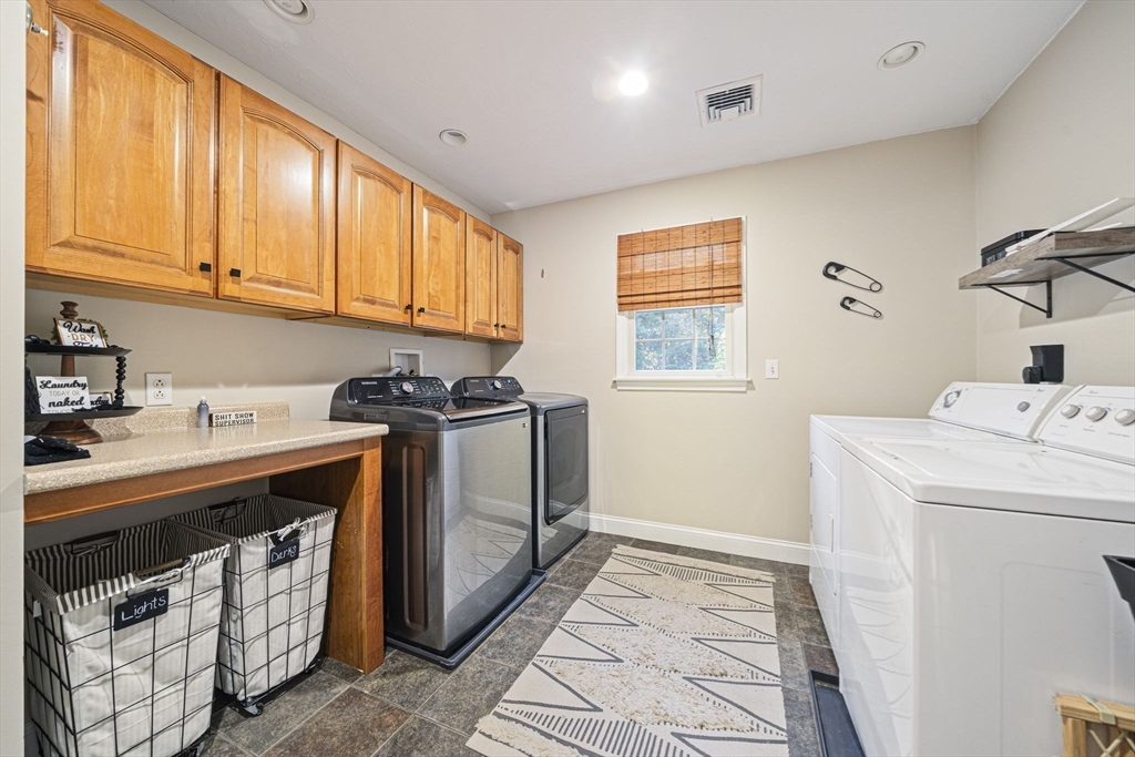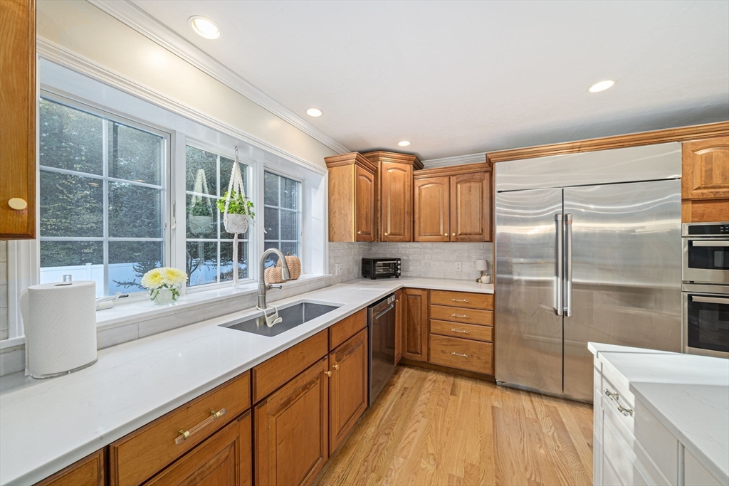 Tucked away on a cul-de-sac in a desirable Abington neighborhood, this custom-built Colonial offers the space, comfort and layout today’s buyers are looking for. With over 4,200 sq ft of living space plus a finished lower level, there’s room for everyone to live, work and unwind. The heart of the home is the oversized kitchen with a large center island and new GE Café appliances, opening to the deck, perfect for everyday living and entertaining. A dramatic family room with cathedral ceilings and a floor-to-ceiling fireplace creates a warm, inviting space, while French doors add charm to the dining room. Upstairs, the primary suite feels like a retreat with its own sitting area and spacious bath. The finished lower level offers even more flexibility with a wet bar, gym and additional living space. Outside, enjoy a private backyard, composite deck, patio, plus a heated garage, ideal for year-round comfort and storage. Updates include heating (2026) and central air (2025).