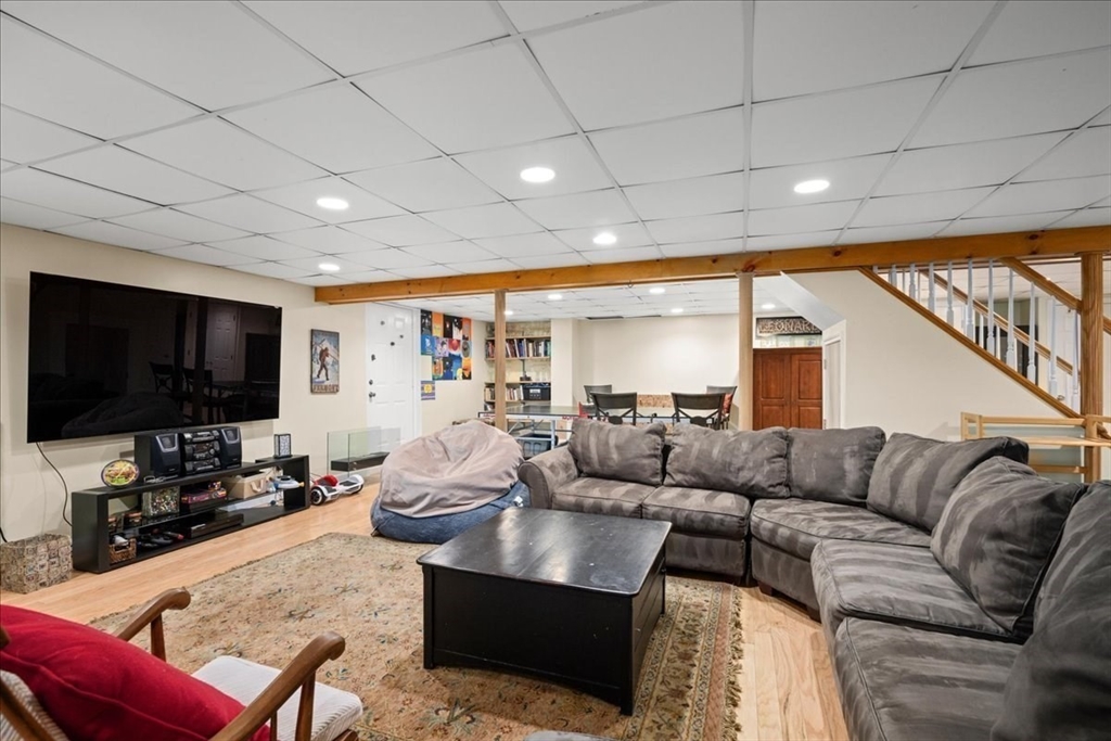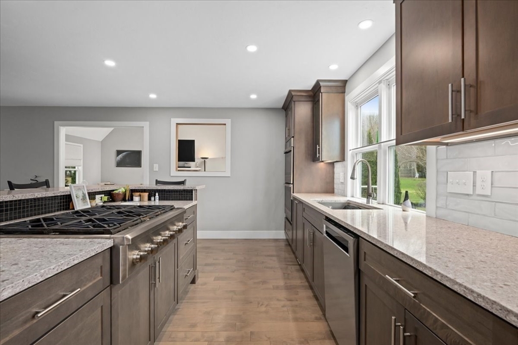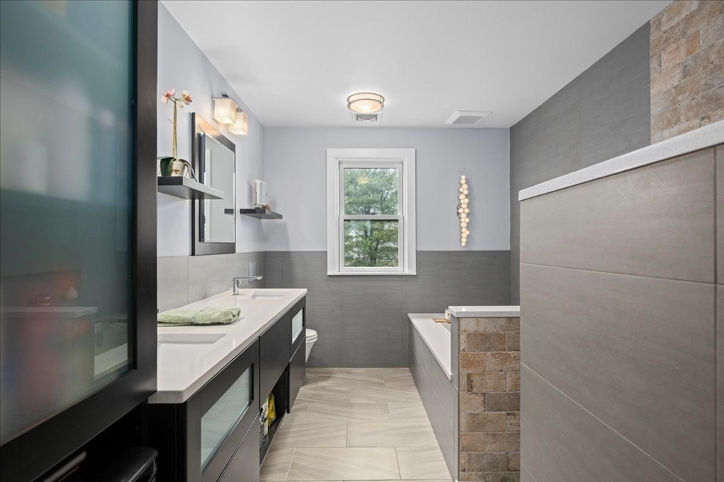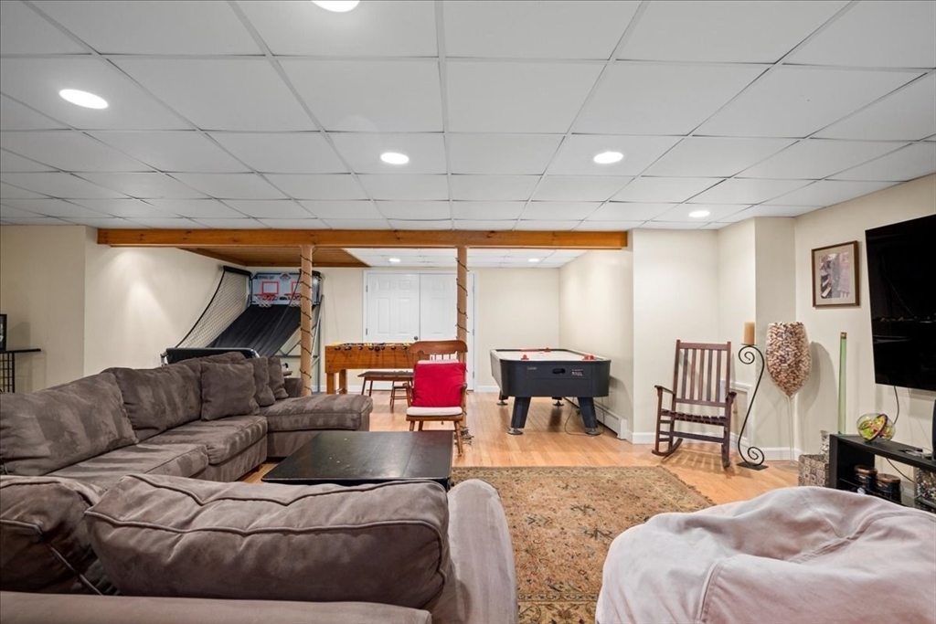 Impeccably maintained and extensively updated, this exceptional home is set in a desirable neighborhood and offers space for everyone. Thoughtful updates include both cosmetic upgrades and mechanical updates. The stunning, renovated kitchen features top-of-the-line finishes, including custom cabinetry, quartz counters, double ovens, gas cooktop, and spacious walk-in pantry, along with a built-in desk and bar area with wine refrigerator. The primary suite serves as a private retreat, complete with a floating vanity, soaking tub, and custom tiled walk-in shower. The second level also includes two generously sized bedrooms and a full bathroom, while the third level offers two additional large bedrooms. Outdoor living is equally impressive with a custom patio with built-in fire pit, basketball court with dual hoops, and an expanded composite deck. Major updates include windows, siding, roof, furnace, generator--all offering peace of mind. Luxury, comfort, and space all in one home!