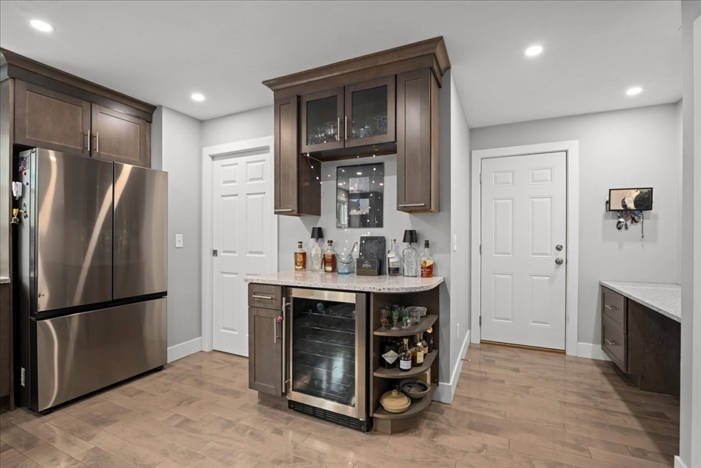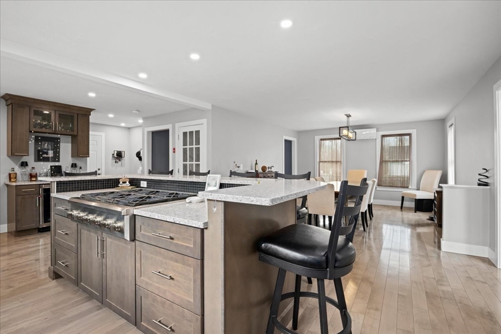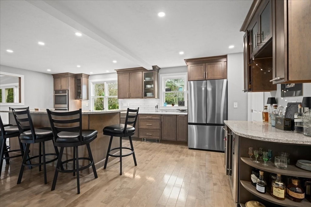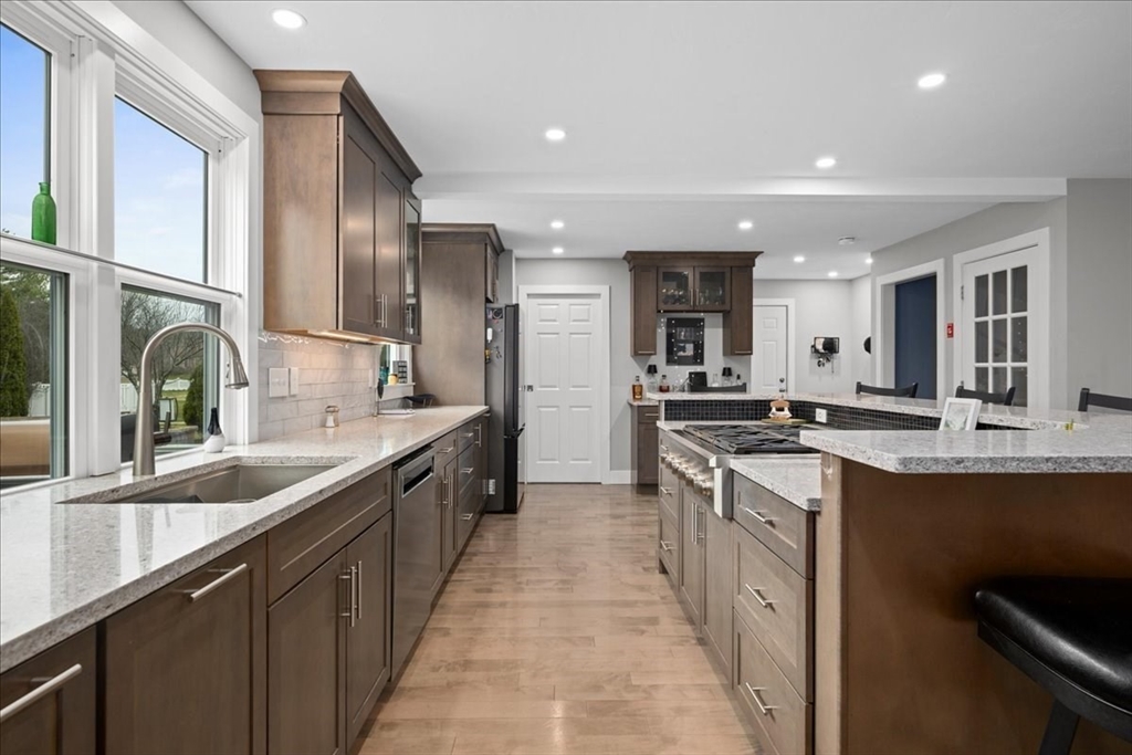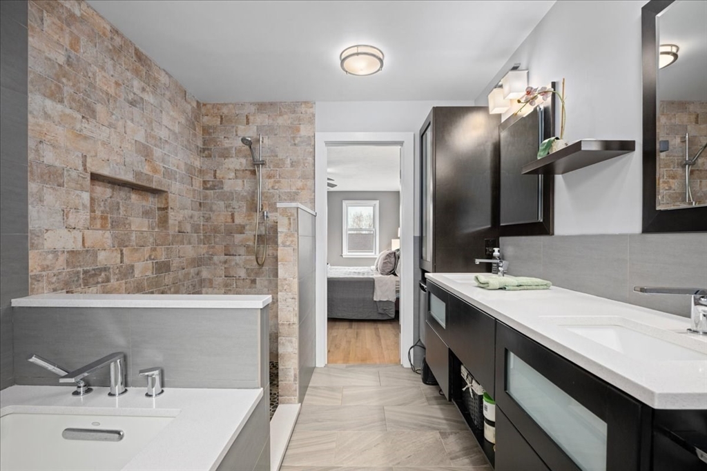 Impeccably maintained and extensively updated, this exceptional home is set in a desirable neighborhood and offers space for everyone. Thoughtful updates include both cosmetic upgrades and mechanical updates. The stunning, renovated kitchen features top-of-the-line finishes, including custom cabinetry, quartz counters, double ovens, gas cooktop, and spacious walk-in pantry, along with a built-in desk and bar area with wine refrigerator. The primary suite serves as a private retreat, complete with a floating vanity, soaking tub, and custom tiled walk-in shower. The second level also includes two generously sized bedrooms and a full bathroom, while the third level offers two additional large bedrooms. Outdoor living is equally impressive with a custom patio with built-in fire pit, basketball court with dual hoops, and an expanded composite deck. Major updates include windows, siding, roof, furnace, generator--all offering peace of mind. Luxury, comfort, and space all in one home!