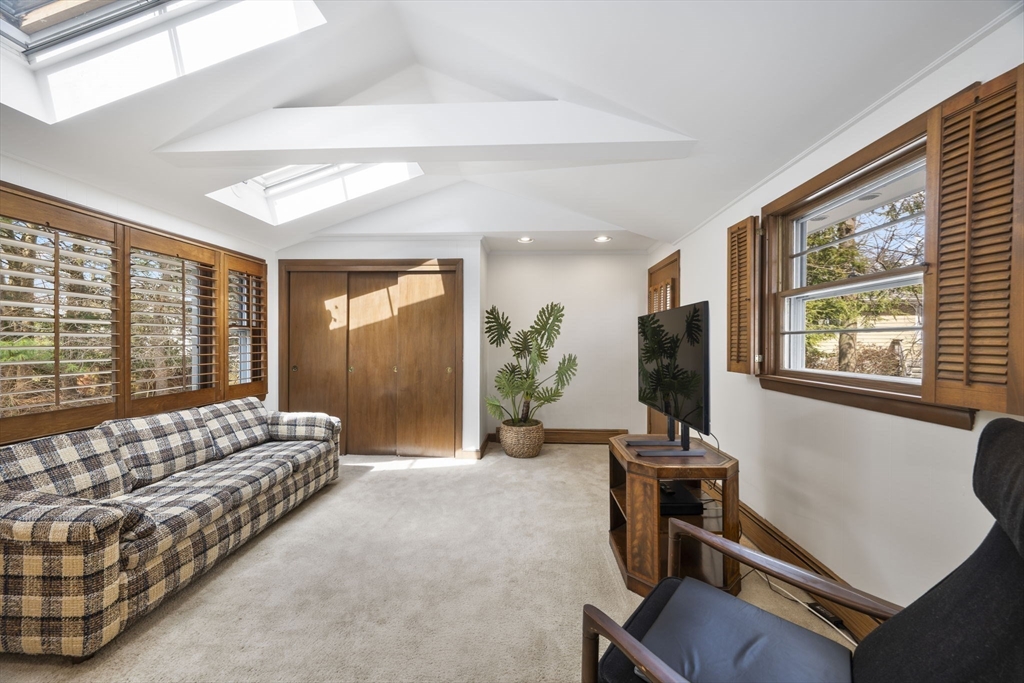 Rare find in coveted neighborhood! Located 3 blocks from Lexington High School and within easy walking distance to town center, this corner-lot 4-bedroom, 3.5-bath home offers easy living across multiple levels. With abundant natural light throughout, the main floor features an eat-in kitchen with granite countertops and gas stove, dining room, living room with fireplace, and family room – ideal for everyday living and entertaining. Upstairs includes a cathedral-ceilinged master suite, a second en-suite bedroom, and two additional bedrooms sharing a full bath. The lower levels expand the home’s versatility with a spacious recreation room with cozy fireplace, bonus room or office, half-bath, and a laundry area with direct access to the backyard. A screened-in porch, two-car garage, and ample storage complete this inviting home, set on more than a third of an acre.