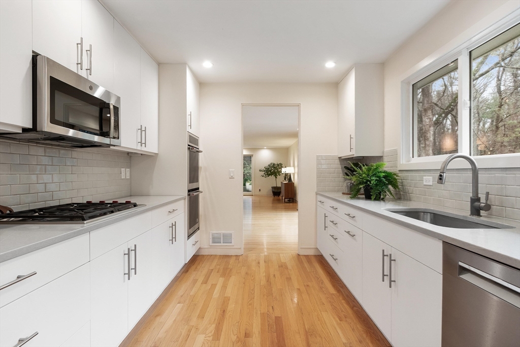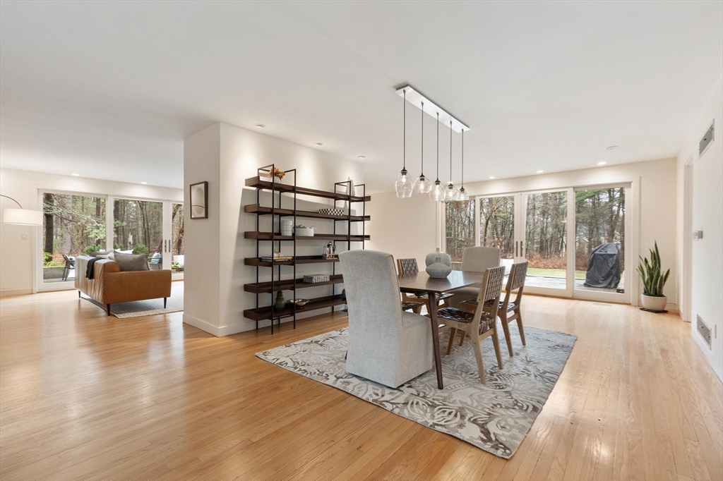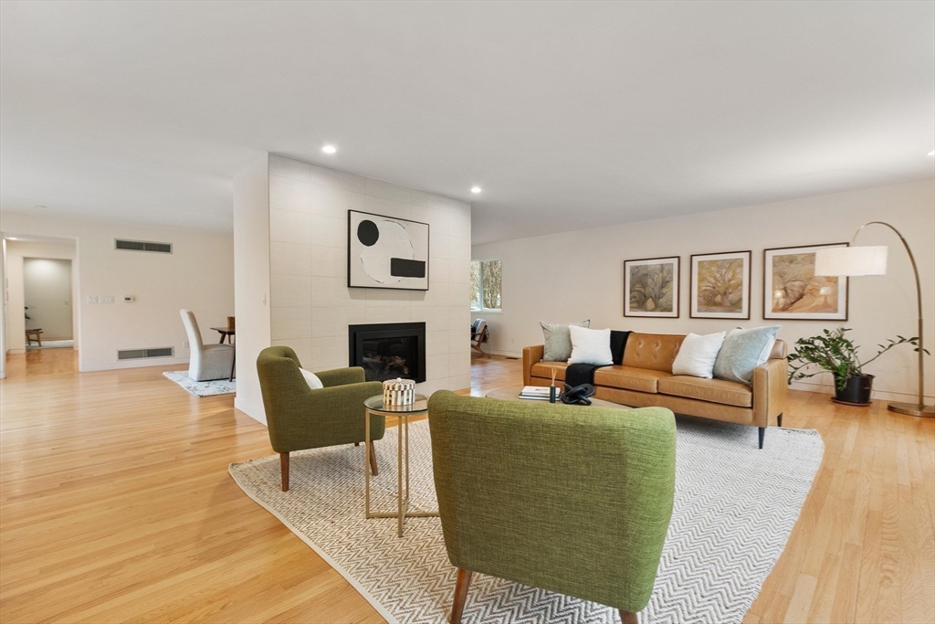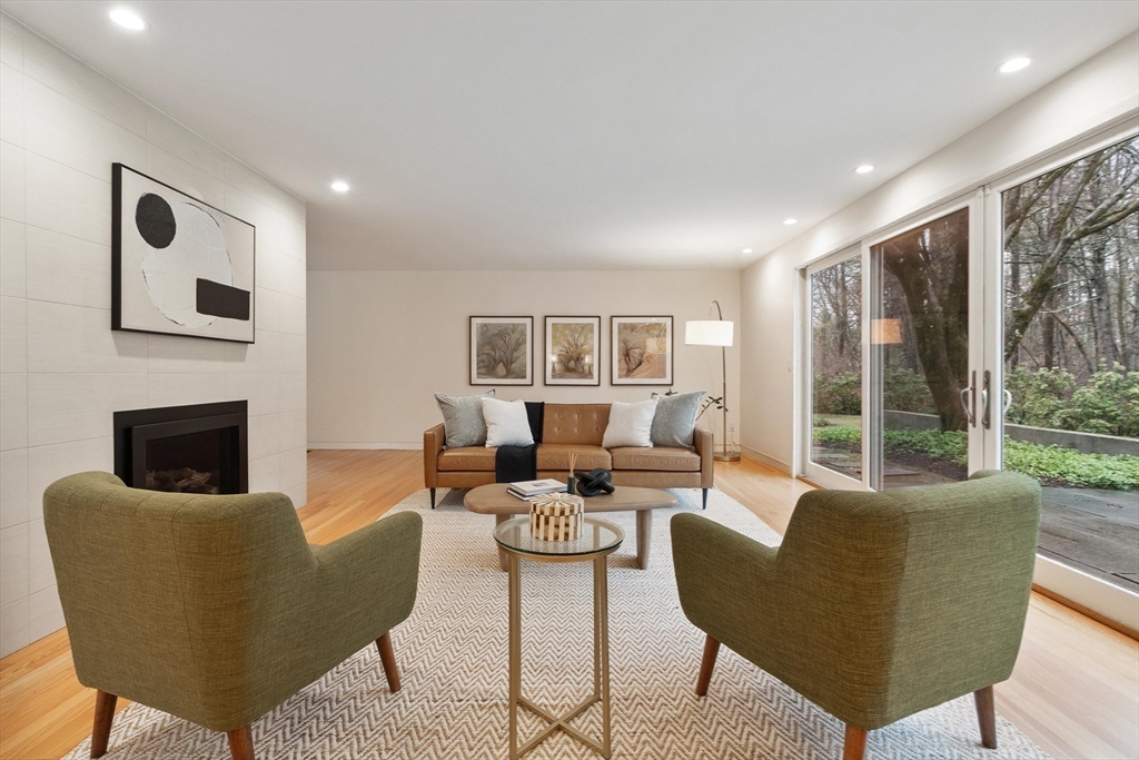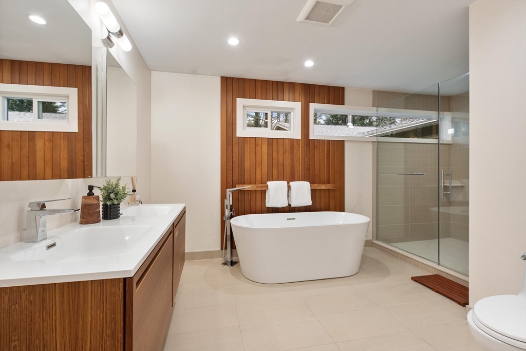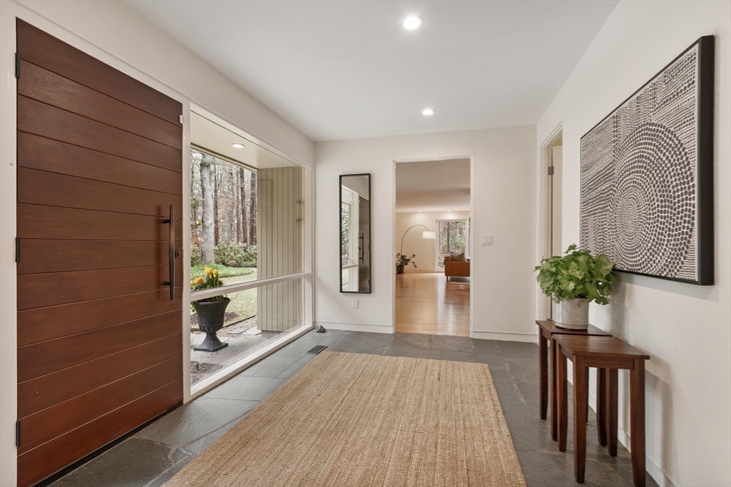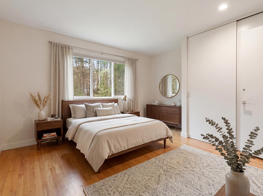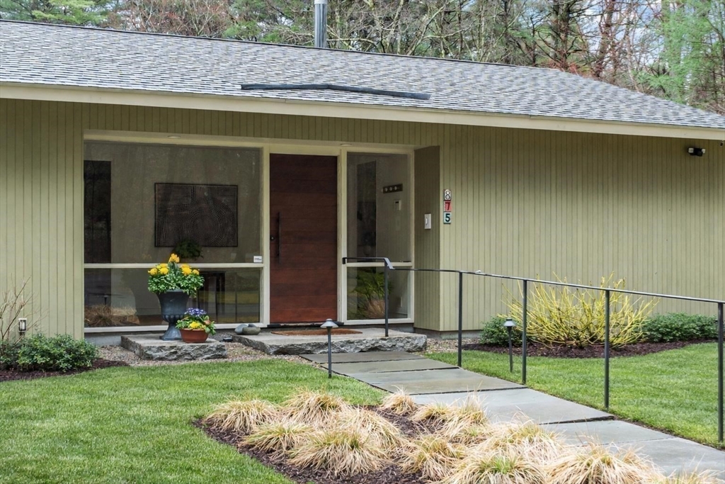 Thoughtfully reimagined and beautifully renovated, this 5-bedroom 3.5 bath Mid-Century Modern home offers a rare blend of architectural pedigree & contemporary light -filled comfort. Originally the personal home of an acclaimed architect, every detail has been carefully considered—from expansive Pella windows & doors to fully updated kitchen & baths, increased insulation, and systems. Expansive living spaces & high-end appliances in this flexible floor plan, offering 5 large bedrooms, including a gorgeous primary suite w/ a luxurious bath, a lg walk-in shower & double sink vanity, w/ sliding glass doors to the outdoor oasis & deck. Stunning, curated grounds inspired by Japanese design principles. Sunlight pours in from every angle, creating a sense of calm, warmth, and quiet sophistication. Access the walking trails to Willard Elementary near-by, and hop on the Bruce Freeman Rail trail leading right into West Concord Village. A true sanctuary—private, refined, and distinctly Concord.