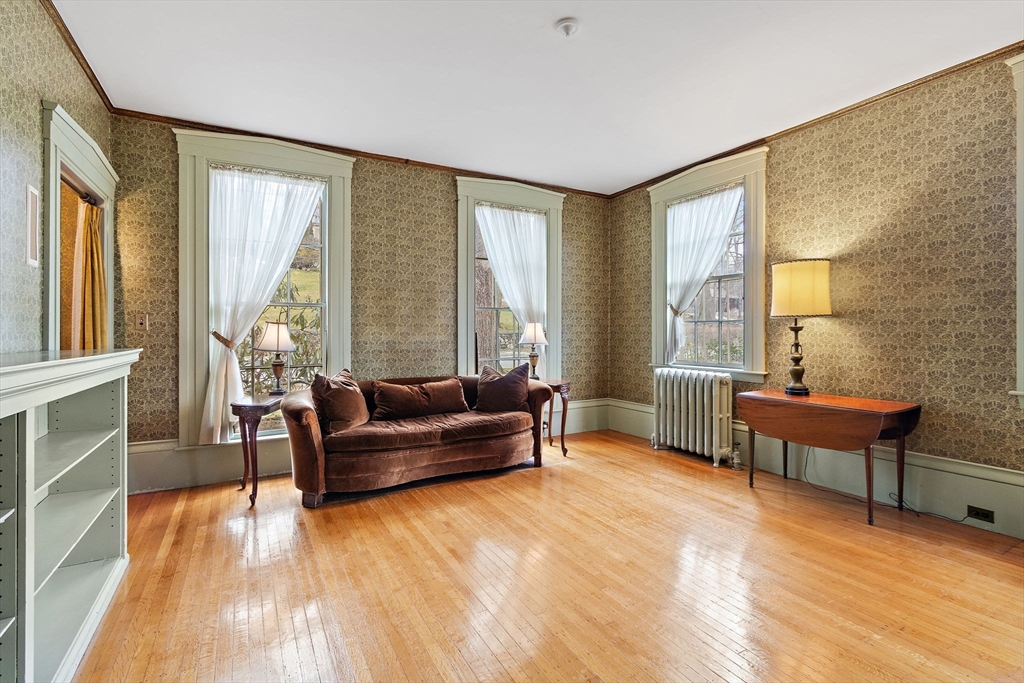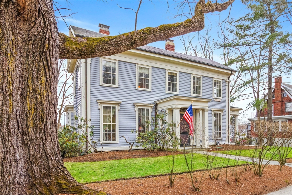 Welcome to the Joseph Yates House, c.1846. This gracious Federal colonial boasts good bones and timeless charm, featuring high ceilings, elegant moldings (some with gold leaf), and skinny and wide pine floors. Floor-to-ceiling front windows fill the space with natural light, and leaded glass around the front door adds a unique touch. A Jack and Jill staircase, covered porch, and deck above the garage enhance the home’s character. Fireplaces in the living room, dining room, and bedroom add warmth and charm. Additional amenities include first-floor laundry, central air, and a two-car garage with storage below. First showings at Open House on Friday 12-1:30 See you there!