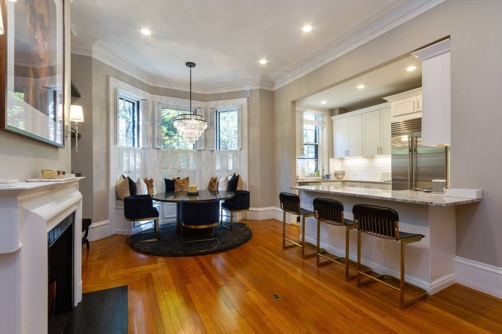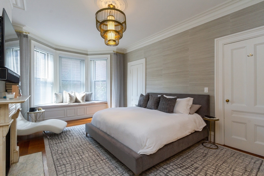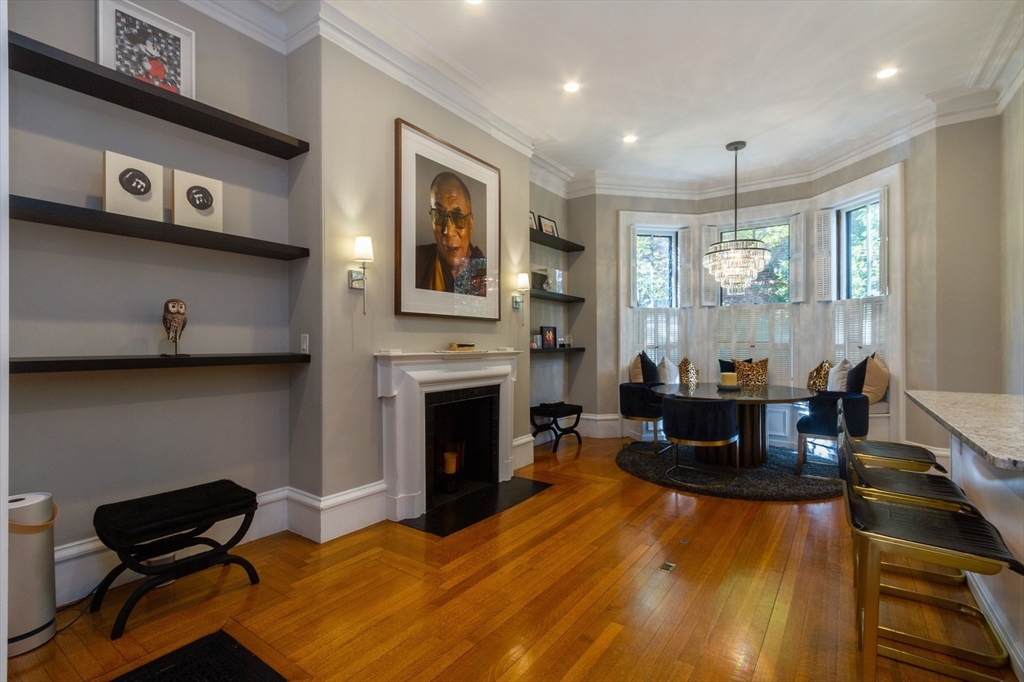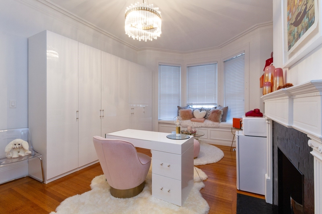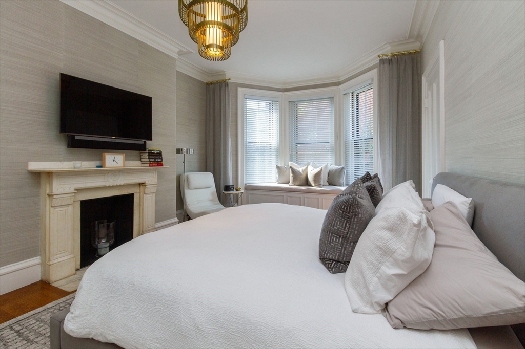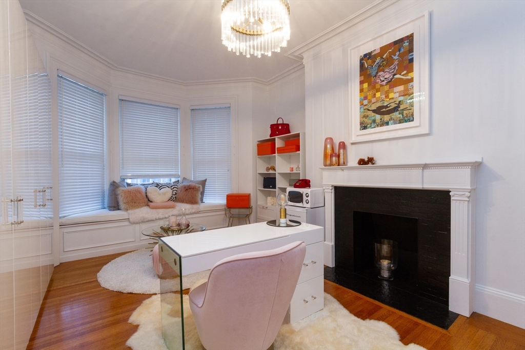 Meticulously renovated Back Bay townhome featuring beautifully appointed interiors and oversized private patio. Just one block from Newbury Street’s premier shopping and dining, this single-family residence offers 5+ bedrooms and 3.5 baths over 4 levels, including a garden level in-law suite with modern full kitchen ideal for au pair or guest use. The formal living and dining rooms feature elegant fireplaces and share the parlor level with gourmet eat-in kitchen with stainless appliances, Sub Zero fridge and granite countertops. The 2nd floor features the master suite with walk-in dressing room and a family room with a fireplace. 2 generous bedrooms on the 3rd floor and an updated bathroom. Additional features of this beautifully styled home include multiple home offices, laundry room in both the basement and 2nd floor. Architectural details, high ceilings, high-quality finishes add deep character to this timeless property. 2 Car Tandem Parking Space. Avail 8/18 or sooner.