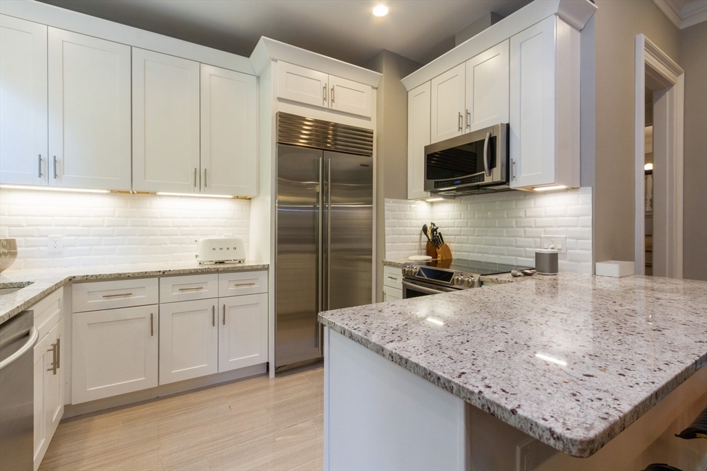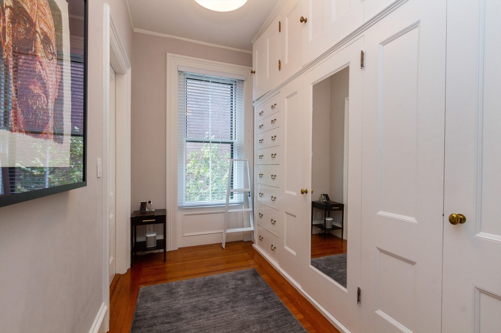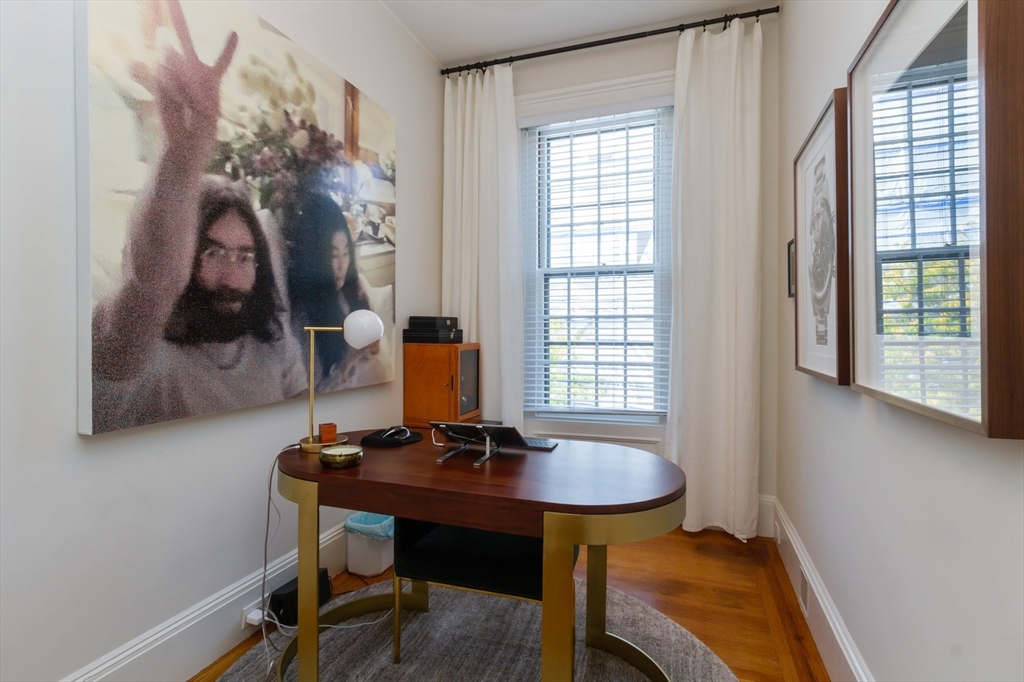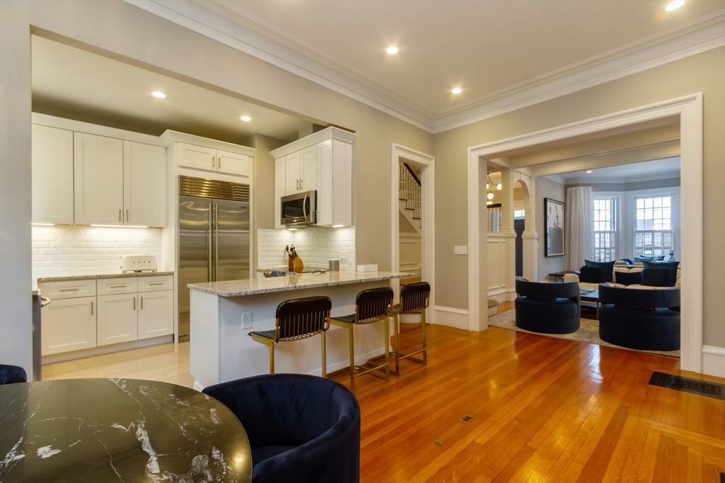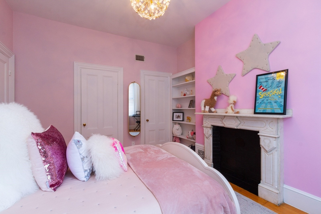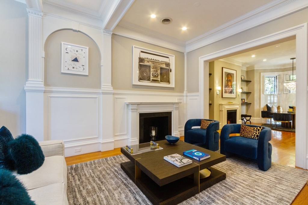 Meticulously renovated Back Bay townhome featuring beautifully appointed interiors and oversized private patio. Just one block from Newbury Street’s premier shopping and dining, this single-family residence offers 5+ bedrooms and 3.5 baths over 4 levels, including a garden level in-law suite with modern full kitchen ideal for au pair or guest use. The formal living and dining rooms feature elegant fireplaces and share the parlor level with gourmet eat-in kitchen with stainless appliances, Sub Zero fridge and granite countertops. The 2nd floor features the master suite with walk-in dressing room and a family room with a fireplace. 2 generous bedrooms on the 3rd floor and an updated bathroom. Additional features of this beautifully styled home include multiple home offices, laundry room in both the basement and 2nd floor. Architectural details, high ceilings, high-quality finishes add deep character to this timeless property. 2 Car Tandem Parking Space. Avail 8/18 or sooner.