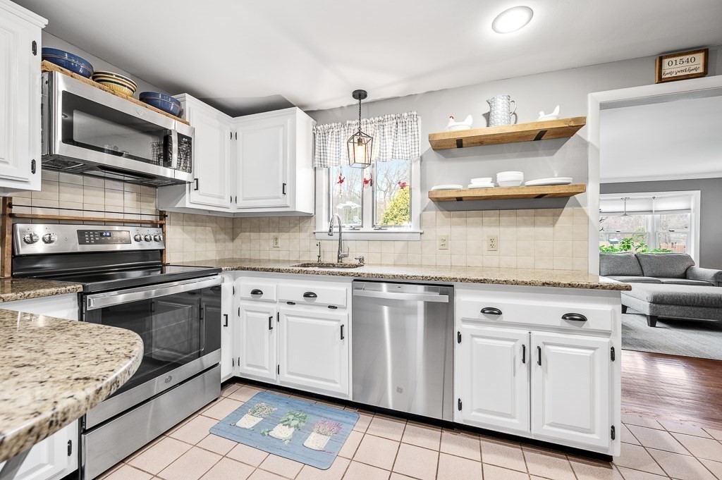 **HIGHEST & BEST OFFERS DUE MON. 4/13 BY 7PM!** Pease allow 24 hrs for response. Character, charm, & a little bit of magic, this is the kind of house that instantly feels like home! Step inside to a warm & inviting living & dining area combo, where a cozy fireplace & gleaming hardwood floors create an effortless flow. A charming tiled kitchen offers granite countertops & a functional layout, while the sun-filled family room features a beautiful bay window w/ abundant natural light. Main level includes a fresh full bath & 2 bedrooms, highlighted by a spacious primary suite w/ bay window & generous closet. An add’l bedroom adds flexibility for guests / home office.Downstairs, enjoy a versatile lower level w/ pellet stove & 2nd full bath.Notable updates include a new roof (2025), new electrical panel (2024) & a garage plug-in for a whole-house portable generator.A rear deck overlooks the spacious yard & a 1-car garage for convenience. !