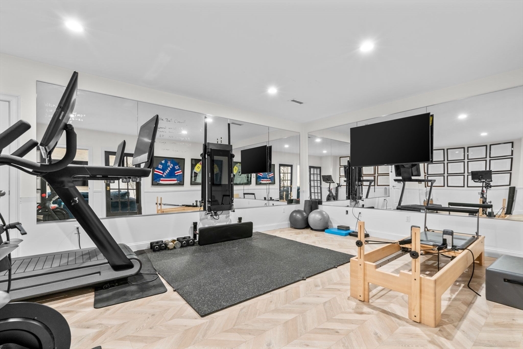 Must see this incredible renovation - no need to update or change a thing, it’s all been done for you! A warm & open flow, with attractive lighting, fabulous flooring, and elaborate woodwork captures the vibe of casual elegance. The functional layout allows for first floor primary with gorgeous bathroom (steam shower!) AND private guest suite, plus a modern office and open living areas with fun details to enjoy. Walls of glass open to the backyard resort, complete with putting green and imported stone fireplace and outdoor kitchen/bar - flat grassy yard allows PRIVACY! The entertainer’s kitchen hosts a whitewashed modern hue with a La Cornue French range and hood, a walk-in pantry for extra storage, and a center island to gather around. The massive finished lower-level space has a large gym, fireplace family room, 2 bedrooms plus full AND half bathrooms, bar area and plenty of storage. New HVAC, full reverse osmosis water system and SO much more - Your Black Rock lifestyle starts now!