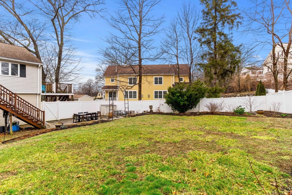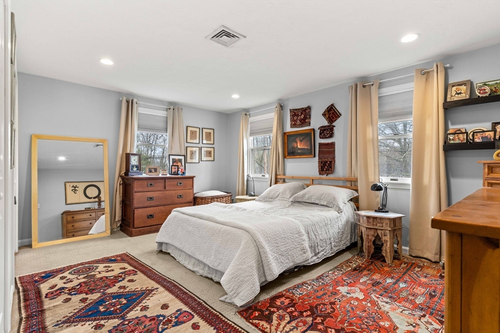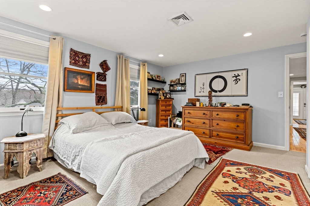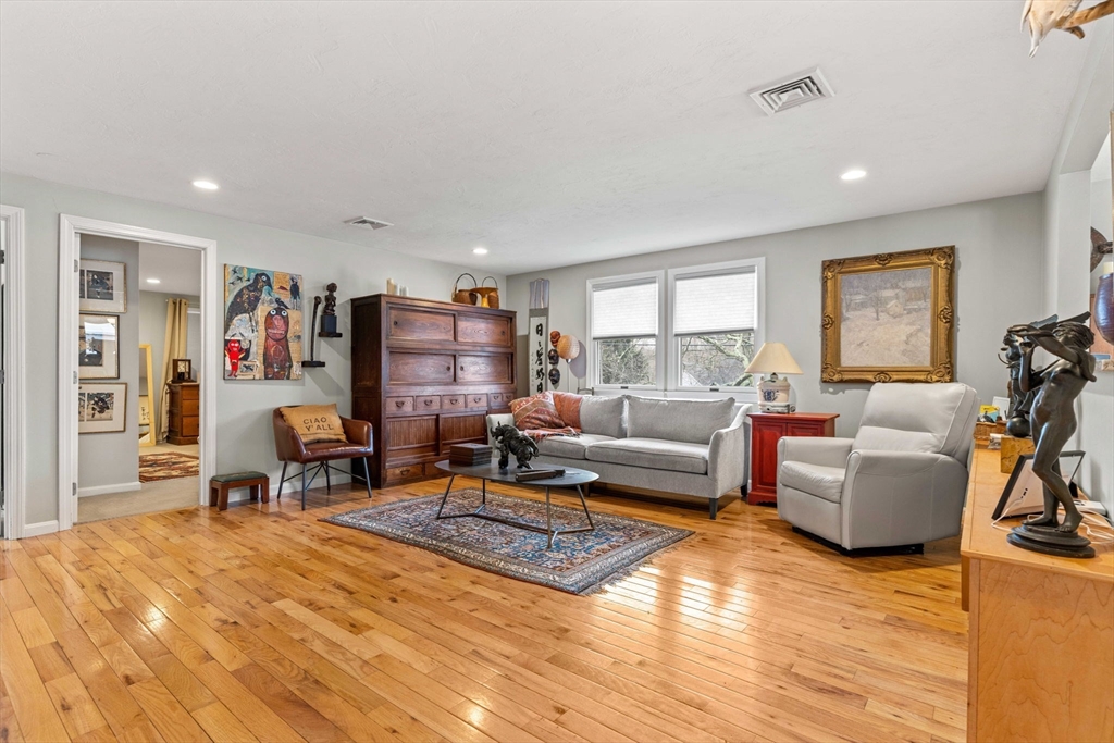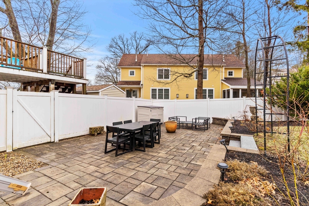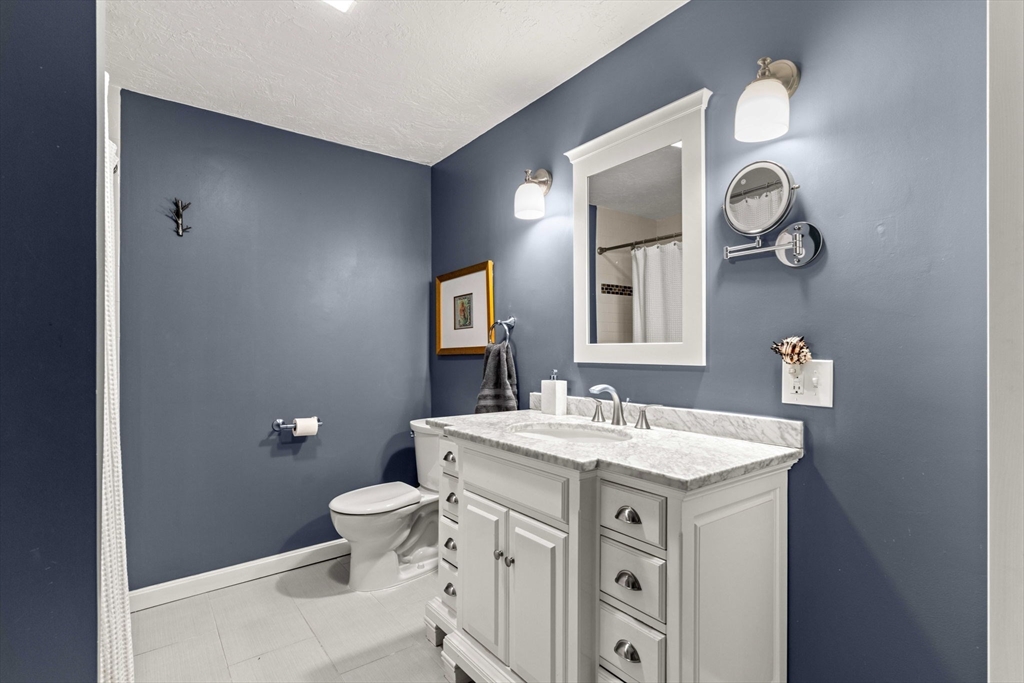 Experience refined living in this elegant second-level condominium, ideally situated just minutes from the vibrant waterfront, boutique shopping, and acclaimed dining of downtown Newburyport. This thoughtfully designed home features rich hardwood flooring, a sunlit living room with custom built-ins and paneled detail, and a sophisticated dining area perfect for entertaining. The kitchen is beautifully appointed with granite countertops, stainless steel appliances, and recessed lighting, blending style with everyday functionality. Two spacious bedrooms offer well sized closets and modern lighting, complemented by a full bath with tilework and a marble vanity. Additional highlights include in-unit laundry, ample storage, direct access to a private deck overlooking an enclosed yard and patio, and generous off-street parking. With easy access to major routes and nearby commuter options, this residence offers a seamless balance of luxury, location, and lifestyle.