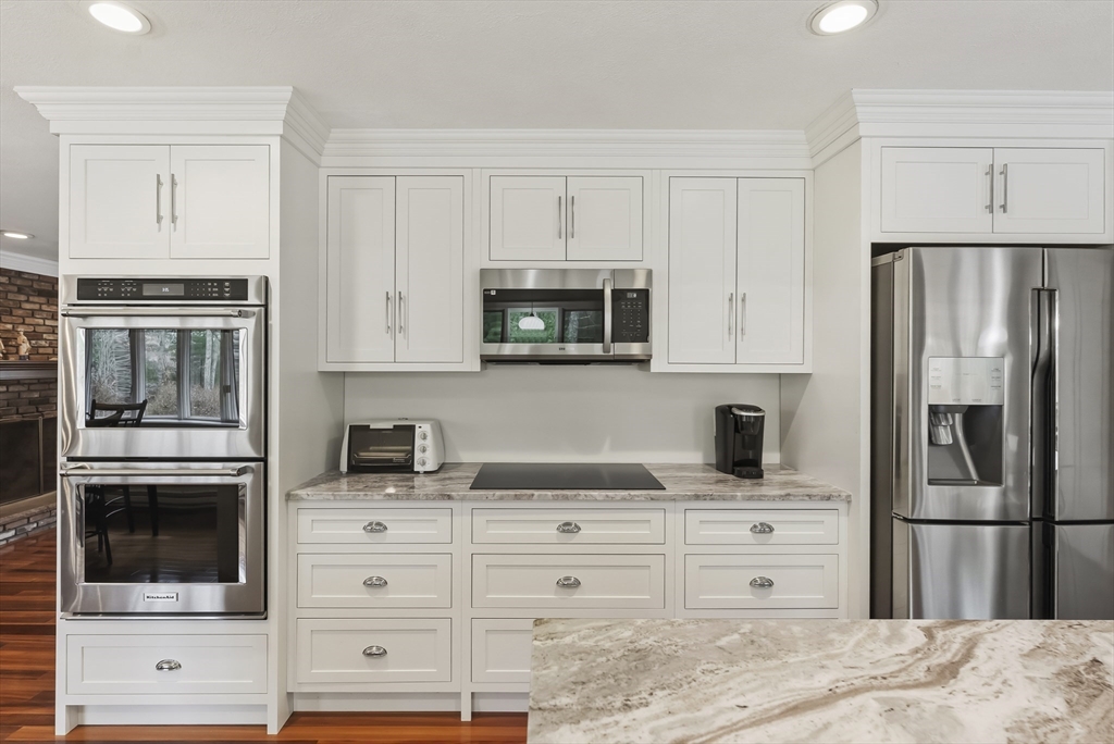 Welcome home to this warm and inviting ranch set on 1.9 wooded acres, blending cozy charm with thoughtful modern updates. The beautifully updated kitchen offers an island, granite counters, soft close frameless cabinetry, stainless appliances, double convection wall ovens, and convection range top. A spa inspired bath showcases a soaking tub, tiled walk in shower with rainfall head, marble flooring, and custom woodwork. Enjoy hard wood flooring throughout the home. Living room features a brick fireplace and a large bow window. Both bedrooms are generously sized. Recent upgrades include a new roof and a brand new 4 bedroom septic system. Relax outdoors on two covered porches. Take advantage of the brick patio, large storage shed, and spacious paved driveway. Minutes to golf, shopping, restaurants, downtown Plymouth, highway access, and more!