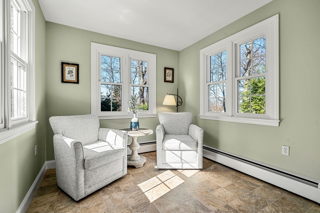 Located in Andover’s sought-after Johnson Acres neighborhood & minutes to downtown shops, dining & commuter rail, this delightful home offers 3 levels of effortless everyday living, abundant natural light & CHARM. The 1st floor features a timeless setting for gatherings: an inviting LR w/distinctive woodwork & fireplace, DR & kitchen w/a light filled sitting area. The sunrm adds coveted flexible space, garage access & seamlessly connects indoors & outdoors. The 2nd fl offers 3 bdrms & beautifully updated bath w/radiant floor. The finished walkout LL expands the living space w/a bonus rm, full bath & laundry rm, making this level as functional as it is versatile. This is the home for those who don't want the burden of a large yard to maintain, but want privacy & simplicity, featuring a backyard patio ideal for relaxing or entertaining, surrounded by lush greenery. End each day w/spectacular sunsets & enjoy a home that feels like a peaceful retreat woven right into the heart of Andover.