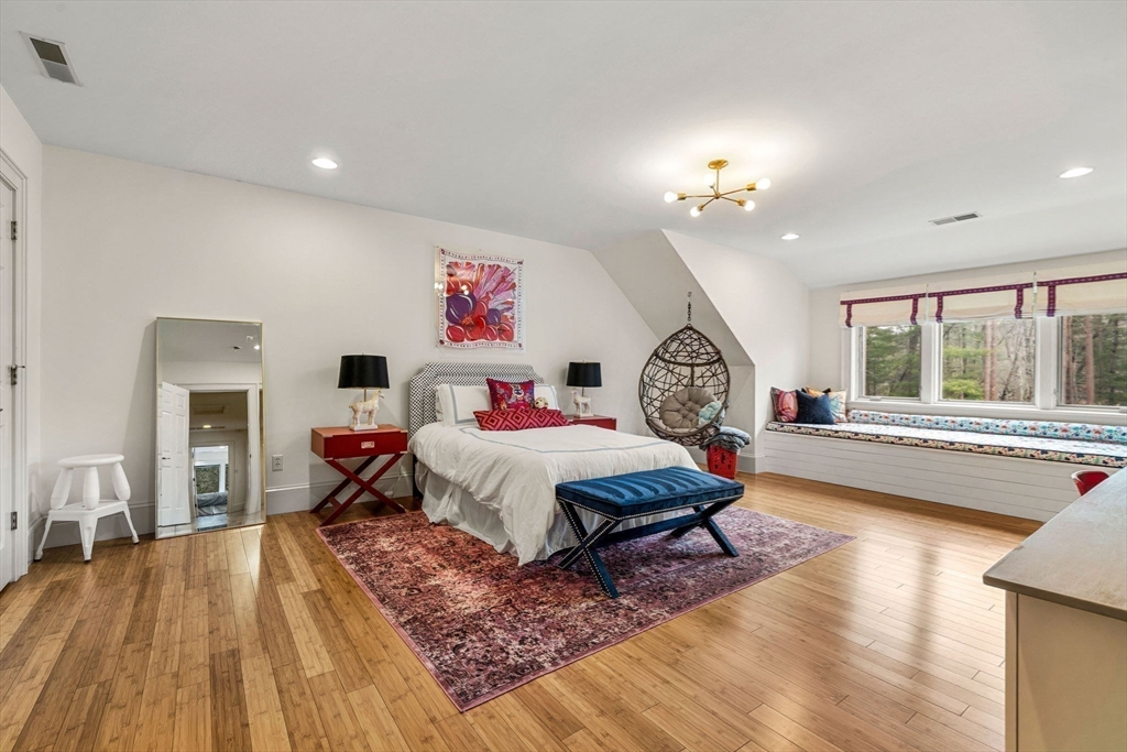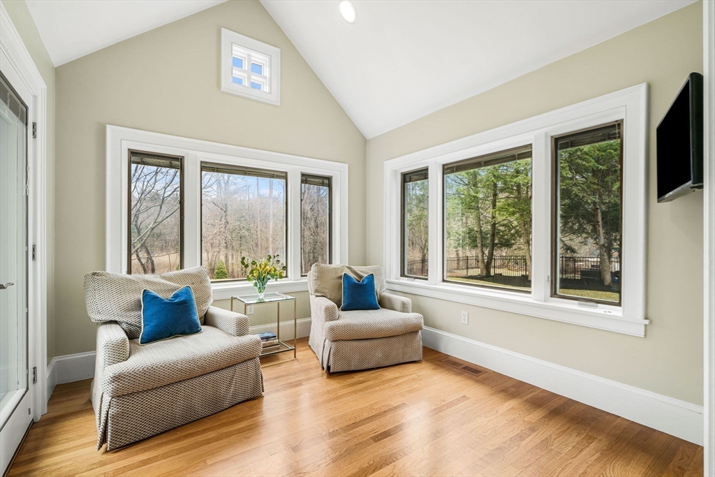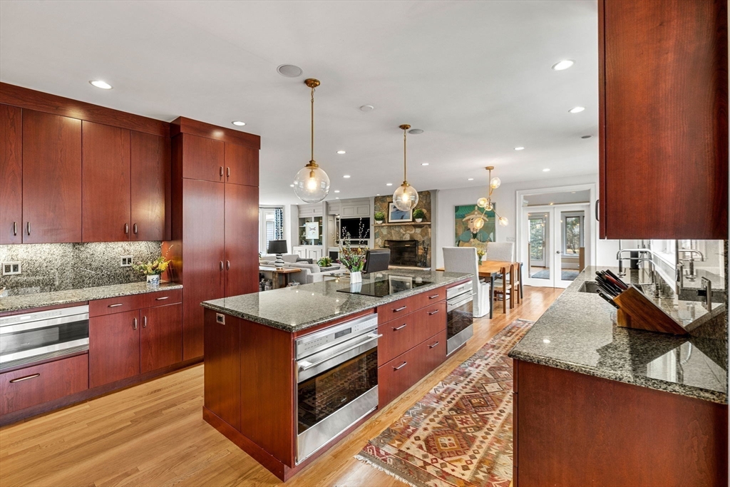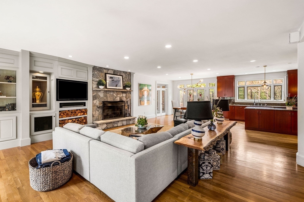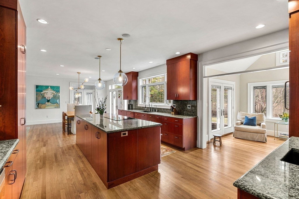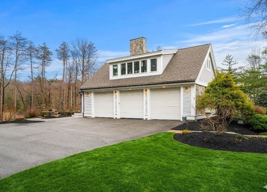 Refinement at home on a premier Topsfield cul-de-sac! This 6,450+ SF Contemporary Cape rests on over 1 acre of professionally landscaped grounds adjacent to 1,500-acres of Audubon Sanctuary. Custom built with steel construction and open floorplan; it merges durability with livability. The heart of the home is its Chef's Kitchen featuring abundant Wolf and Sub-Zero appliances, custom hardwood cabinetry, wet bar, and granite countertops flowing seamlessly into a sunlit dining area, flexible sunroom and living room with access to outdoor hardscaped patios. The first-floor primary suite offers a custom bath and large dual walk-in closets. Upstairs, find three large bedrooms, 2nd custom full bath and expansive closets. Separate 700 SF flex space above the garage. The basement has an approx. 1200 SF gym and playroom. The exemplary finishes, beautiful grounds, oversized rooms and windows, open floorplan, 3-car heated garage and whole-house generator results in a home of rare distinction!