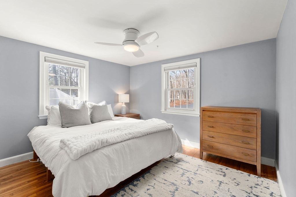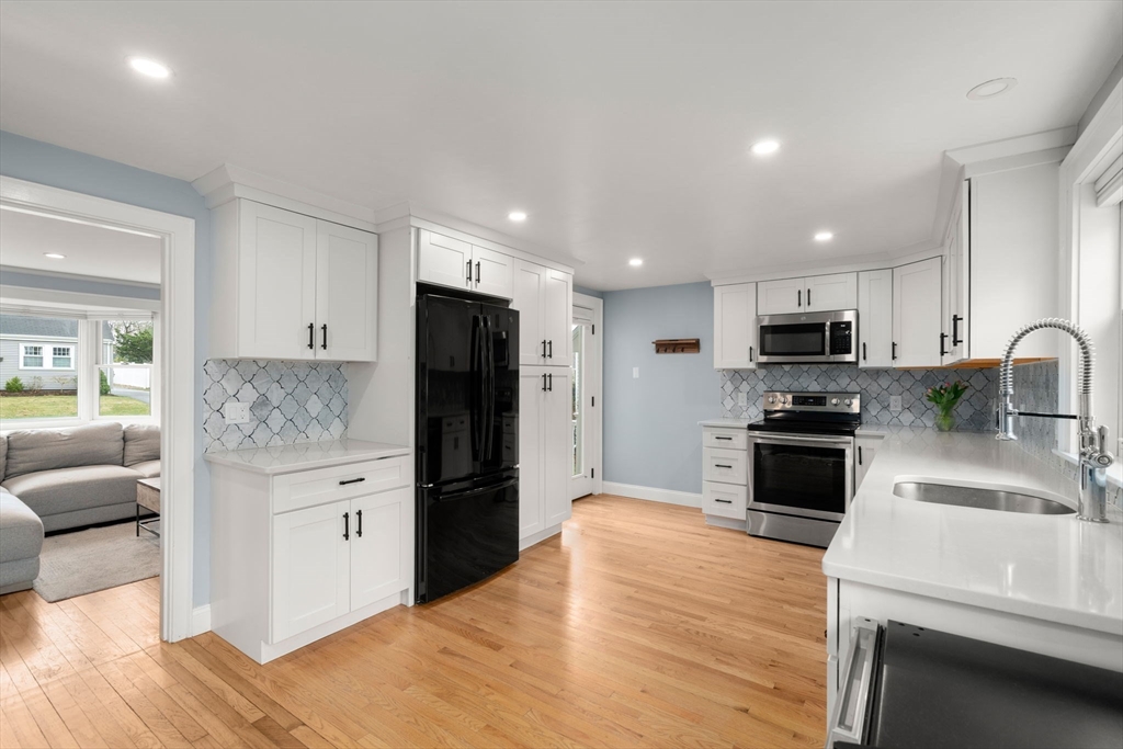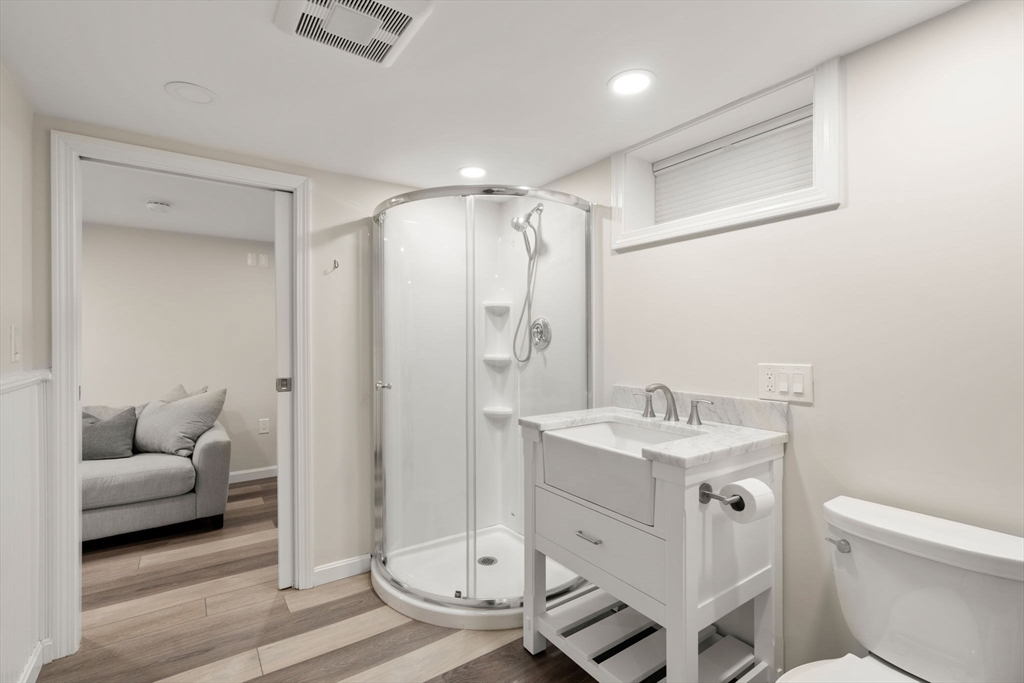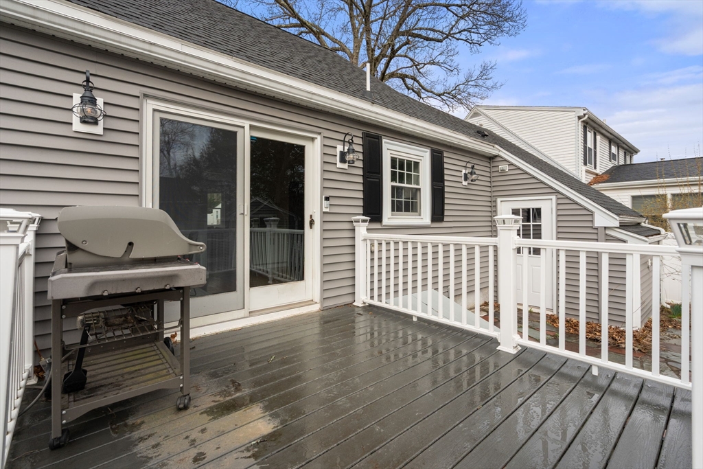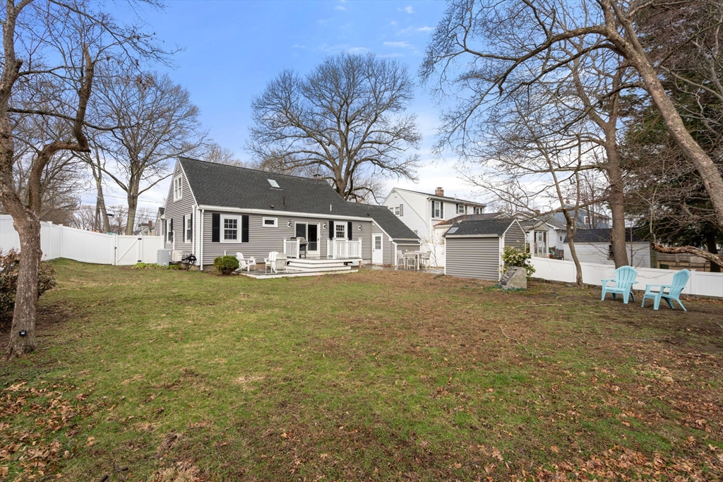 This beautifully maintained Cape in the Endicott section of Dedham has it all. The updated home features a stunning kitchen with white shaker cabinetry, stainless steel appliances, quartz countertops, and a stylish tile backsplash. The dining area flows seamlessly to a newer deck and a fenced in yard—ideal for entertaining and letting the kids/pets run around. The first floor offers two spacious bedrooms and a modern tiled full bath. Upstairs, a thoughtfully renovated primary suite boasts double closets and a skylight. The finished lower level adds valuable living space with laundry, bonus room, and full bath. Major updates include newer siding, windows, roof, HVAC, exterior doors, and tankless hot water. There is a one car attached garage and a shed for storage. Set on a landscaped corner lot with flowering trees and perennials. Conveniently located near the commuter rail, Endicott Estate, top schools, and major routes—this home is a must-see!