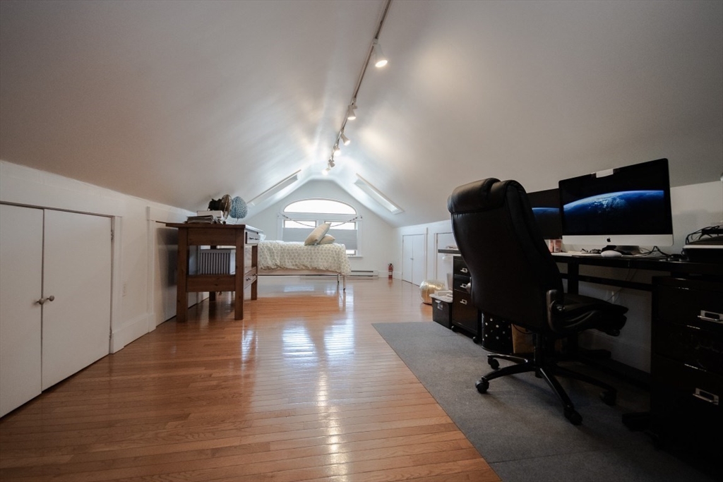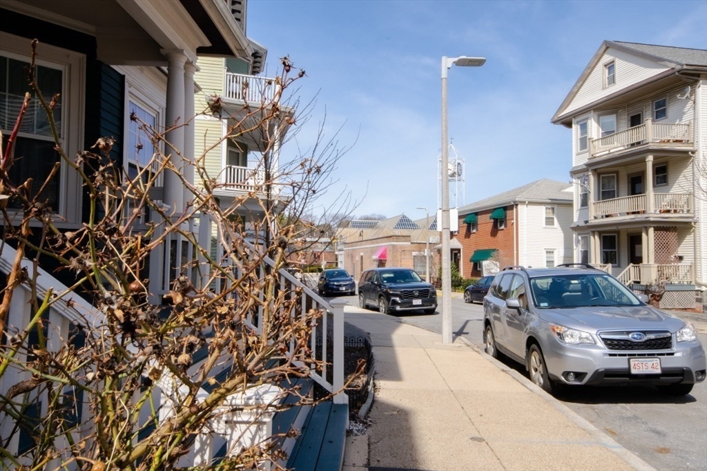 Welcome home to this lovely and spacious sun filled townhouse with a finished upper level, a front porch, a covered back porch, in unit laundry, additional basement storage, and off street parking. If you need more than three bedrooms, easily convert the second sitting room to a fourth bedroom. The upper level features a bath with a shower, a bedroom and an office along with an abundance of storage with ten eave closets. The property was freshly painted in 2025 and the roof was replaced approximately five years ago. the association is 100% owner occupied and pets are allowed. 17 Tower Street is a quiet dead end street right across from Forest Hills Station. This offers great convenience for your commute while offering a serene place to call home. Come take a look! Open houses Saturday 11:00-12:30 and Sunday 12:00-1:30.