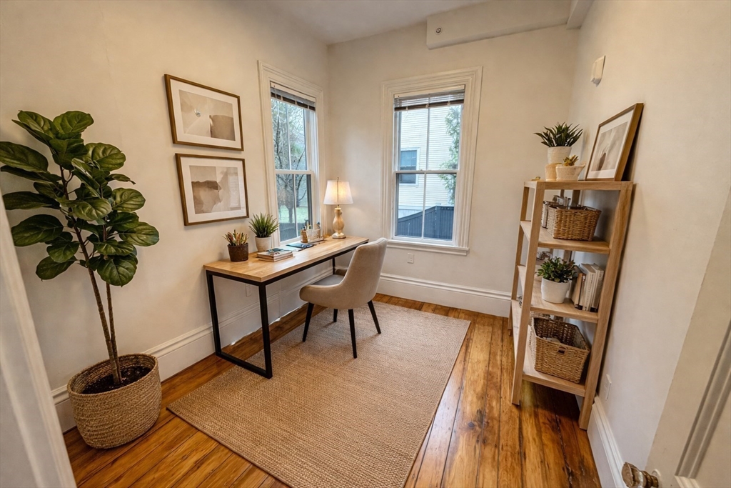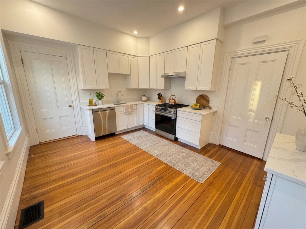Recently updated 1+ bedroom with private basement laundry—this first-floor gem blends modern upgrades with timeless charm! The unit features a brand-new kitchen and bathroom, while beautiful original flooring flows seamlessly throughout the home. The spacious bedroom is filled with natural light, creating a bright and inviting retreat. The eat-in kitchen shines with quartz countertops, stainless steel appliances, and ample cabinet space—perfect for both everyday living and entertaining. Toward the rear of the apartment, you’ll find a charming home office overlooking a soon-to-be-finished garden area, offering a peaceful and inspiring workspace.Additional highlights include one off-street parking space and cat-friendly living (1 cat allowed).
